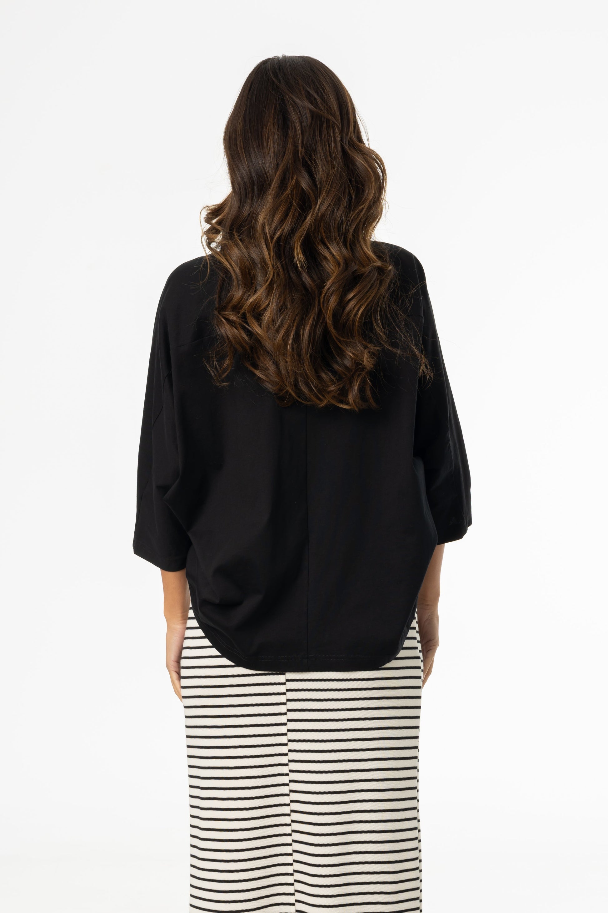Black Oversized Dolman 3/4 Sleeve T-Shirt