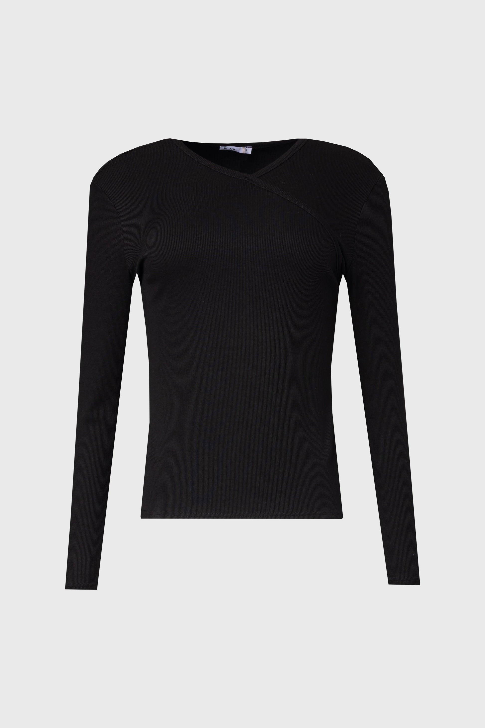 Black Ribbed Faux Wrap Tee