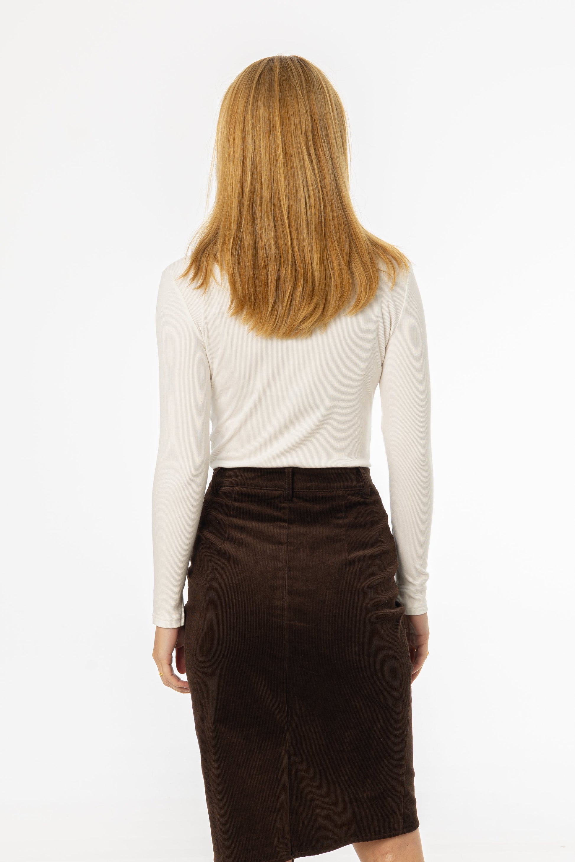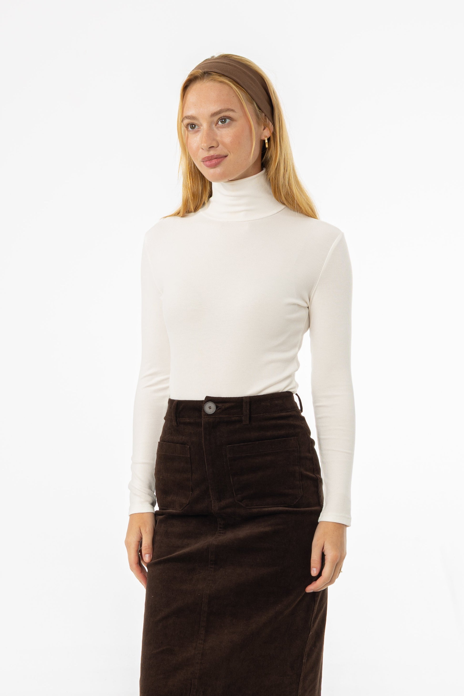 White Ribbed Turtleneck Top