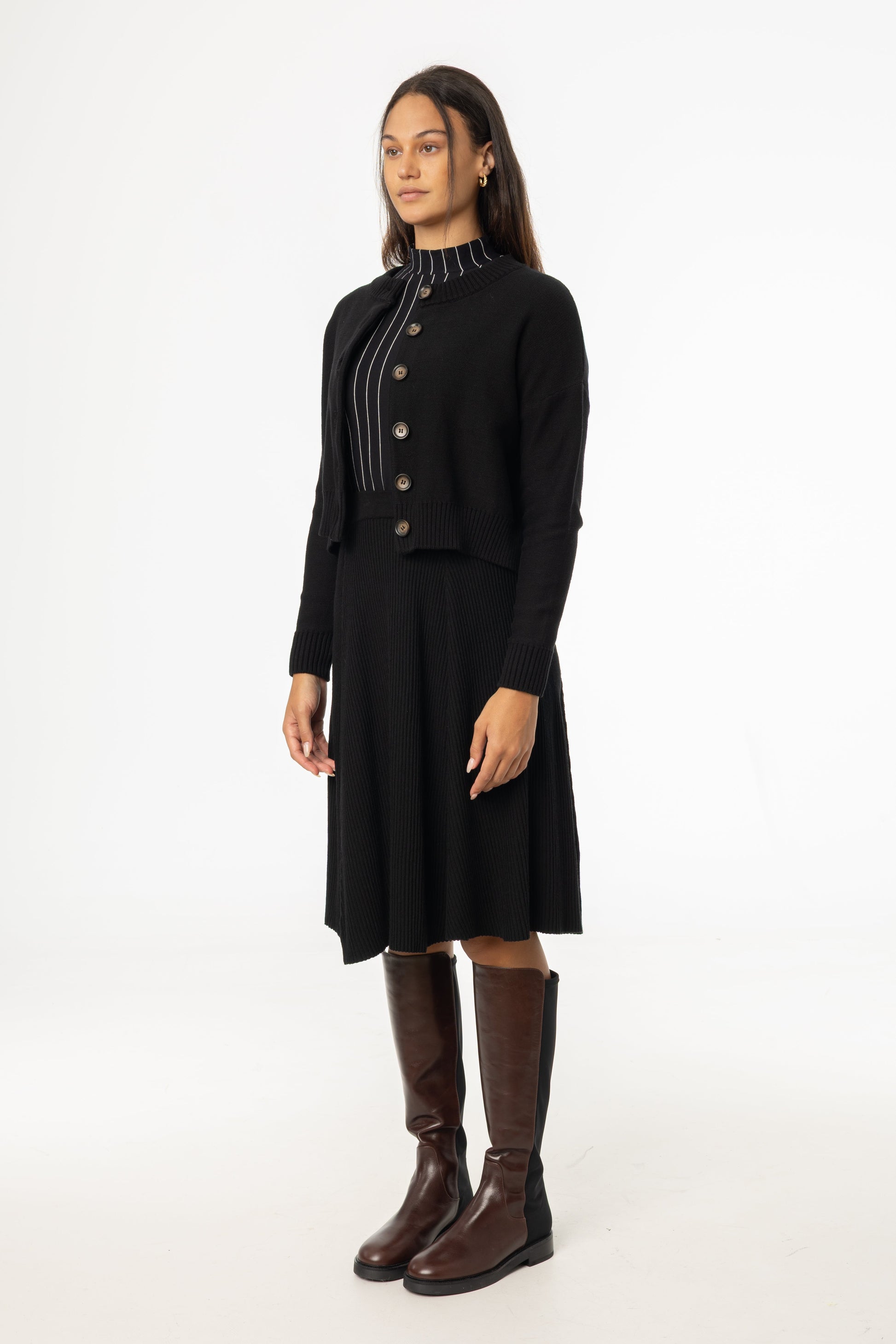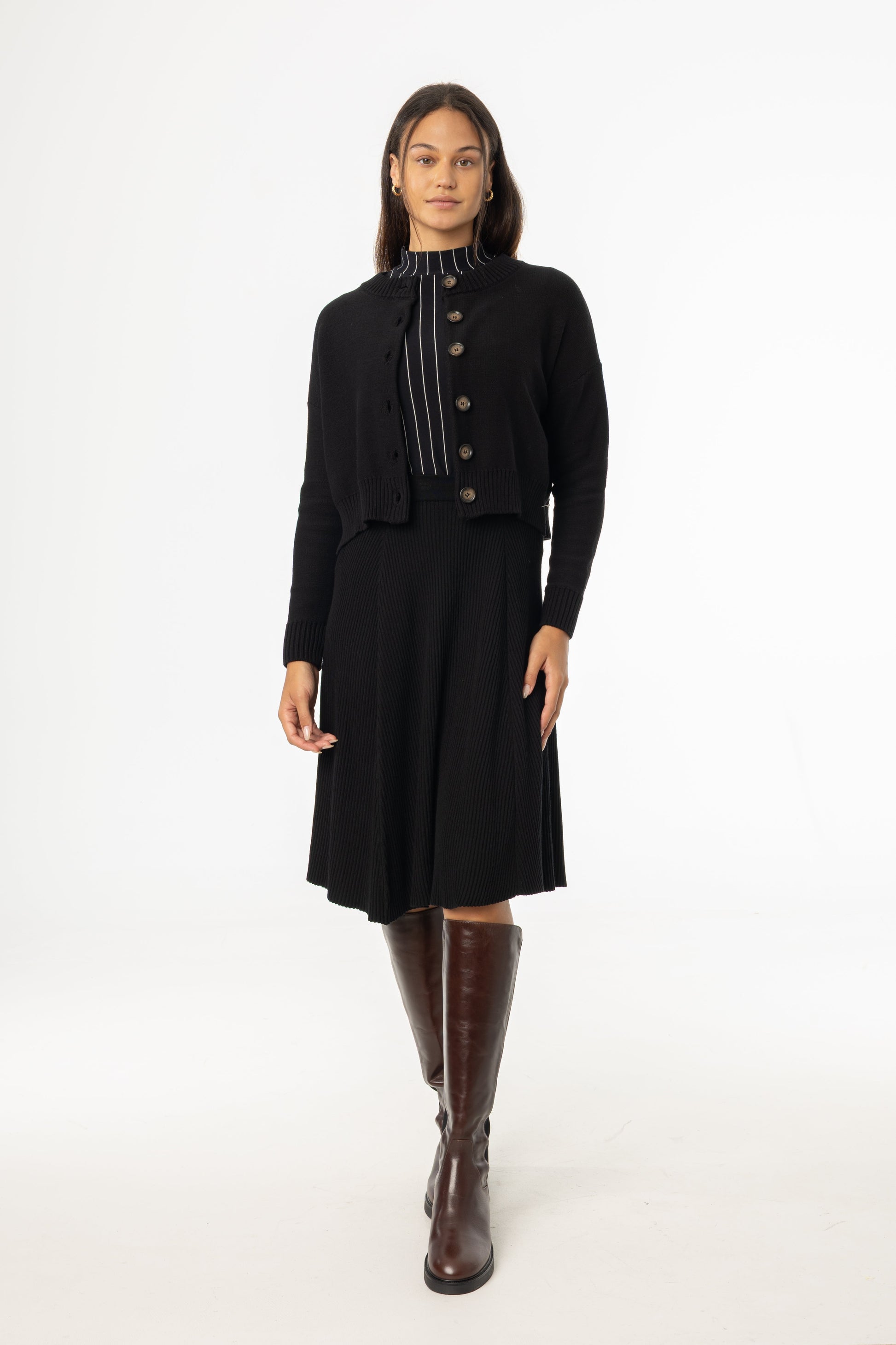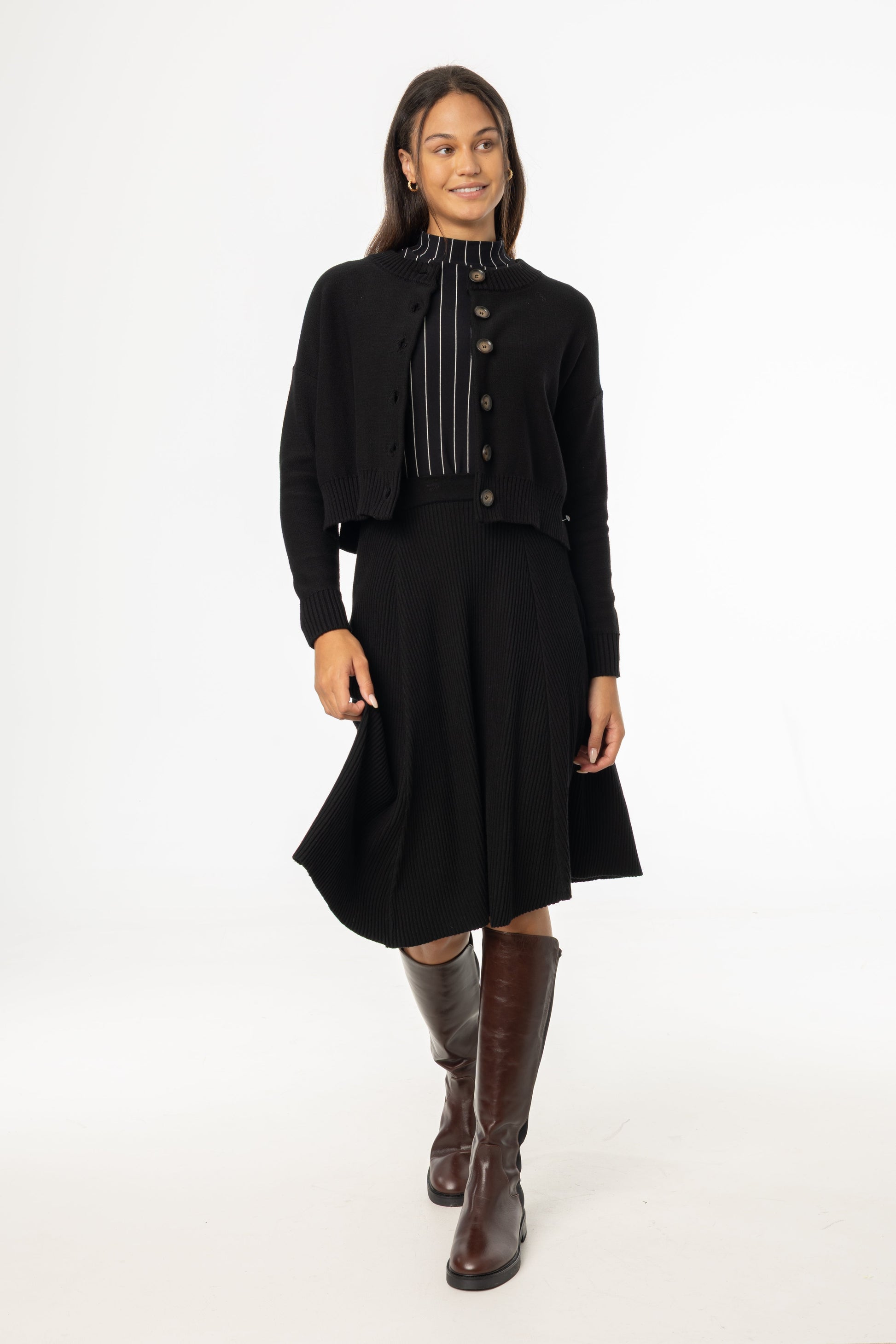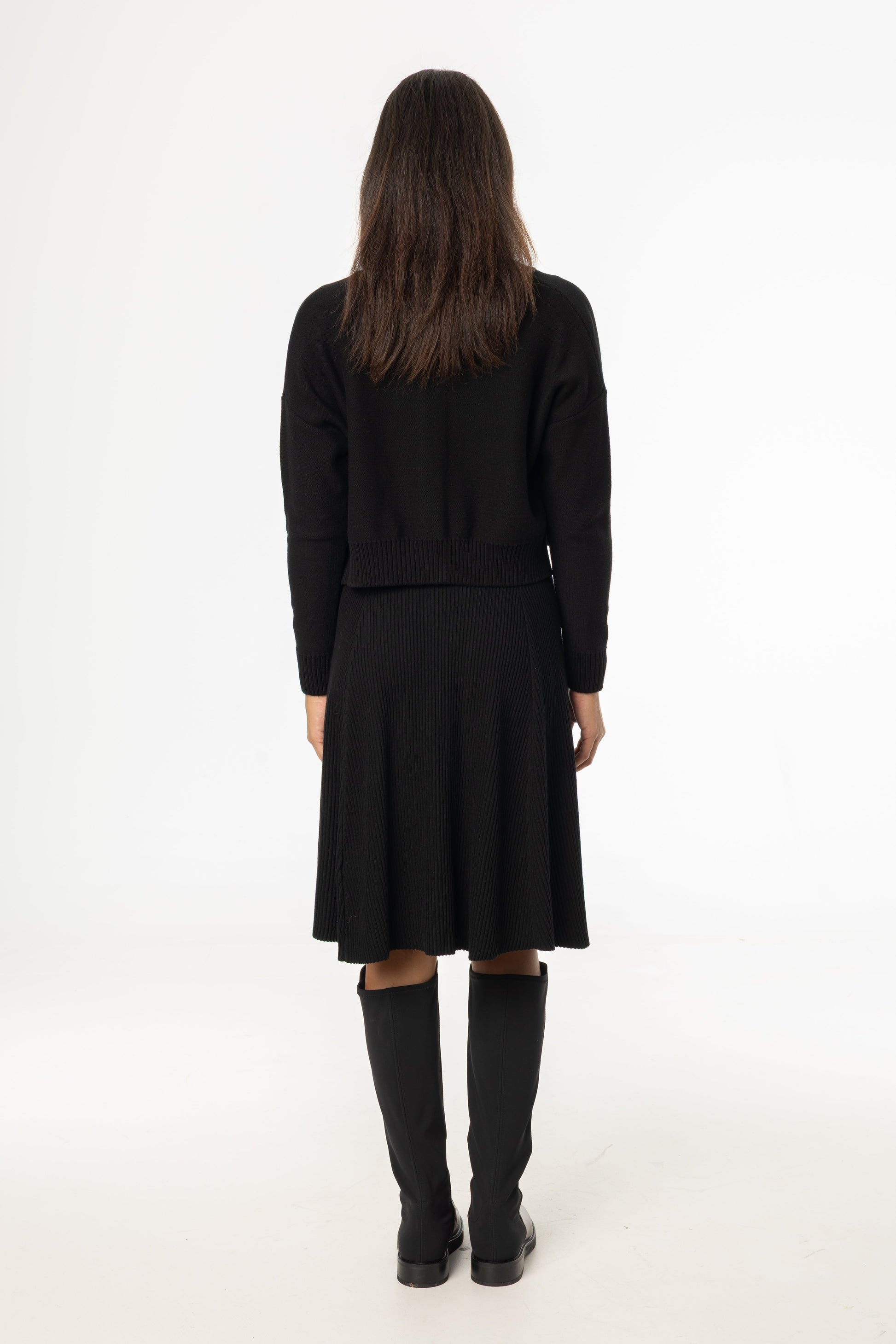 Black Basic Ribbed Knit Skirt