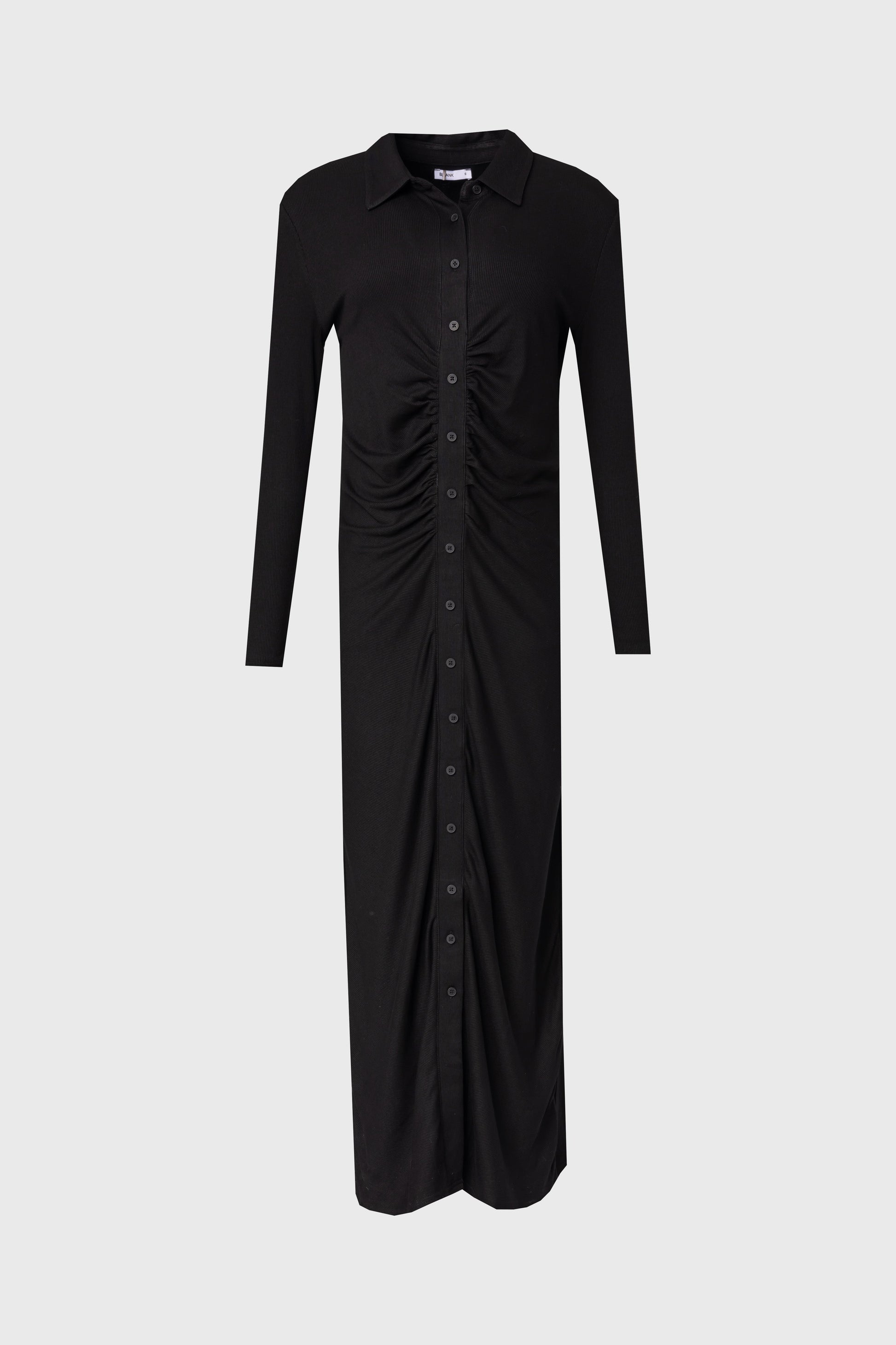 Turn heads with our Ruched Cardi Maxi! The beautiful ruched stitching creates a flattering silhouette, perfect for day or night. Dress it up with some heels and statement jewelry for a night out, or keep it casual with sneakers and a crossbody bag for a laid-back look. It's versatile enough for the office, a weekend brunch, or even a casual evening stroll.