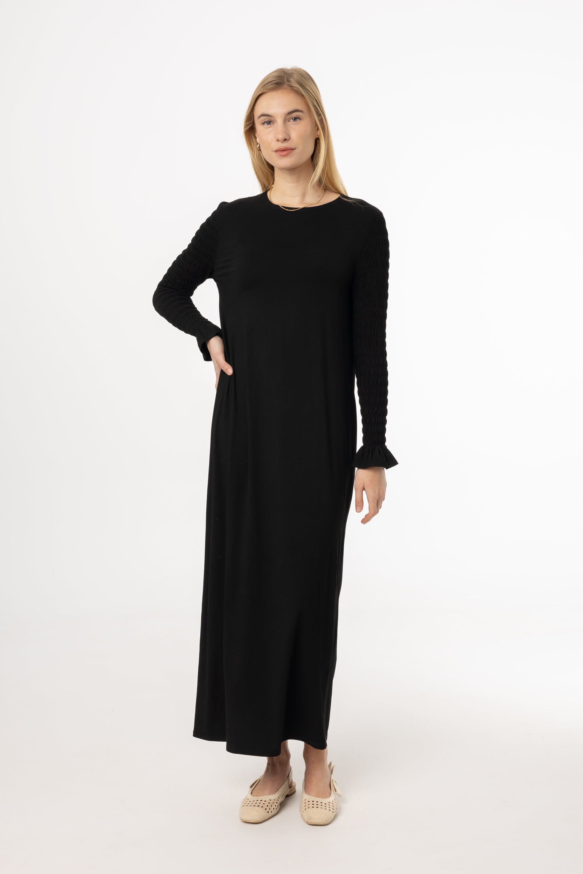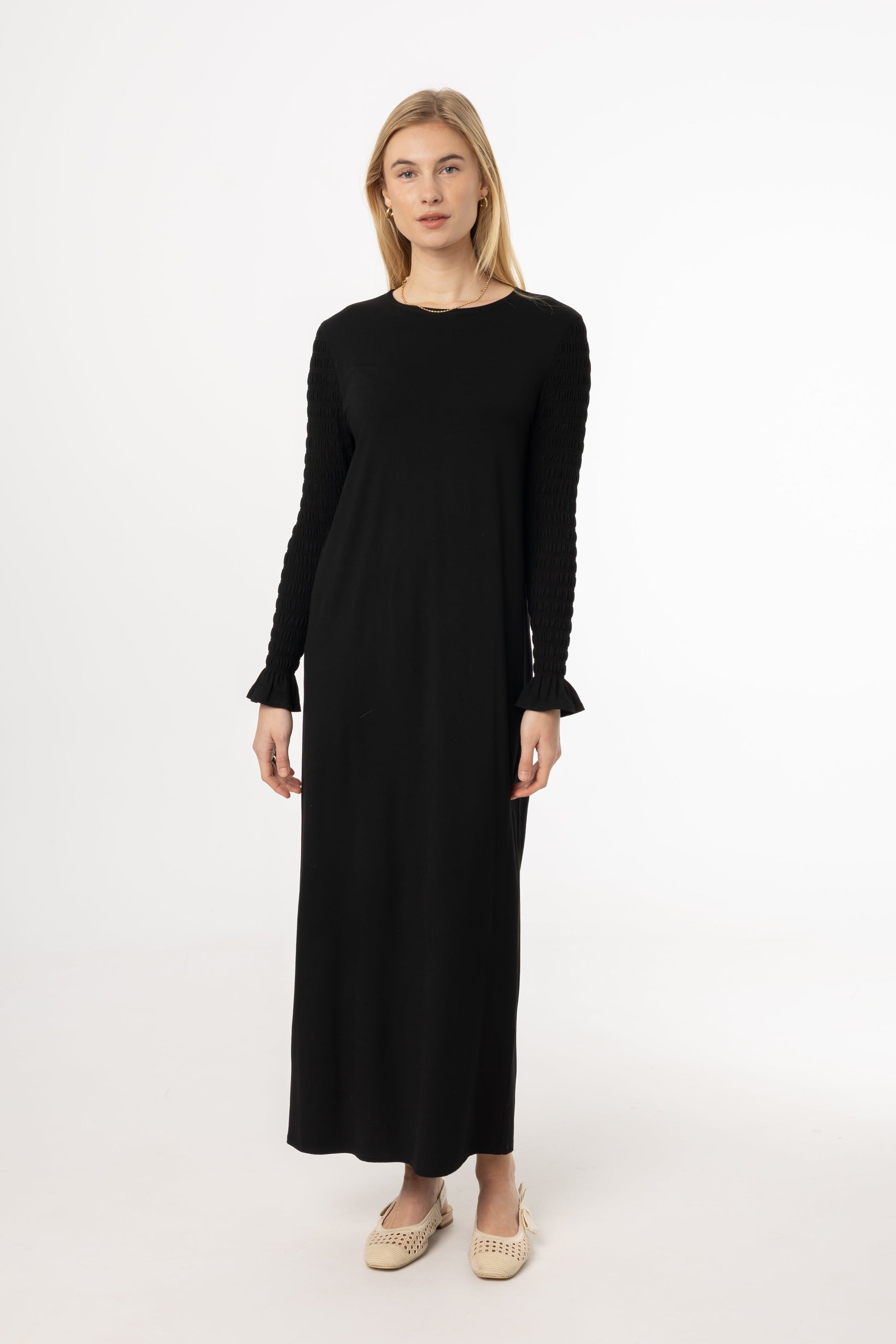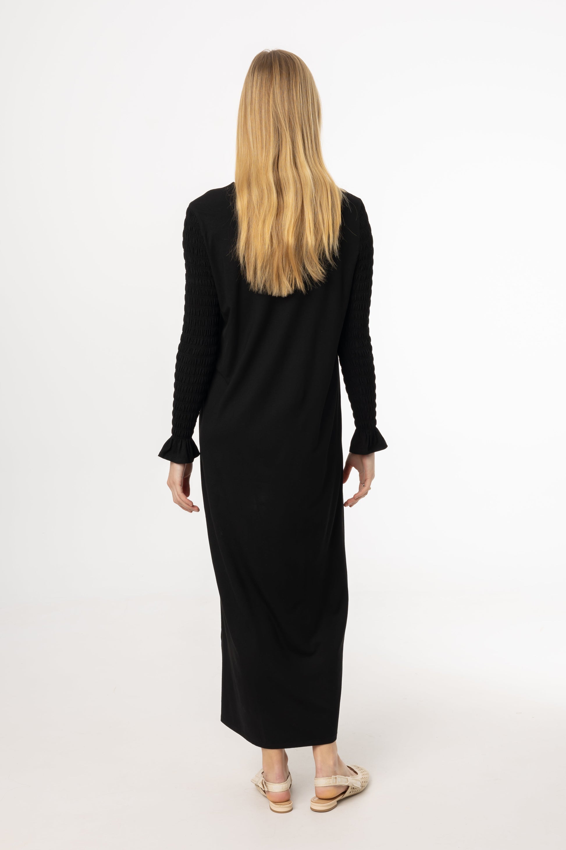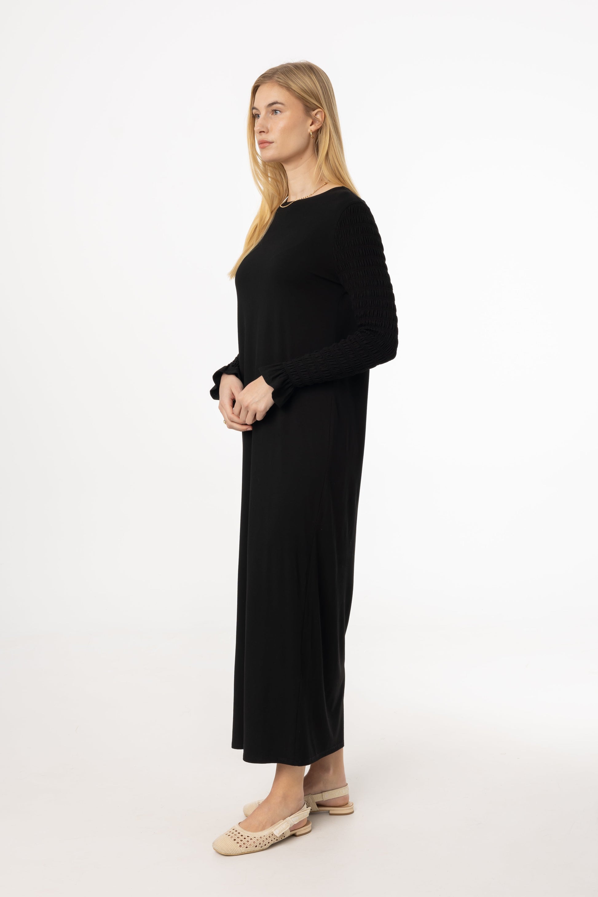 Black Smocked Sleeve Maxi Dress
