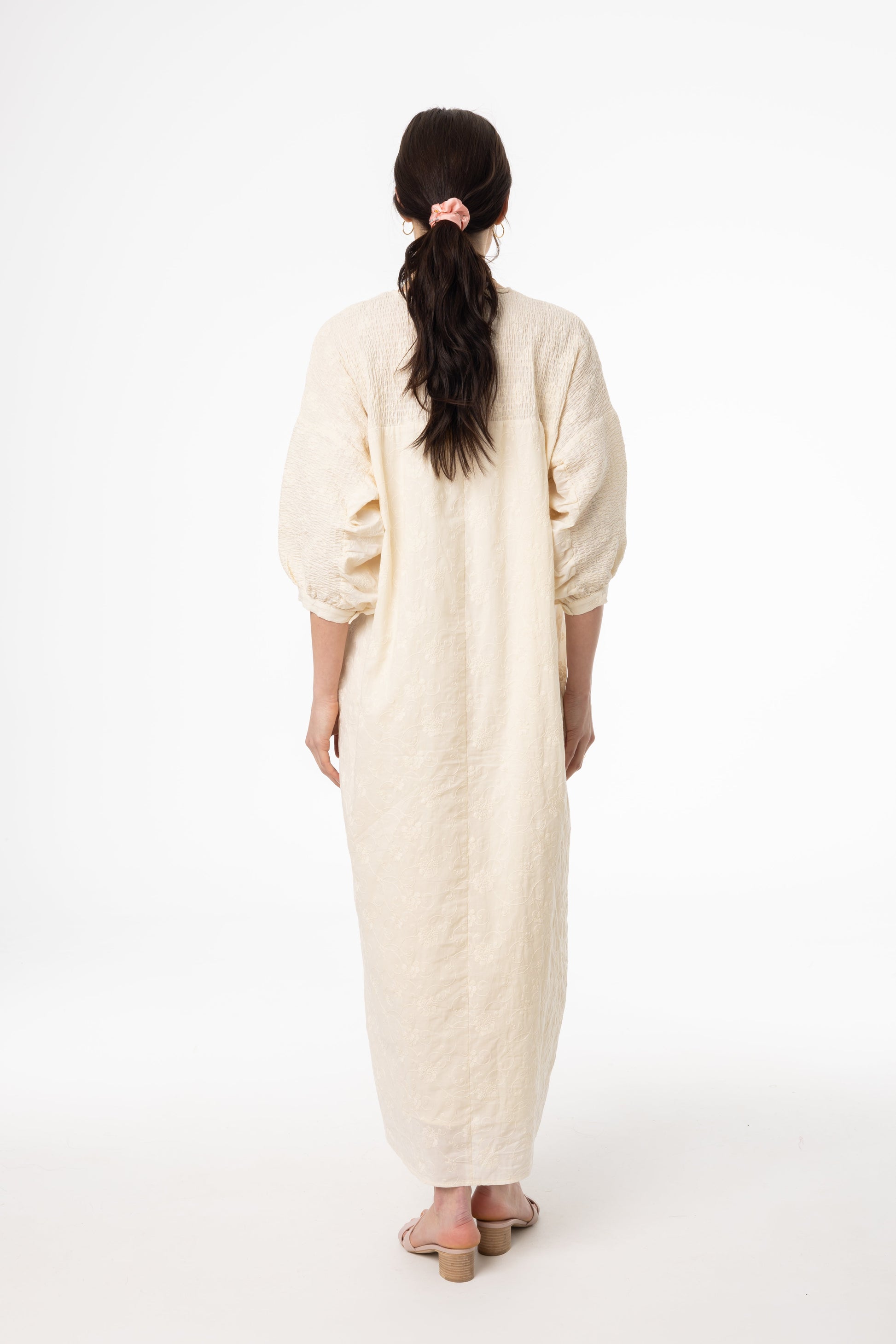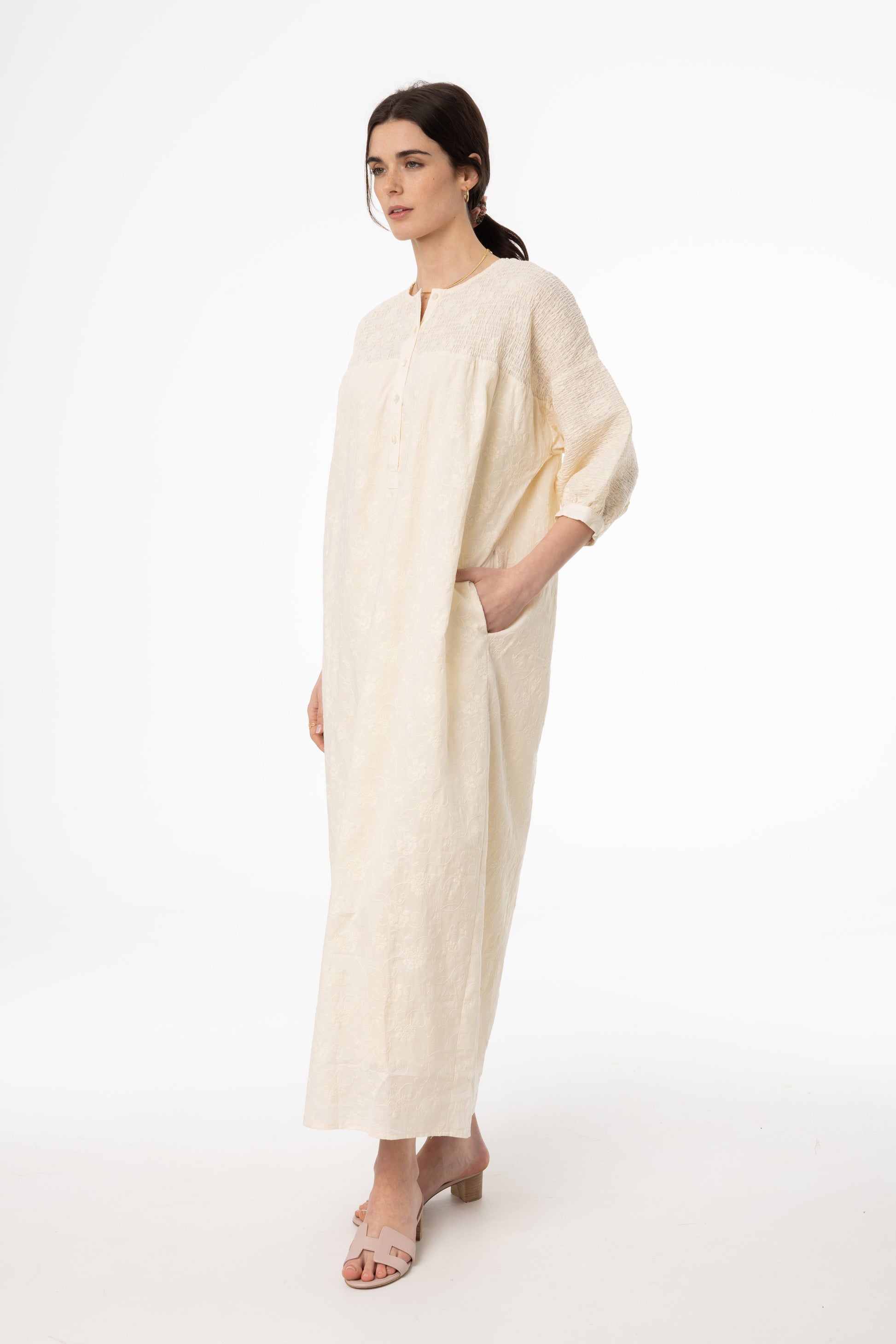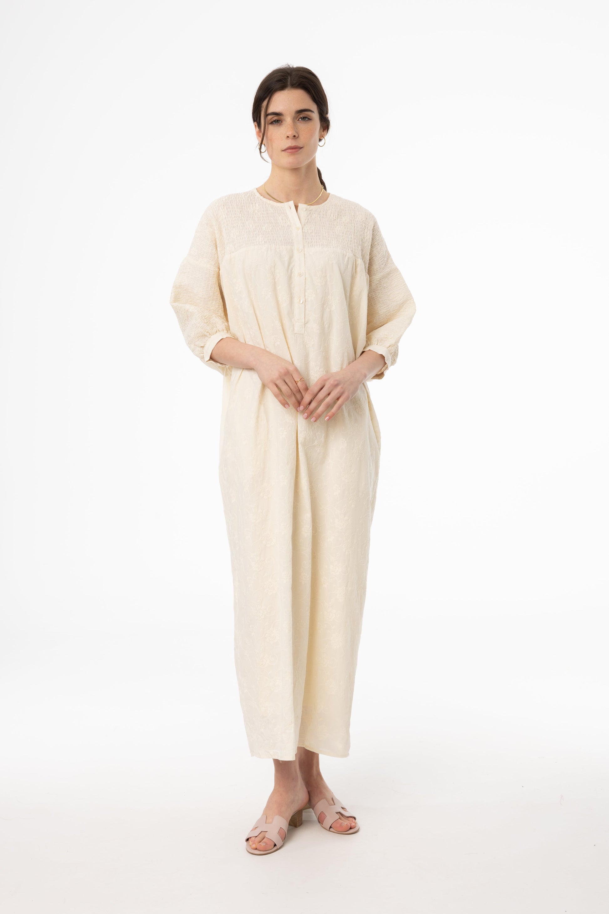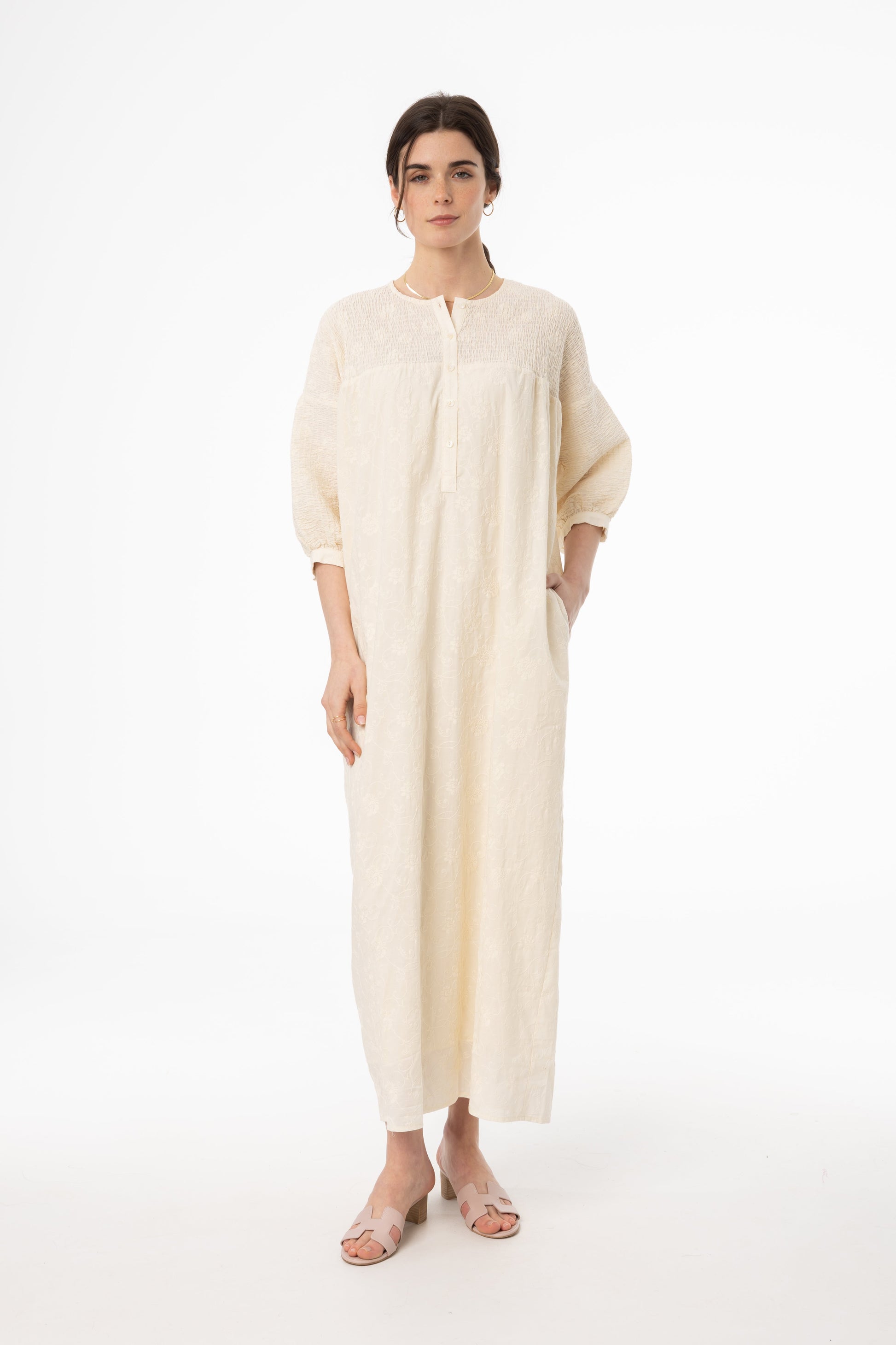 Ivory Embroidered Smocked Maxi Dress