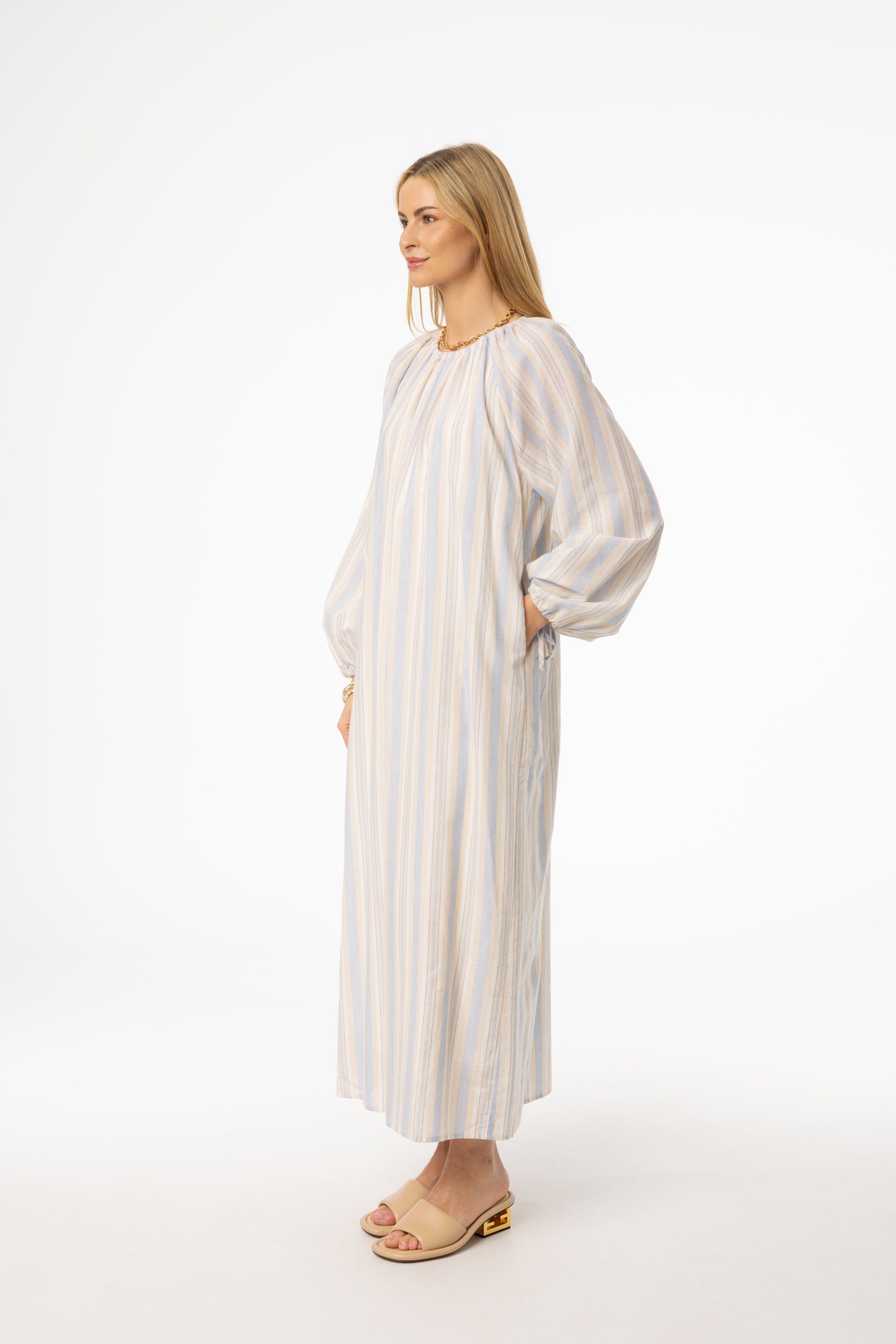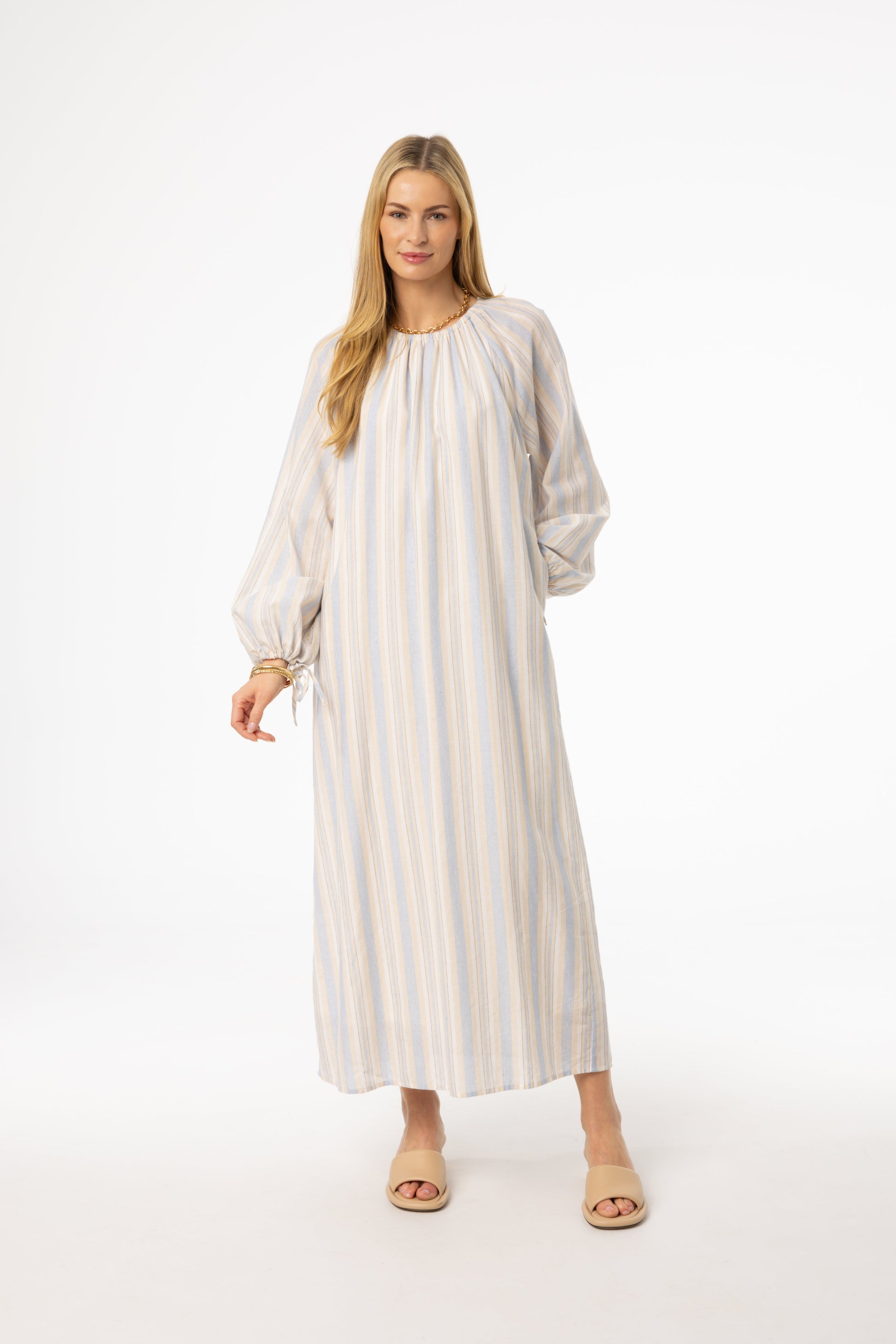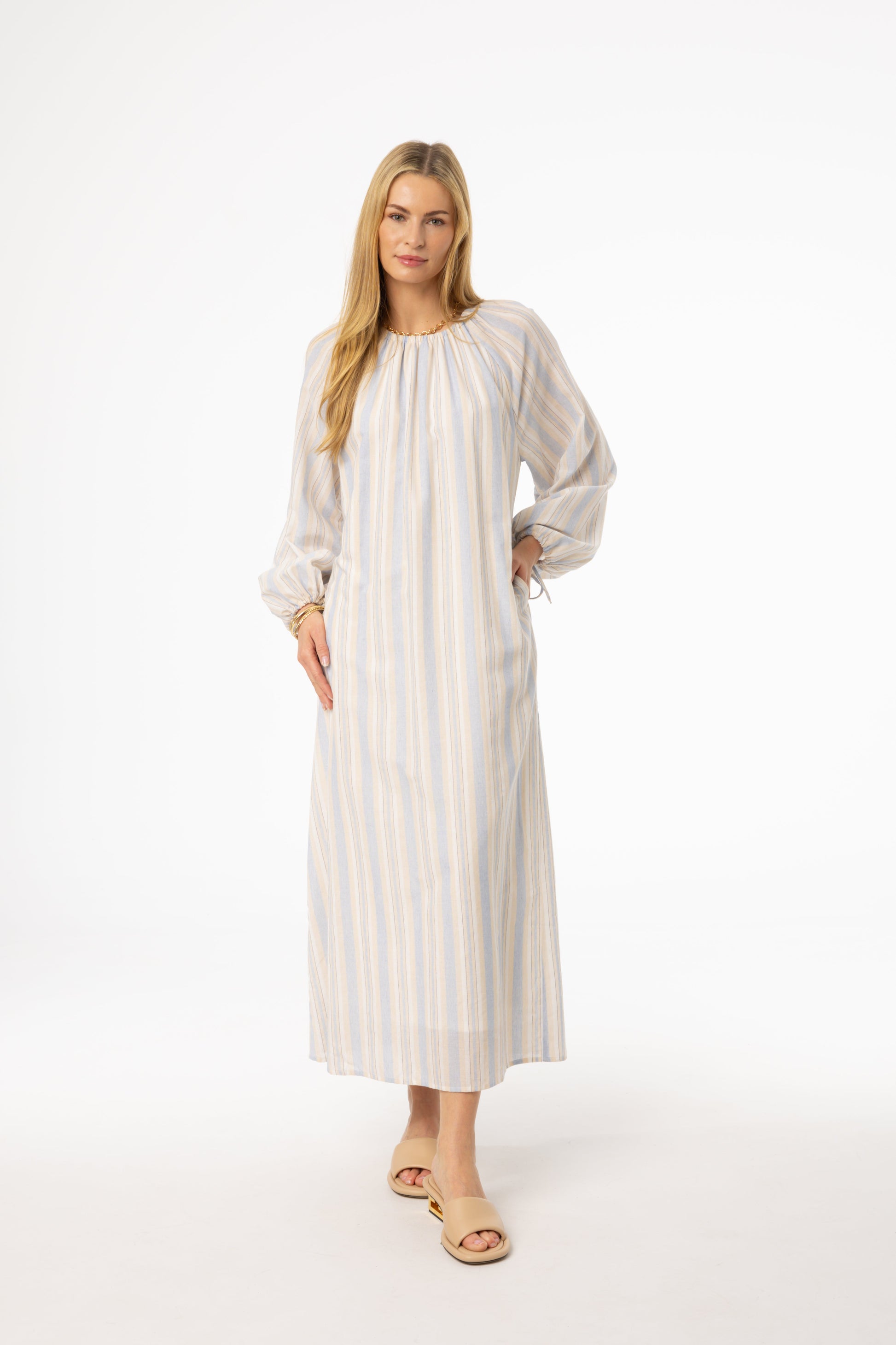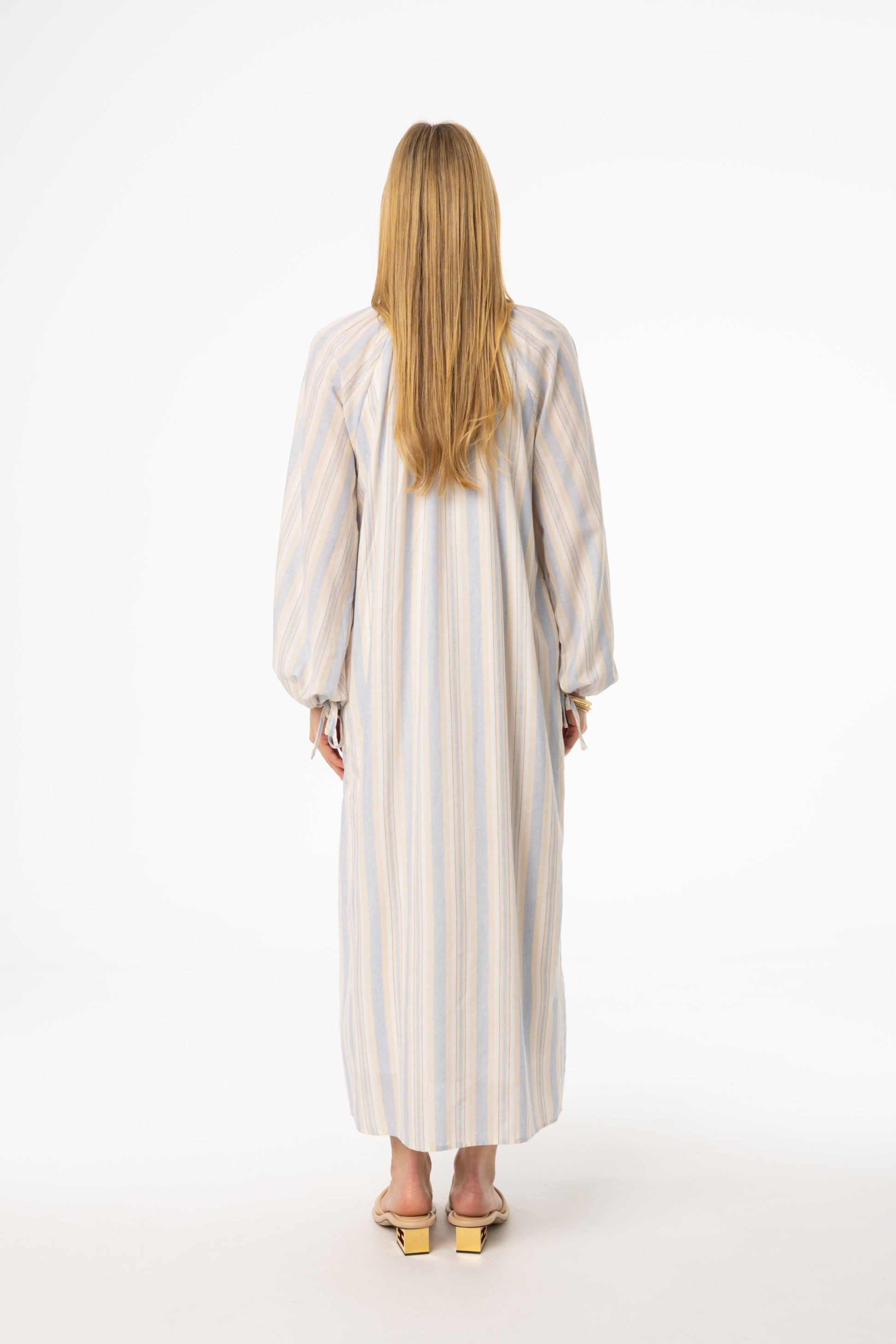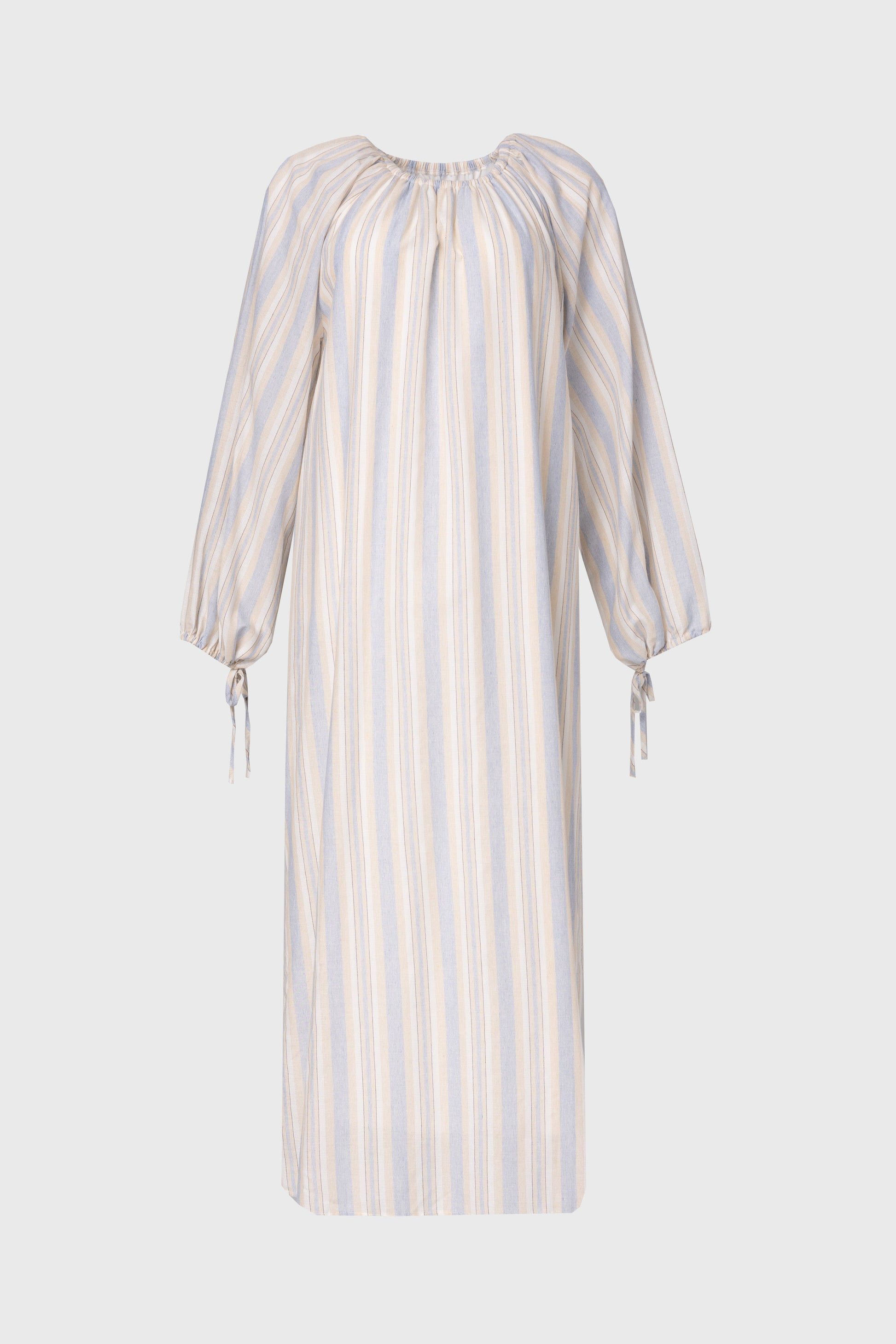 Light Blue Stripe Drawstring Sleeve Maxi Dress