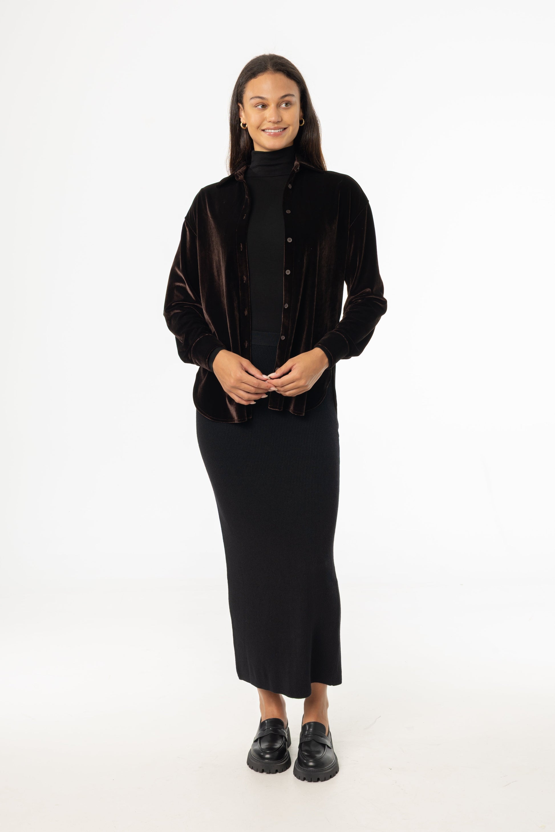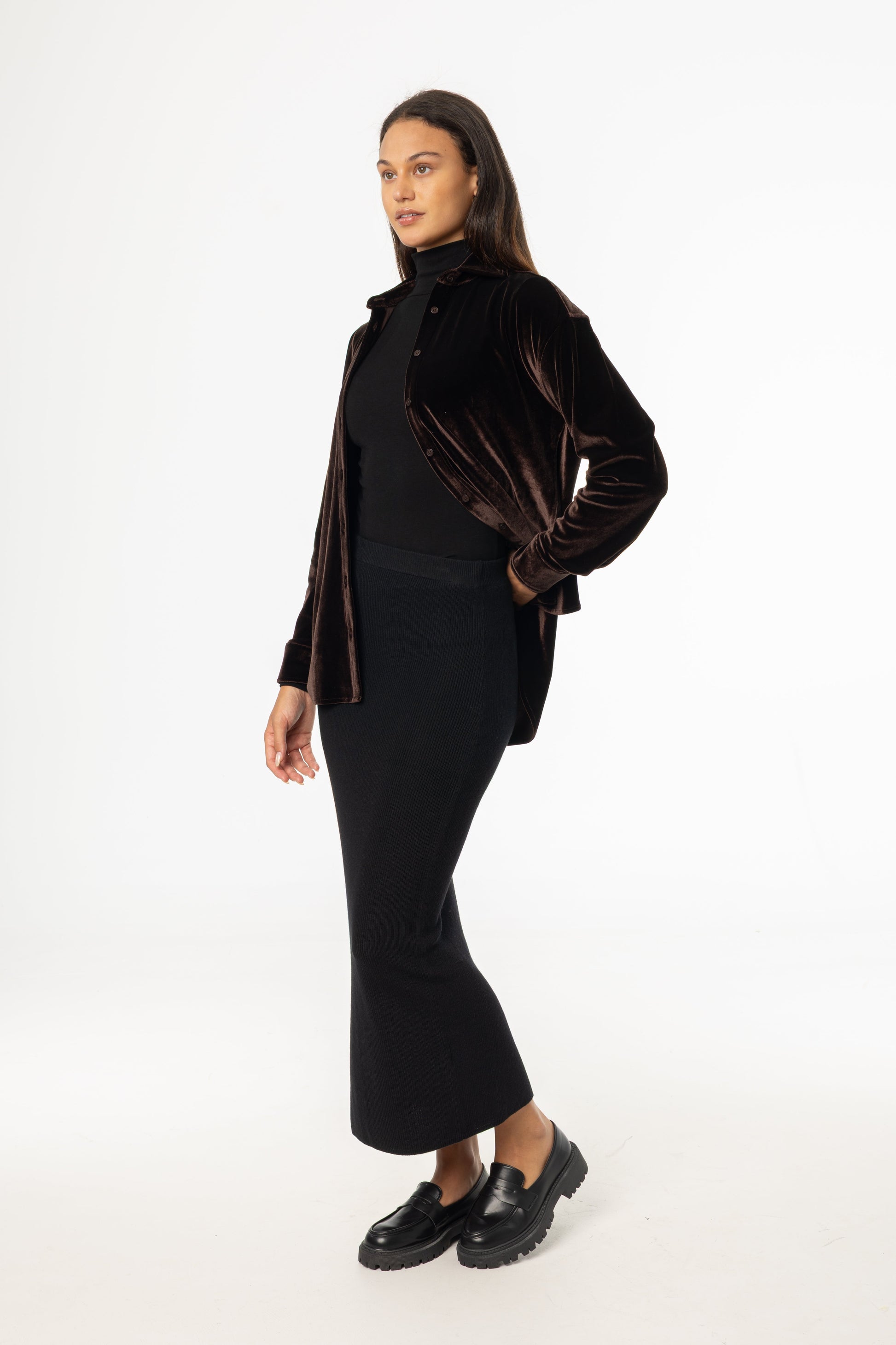 Designed as part of a set, this knit maxi skirt delivers both comfort and polish. Its long, lean shape gives a graceful foundation to fall dressing. Pair it with the matching top for a streamlined look, or mix it with a crisp blouse for contrast. Finish with block-heeled boots to highlight the length. It’s a piece that can flow easily from the office to evening gatherings.