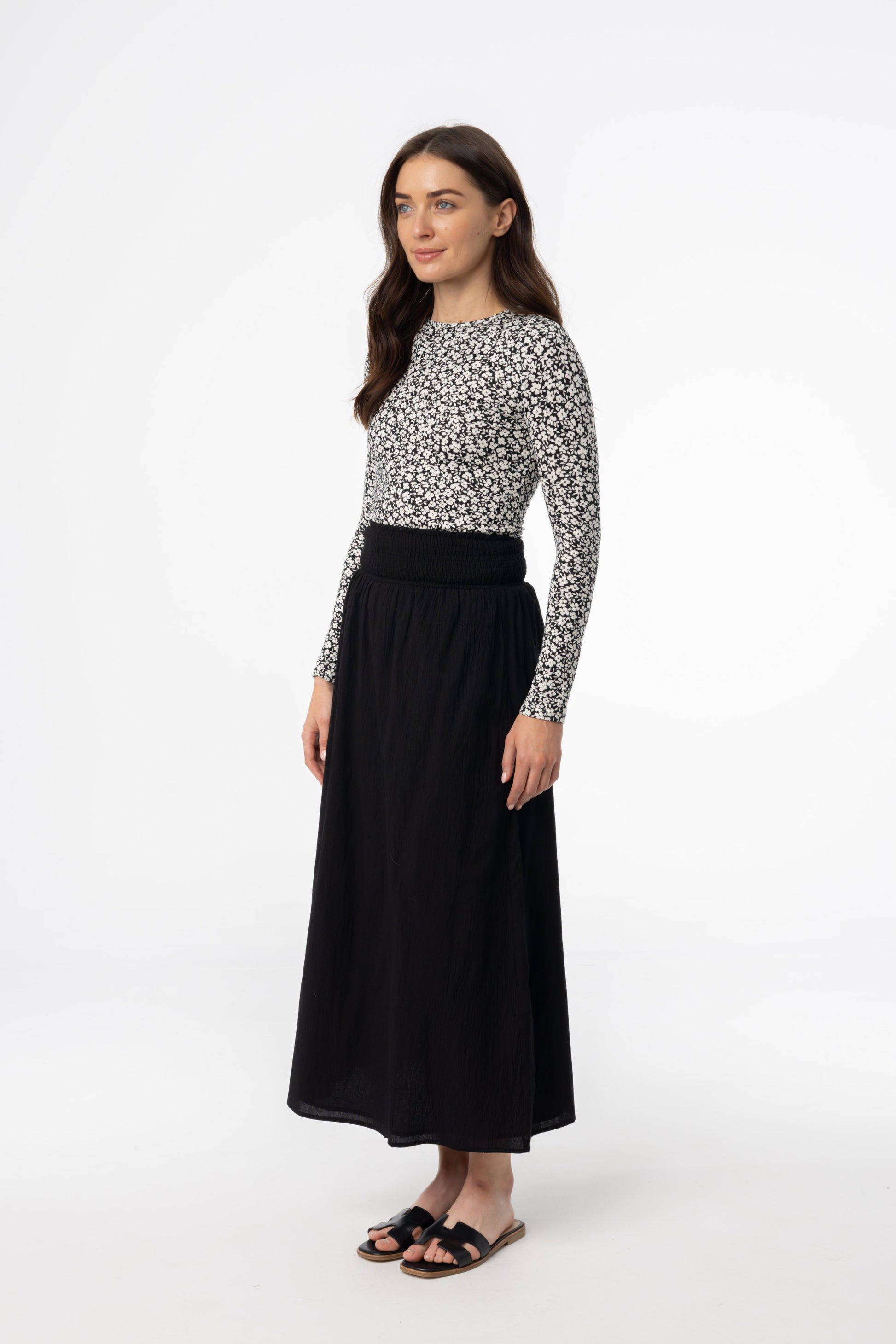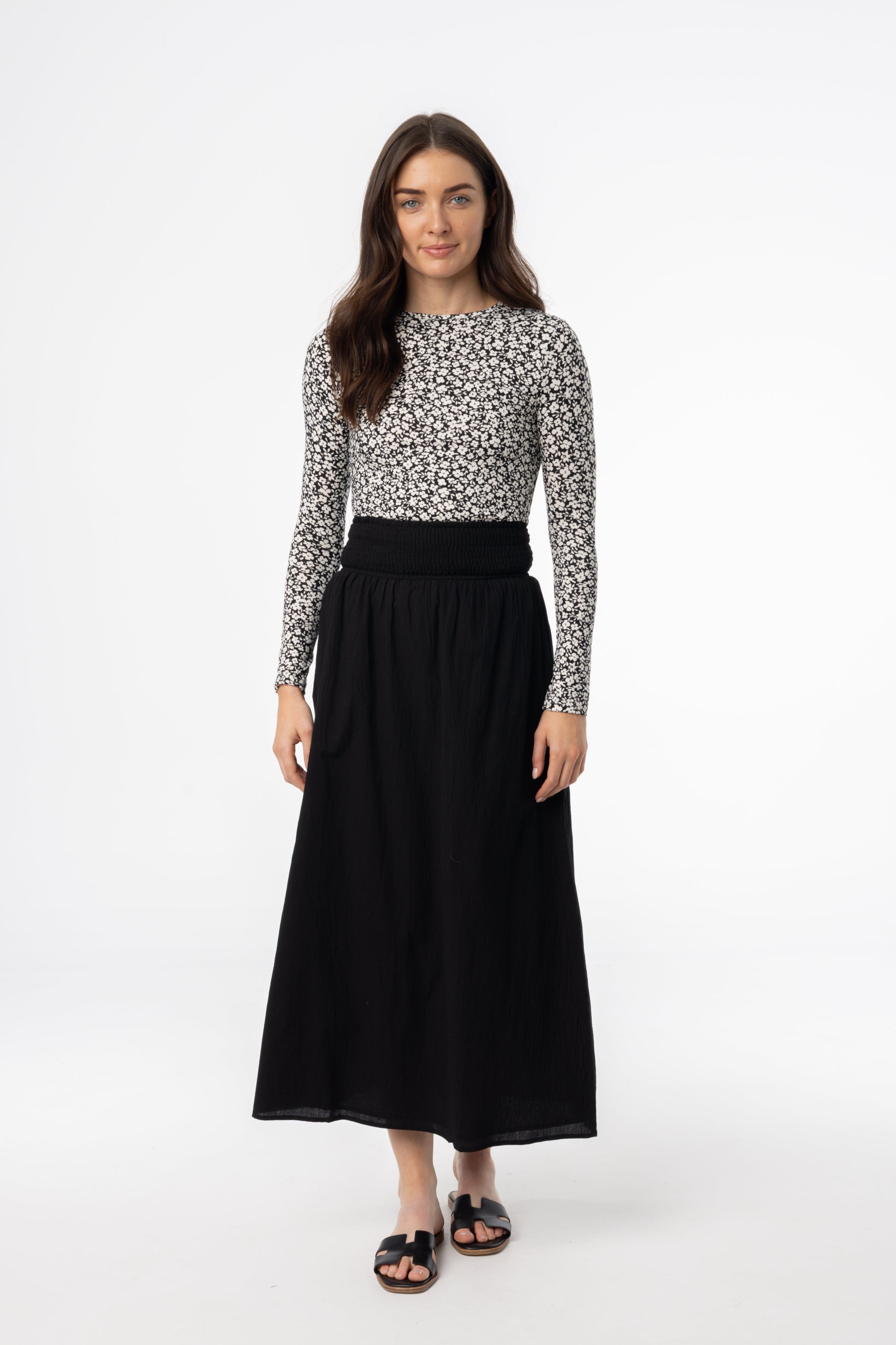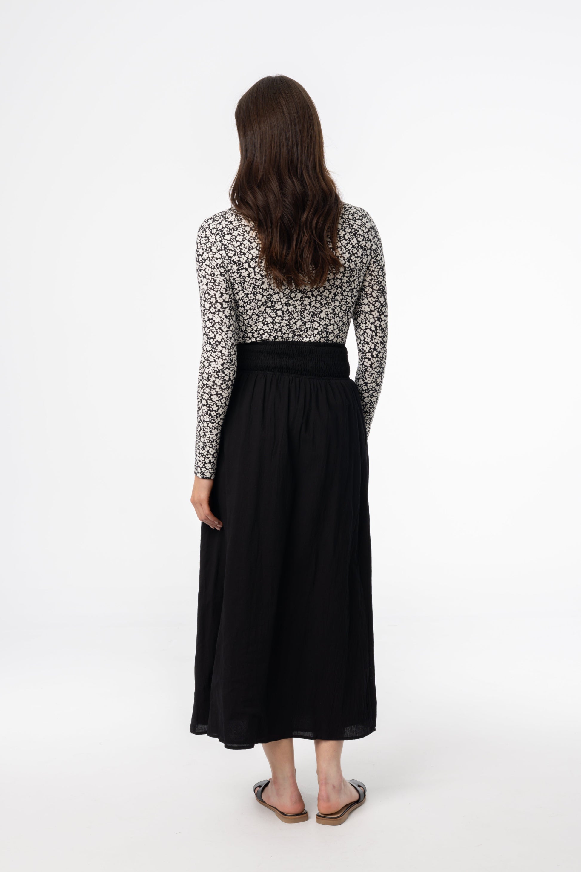 Black Smocked Maxi Skirt
