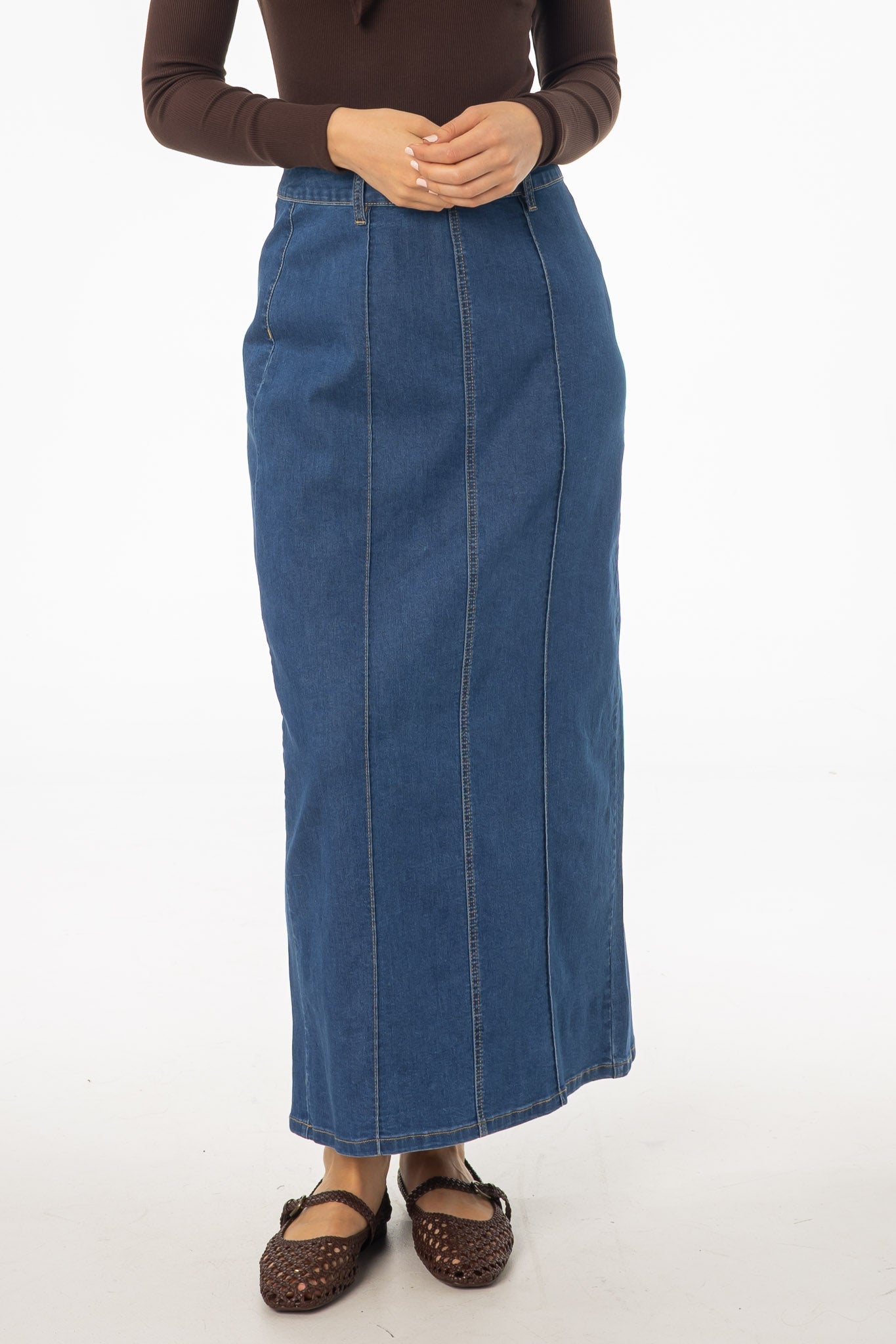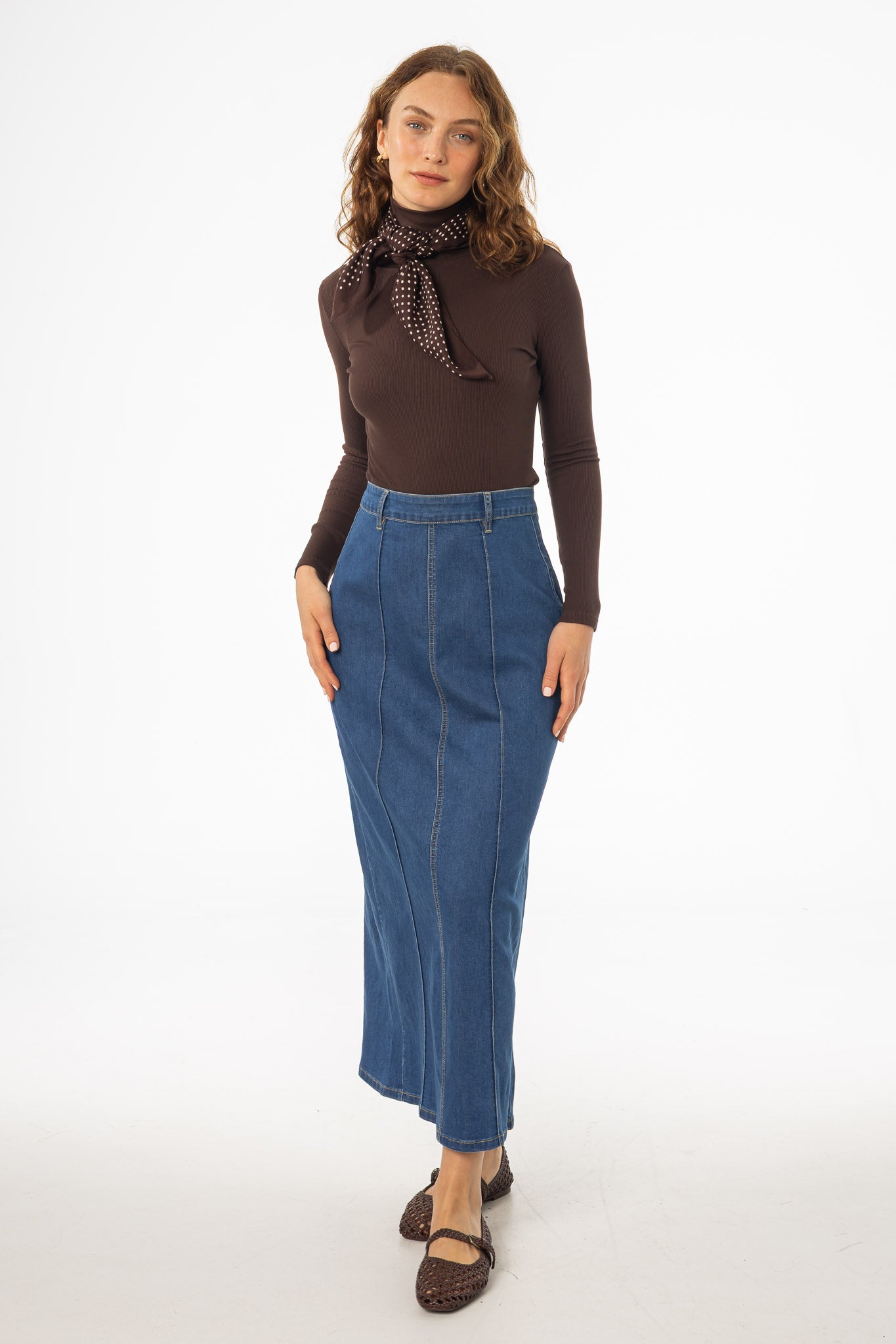 A clean maxi cut that feels both minimal and strong. The denim weight makes it practical yet seasonless. Pair it with a fitted top for a streamlined finish. Layer with a longline coat when it cools down. A skirt that holds its own in any outfit.