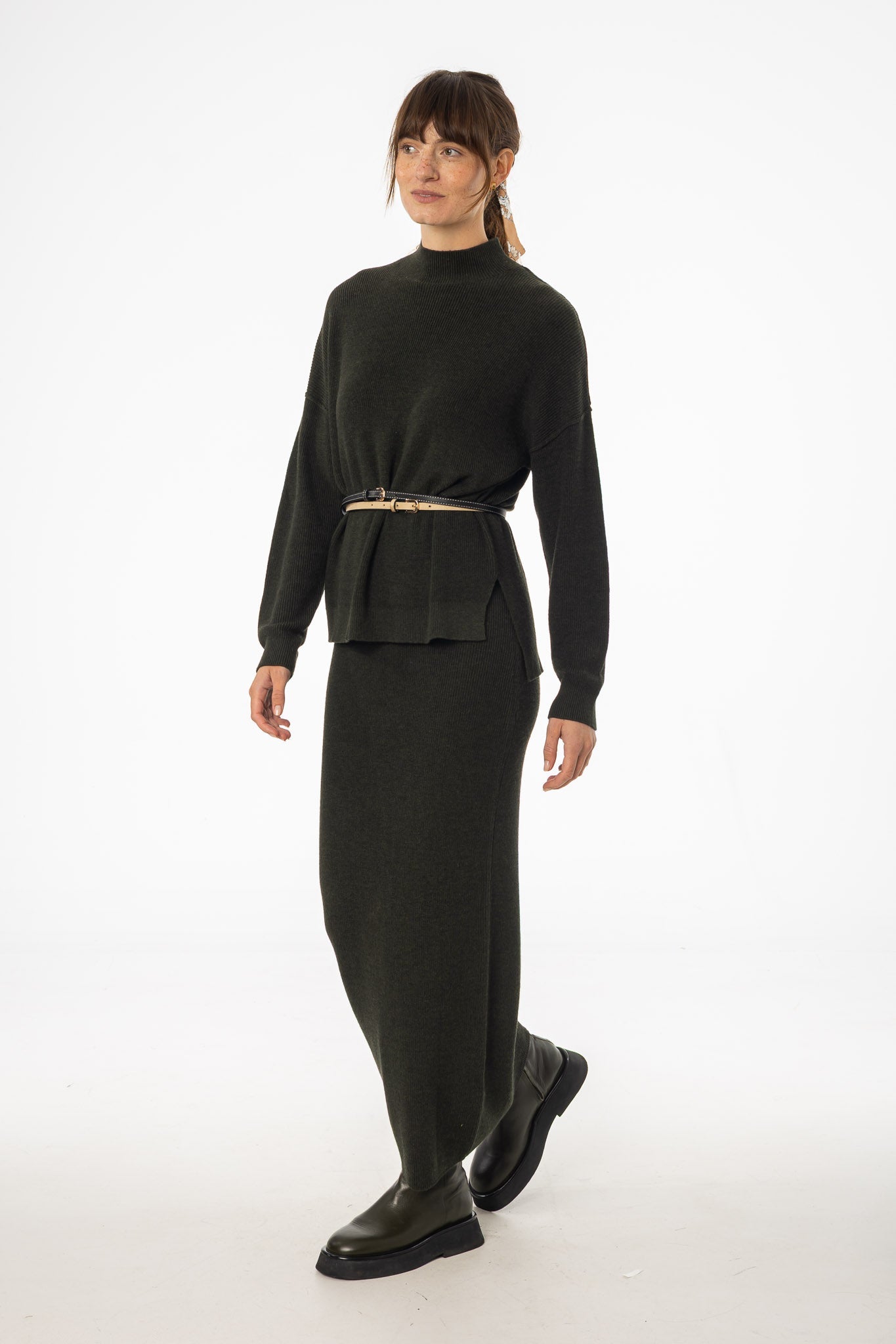 Olive Knit Maxi Skirt