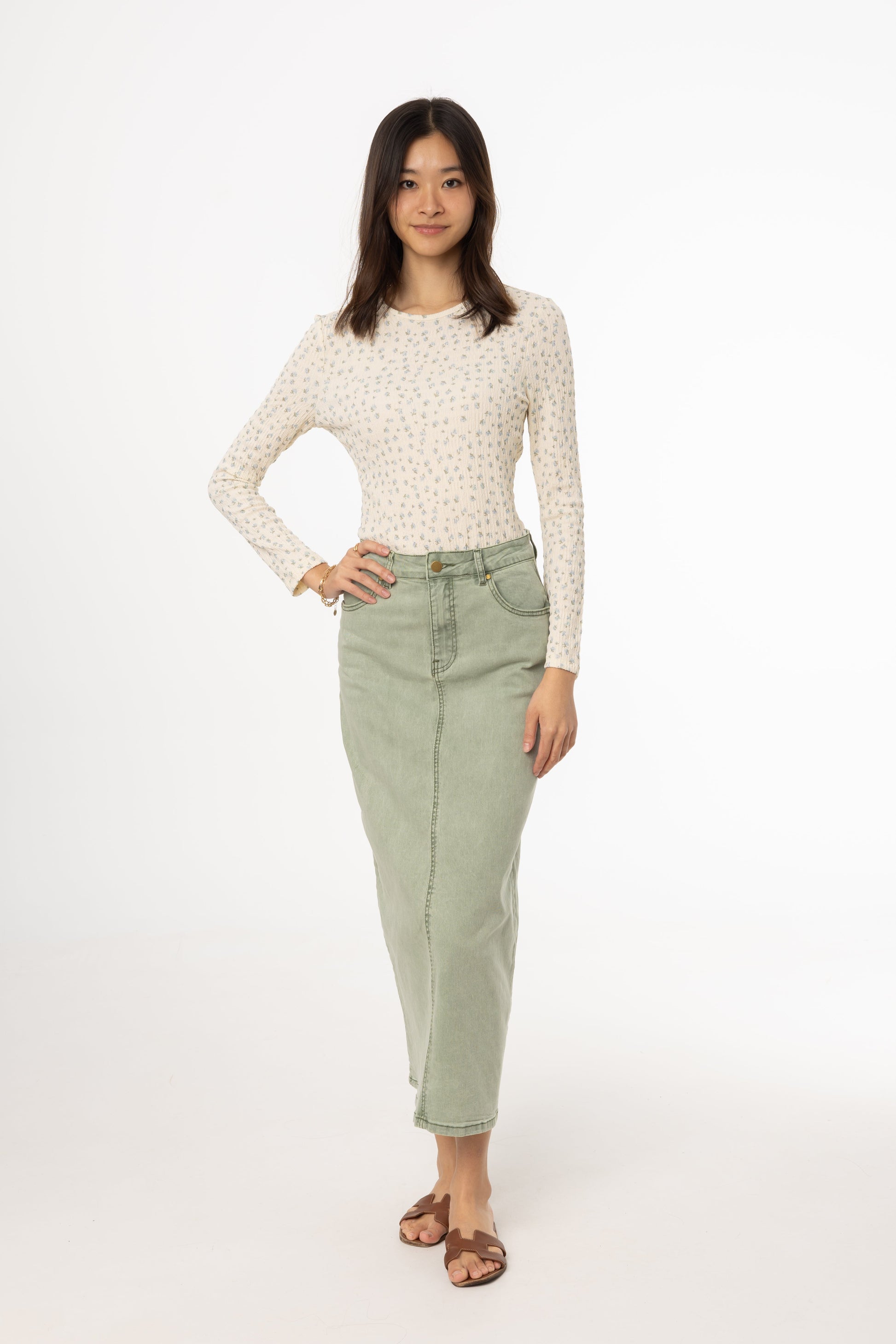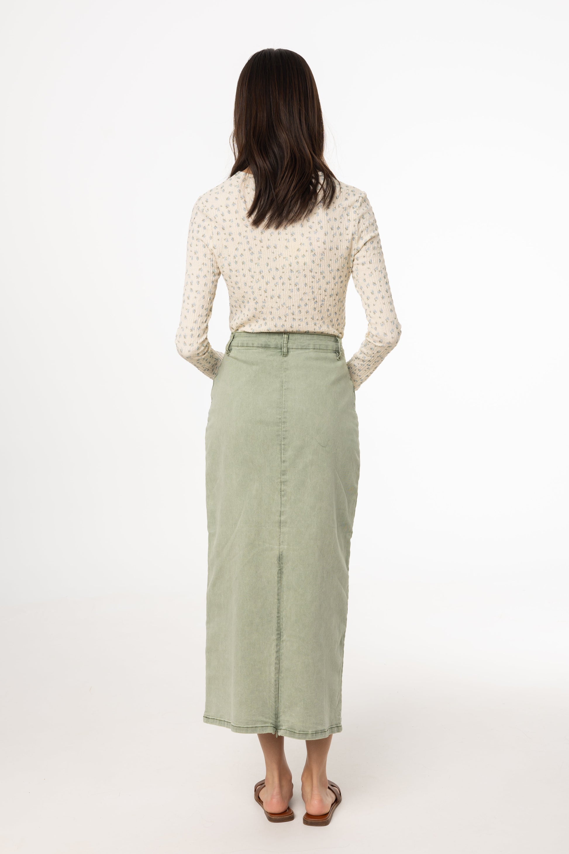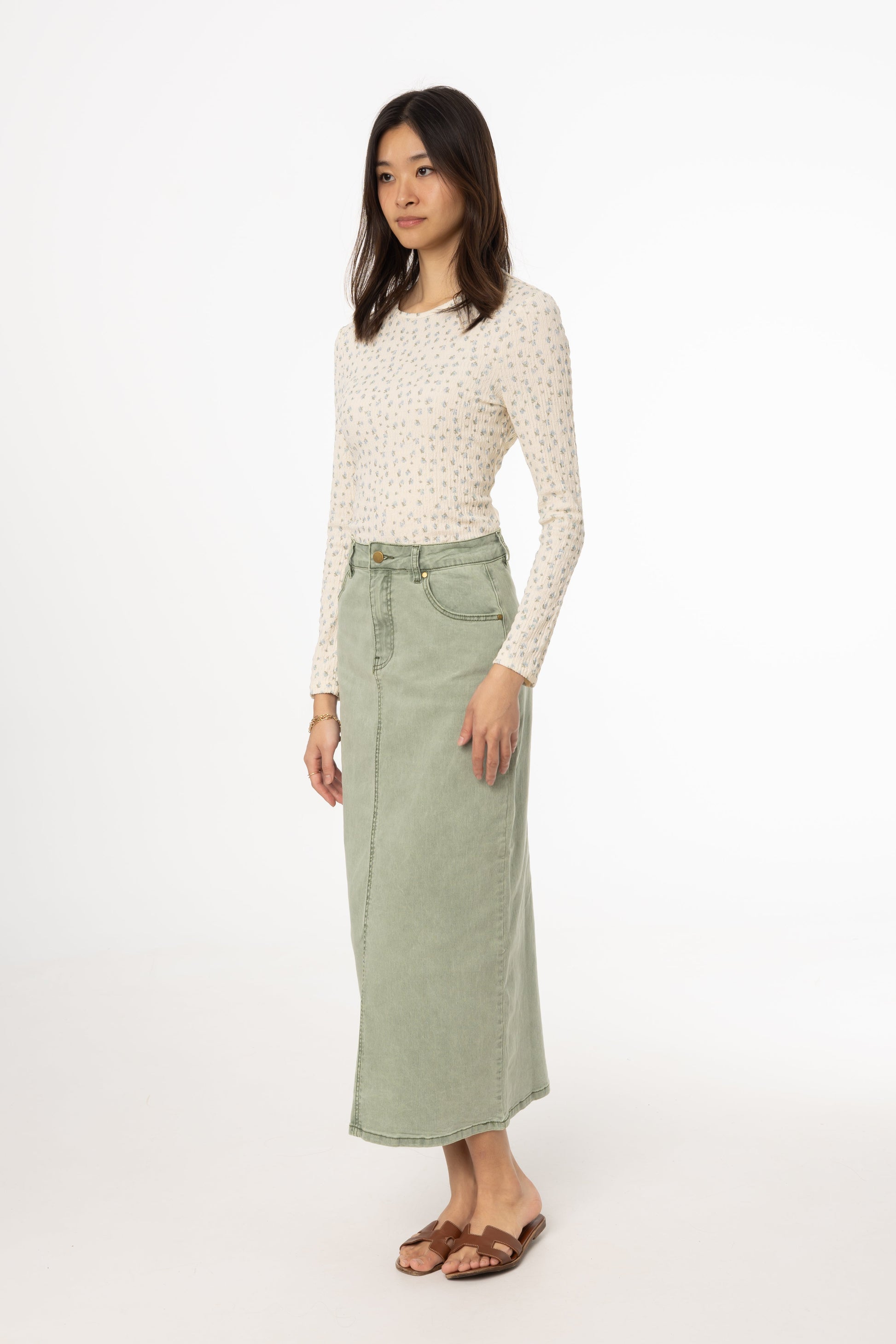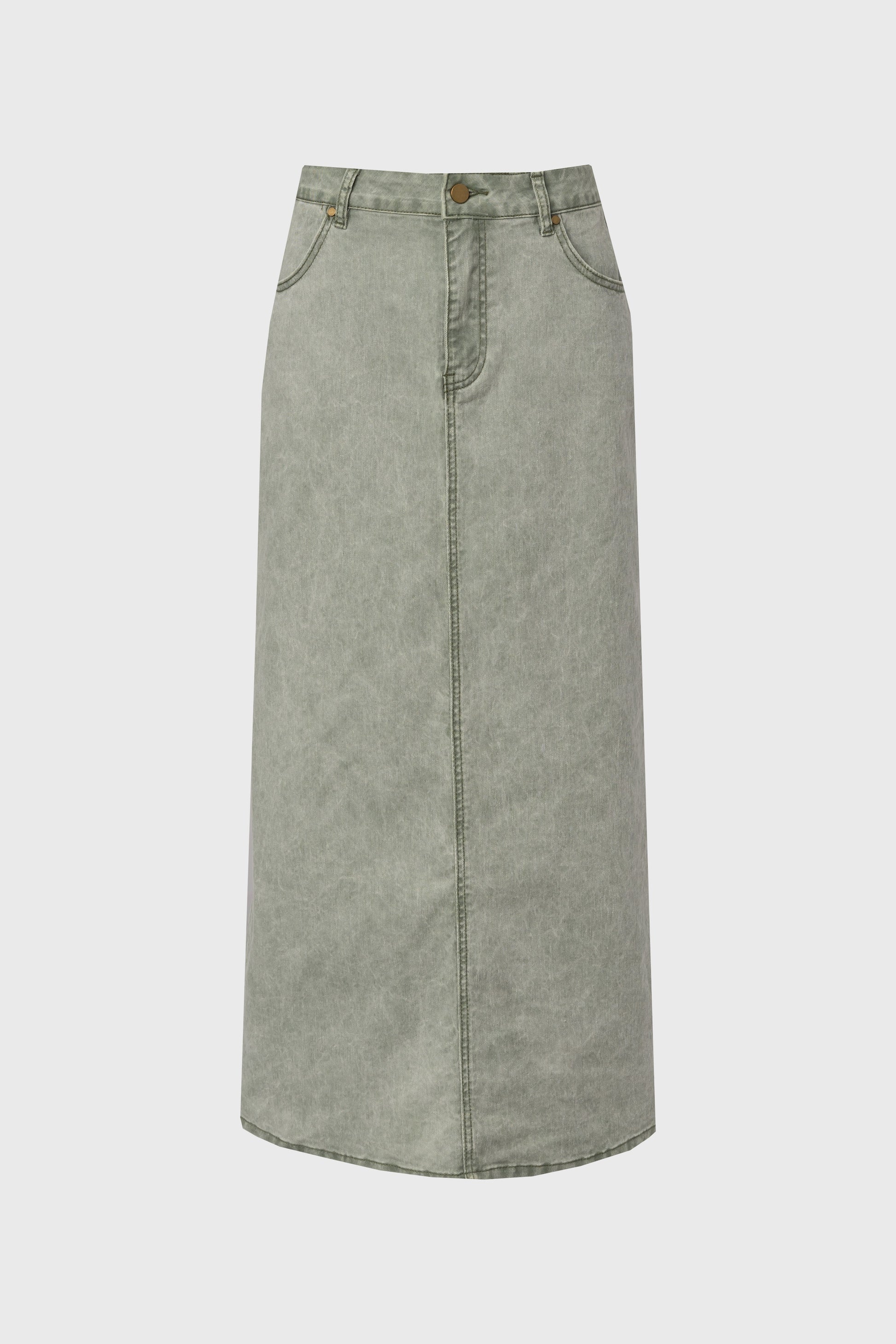 Green Wash Denim Maxi Skirt