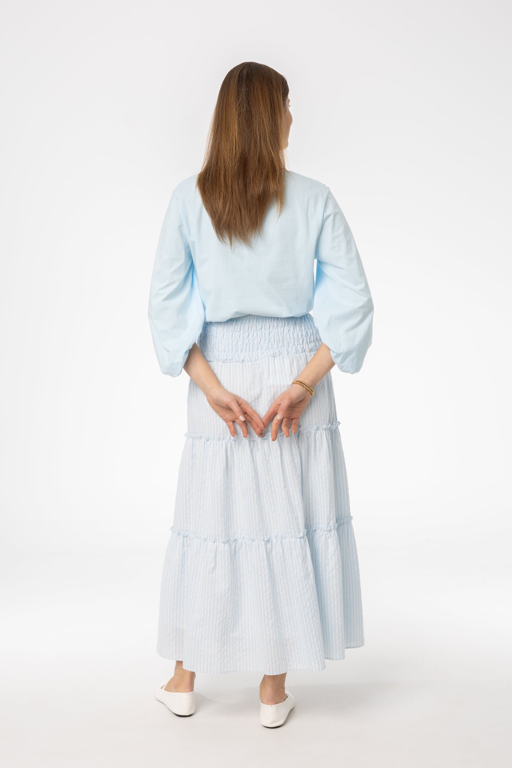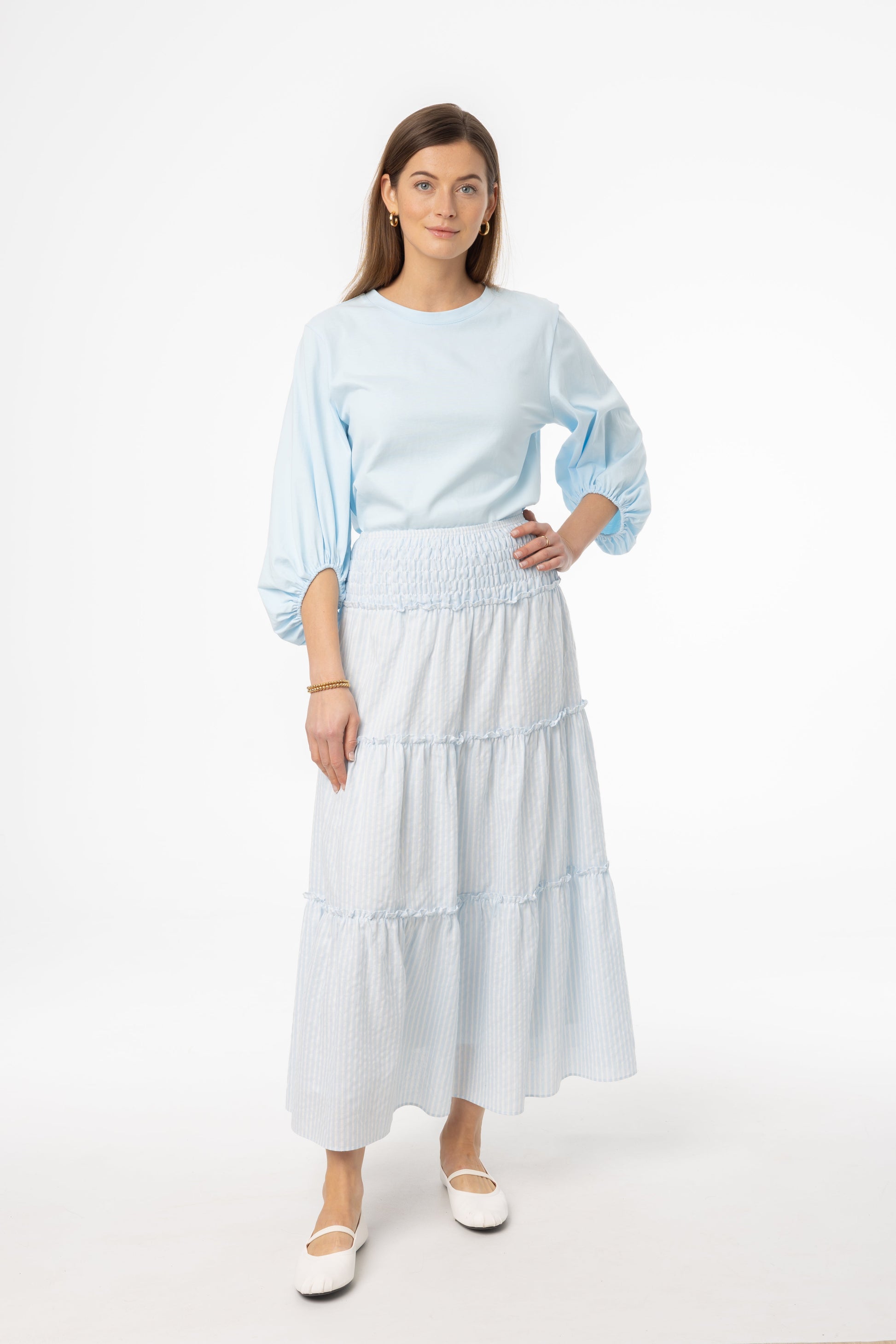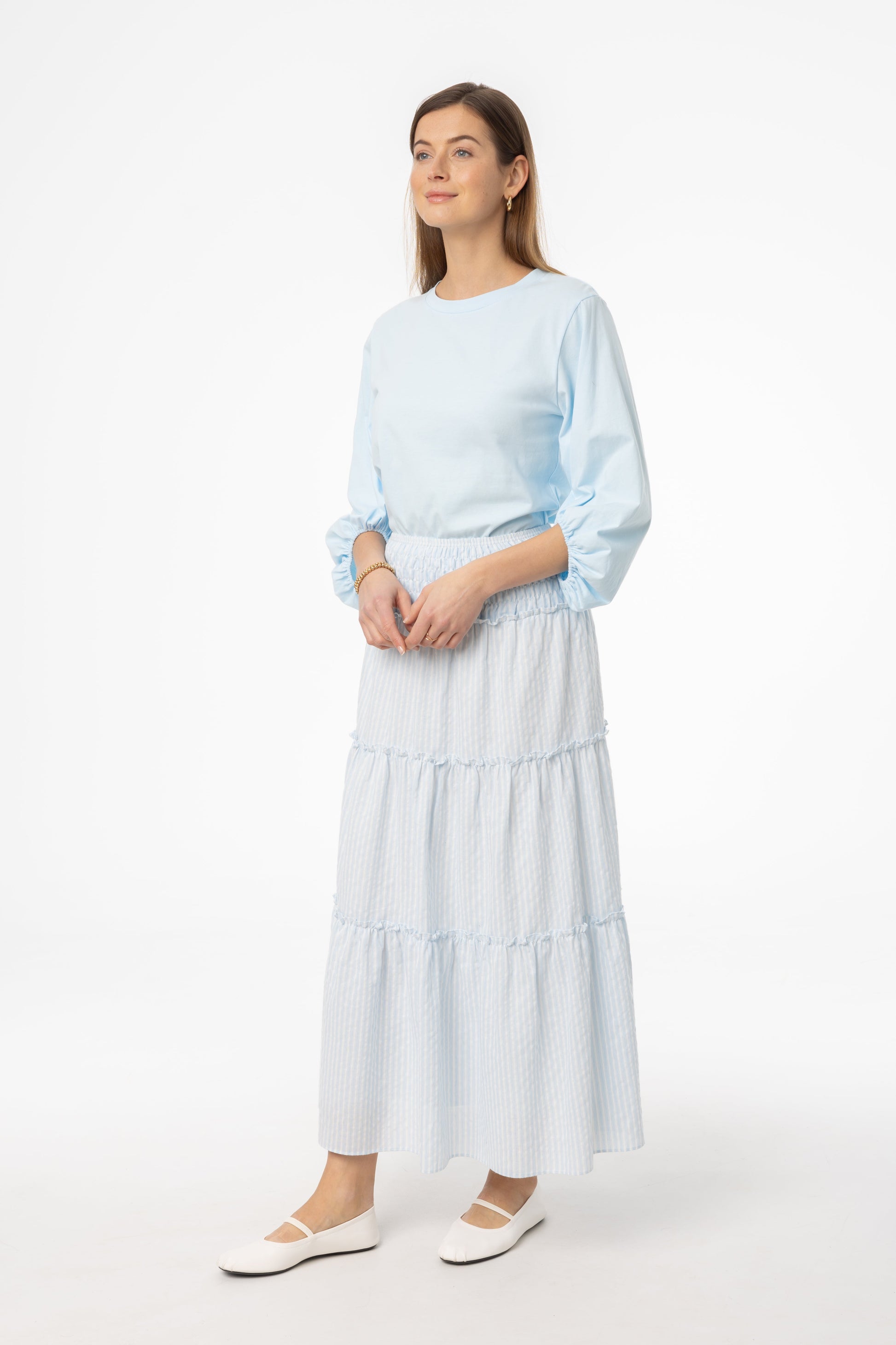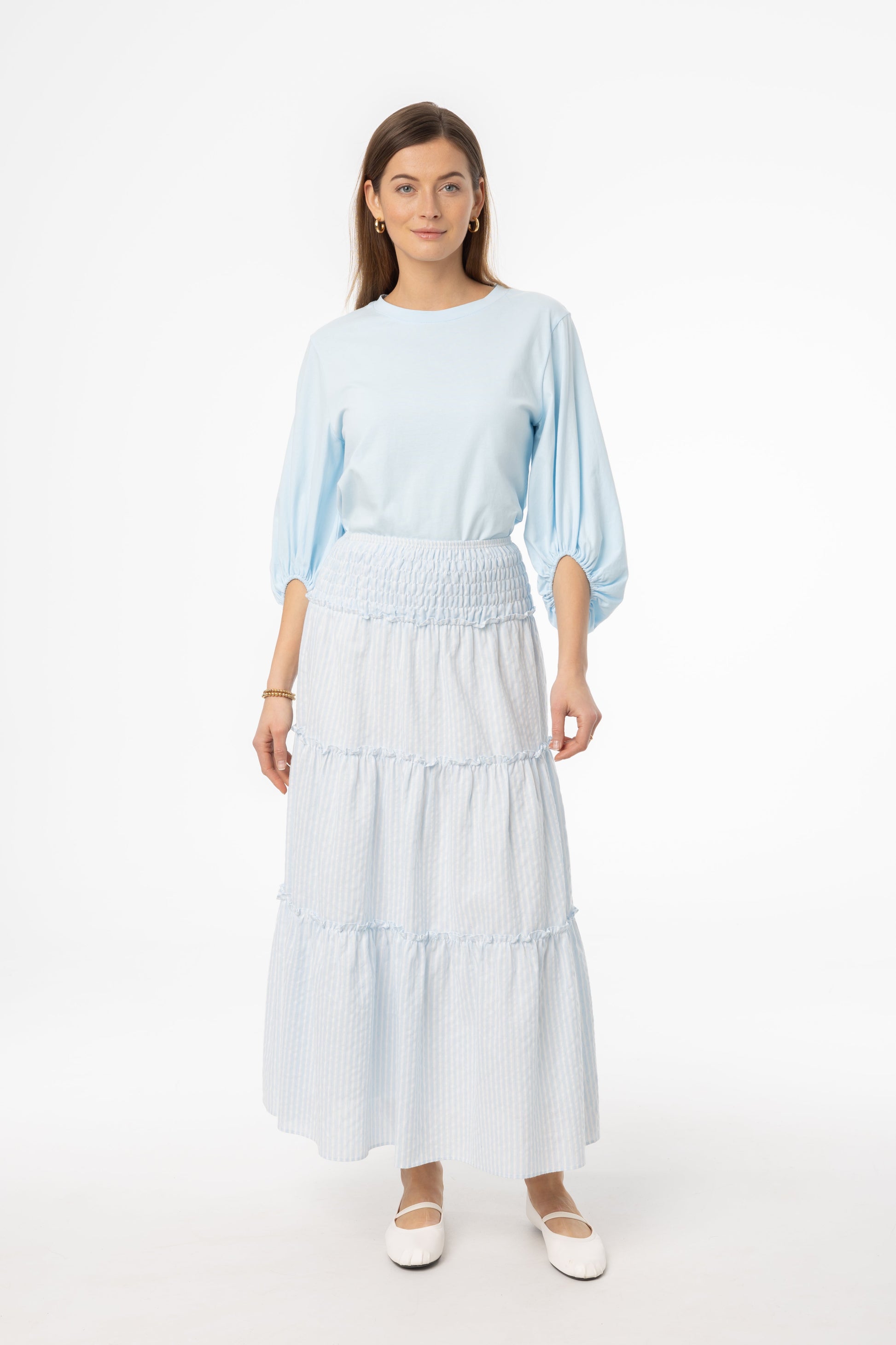 Light Blue Striped Maxi Skirt