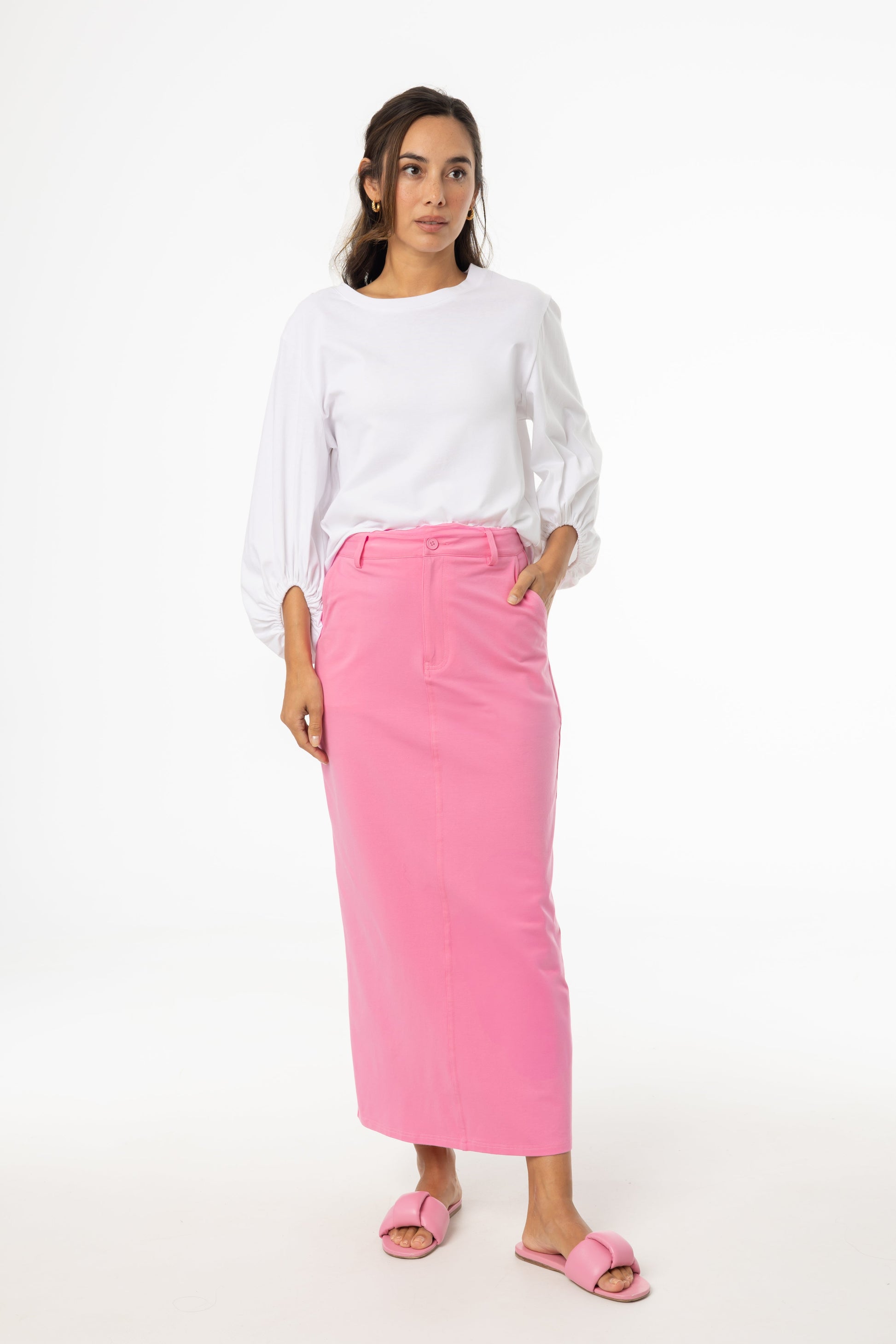 Reach for this maxi skirt when you need comfort that still looks put-together. Stretchy and flowy, it's made for those busy days when you’re out enjoying everything spring has to offer—from coffee dates to weekend markets. Easy to pair with a tee or blouse, this skirt is your perfect companion for both casual outings and a touch of springtime elegance.