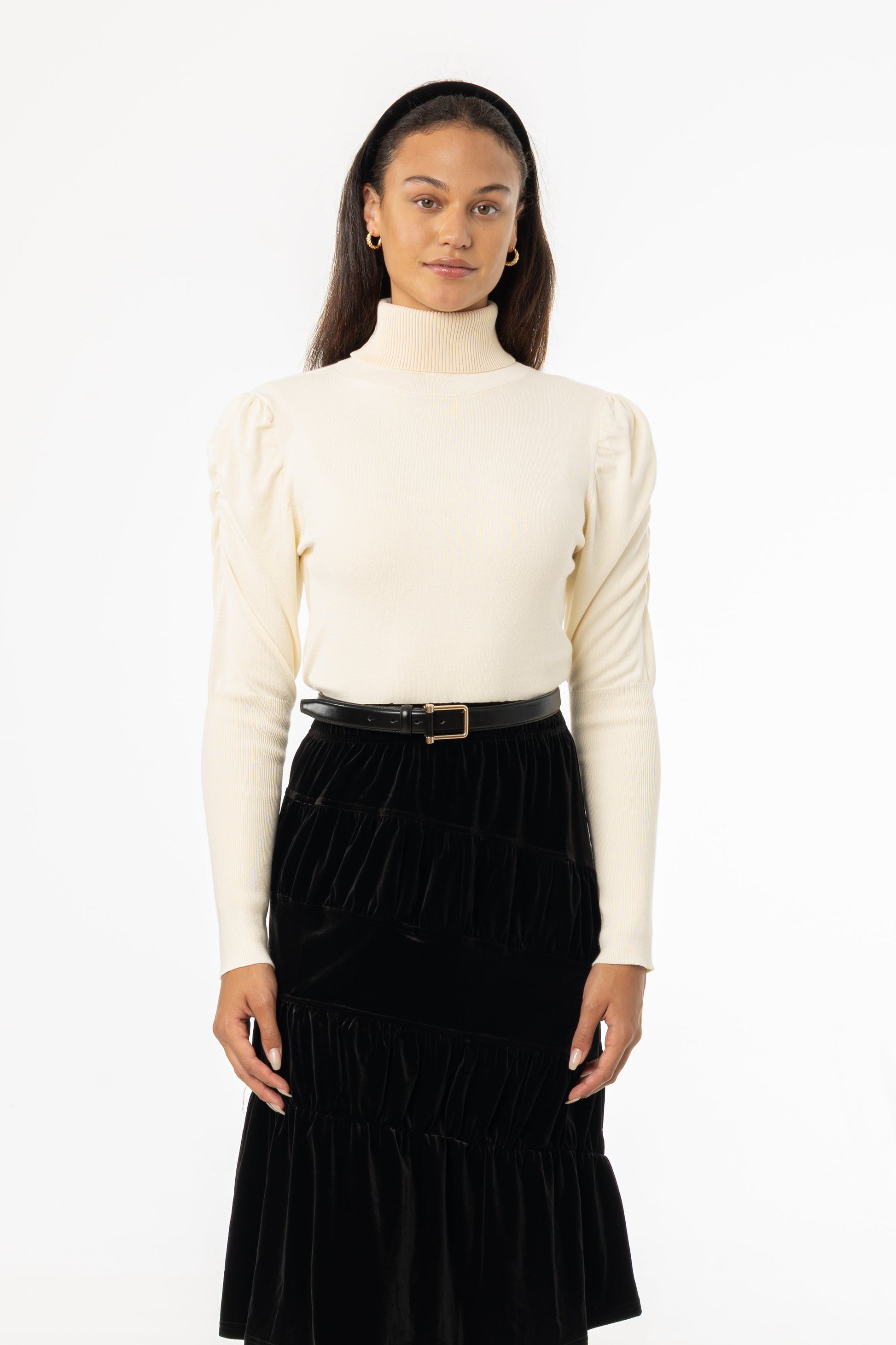 Cream Puff Sleeve Knit Turtleneck Sweater