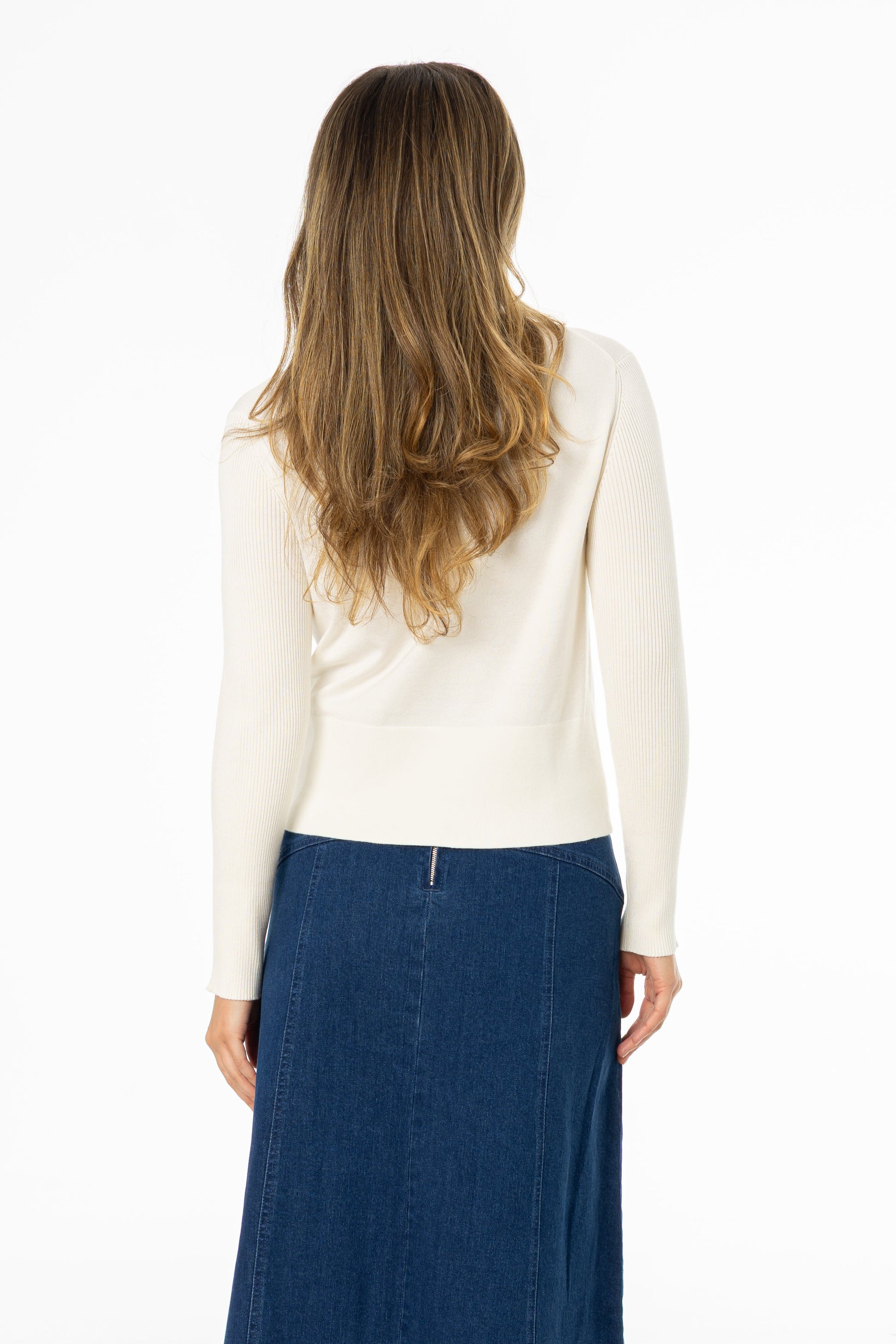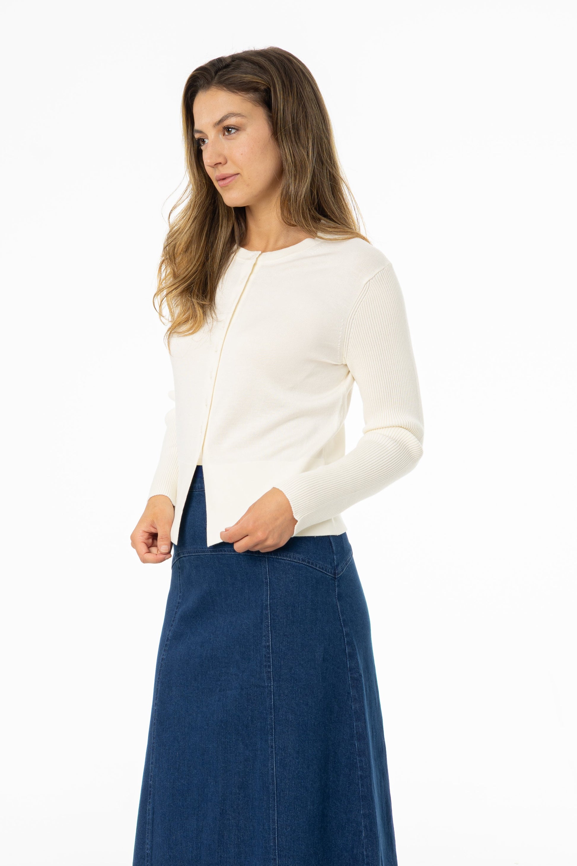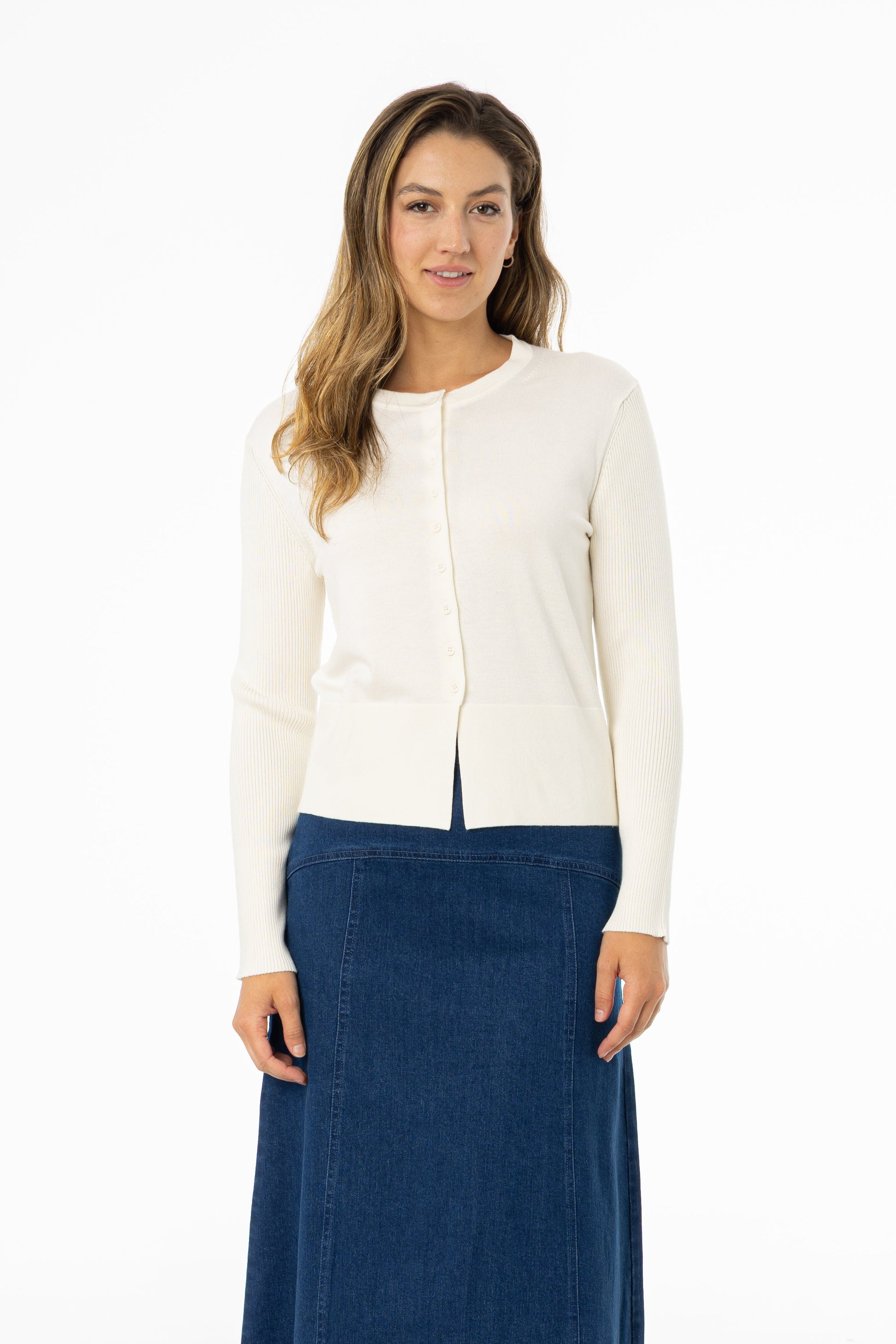 Cream Ribbed Sleeve Cardigan