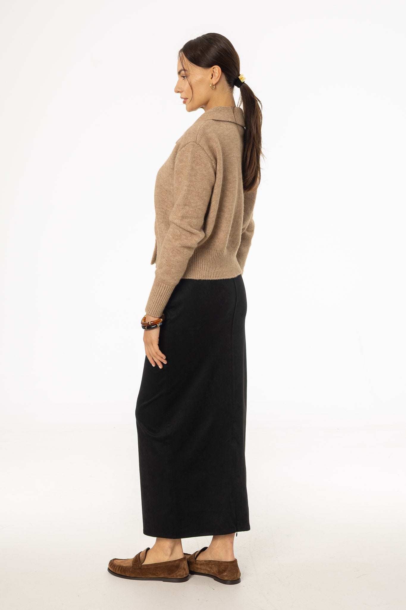 Your new go-to, every single day. Made in buttery-soft microsuede, this skirt feels as good as it looks. The clean silhouette is easy to dress up or down—throw it on with a cozy knit for errands, or pair with a crisp blouse when you need to look pulled together. Polished but never fussy, it’s the skirt that does it all (so you don’t have to overthink it).