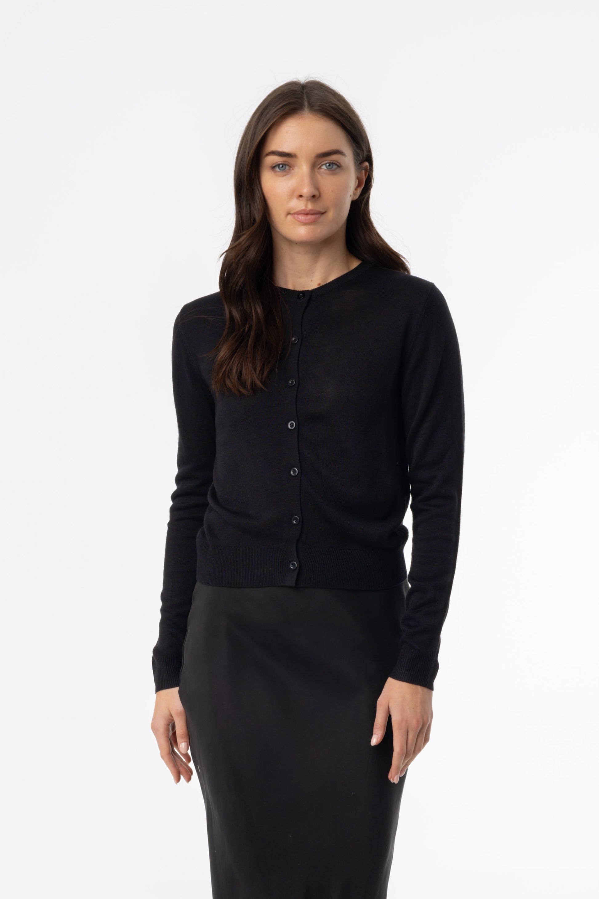 Meet the must-have layer your wardrobe’s been waiting for! This Black Fine Knit Round Neck Cardi combines a sleek, fitted silhouette with a touch of cozy. Effortlessly chic with its classic round neckline, it’s the perfect throw-on piece for any look – from casual days to dressed-up nights. Pair it with anything, and you’ll instantly feel polished and put together.