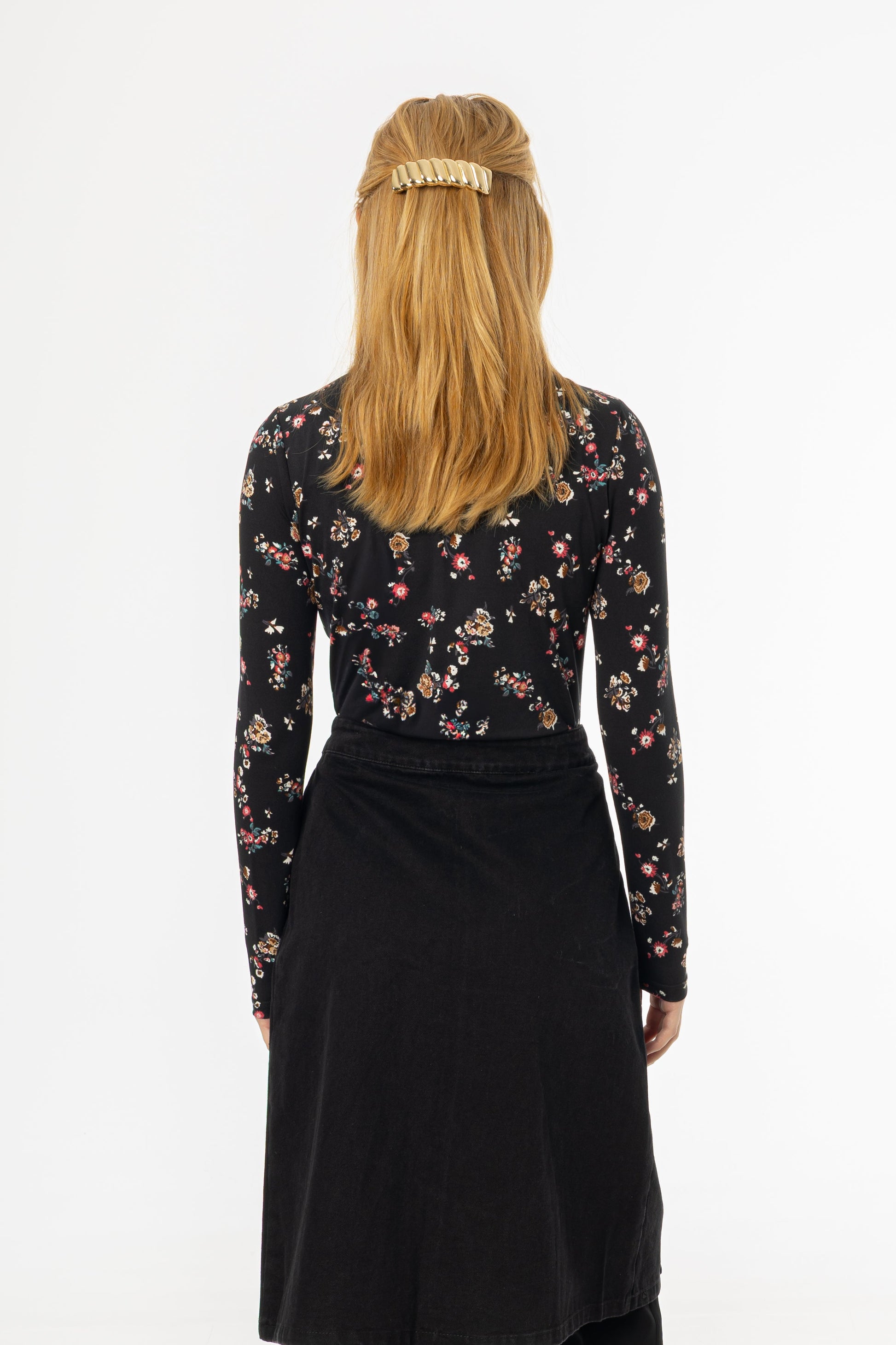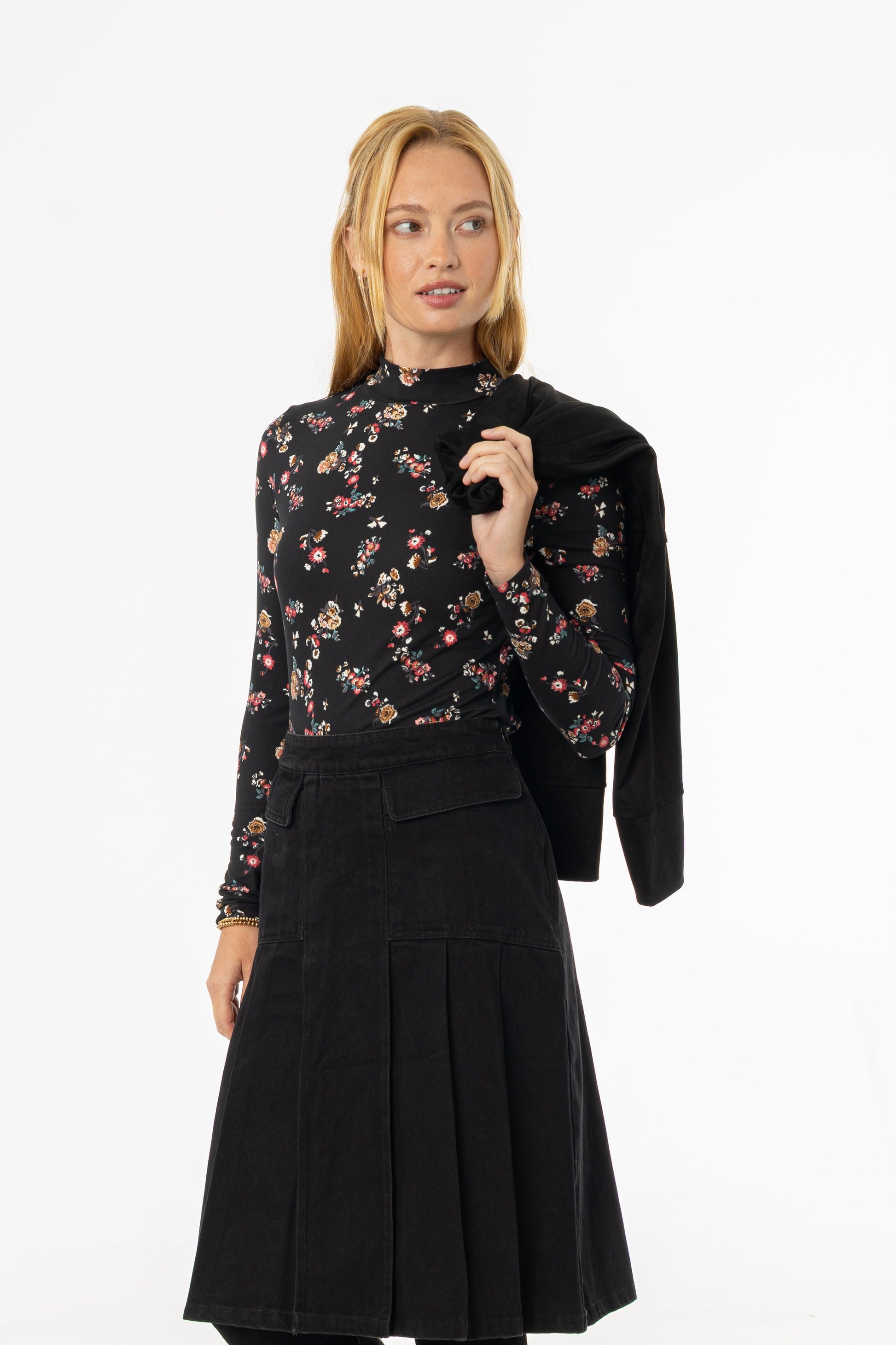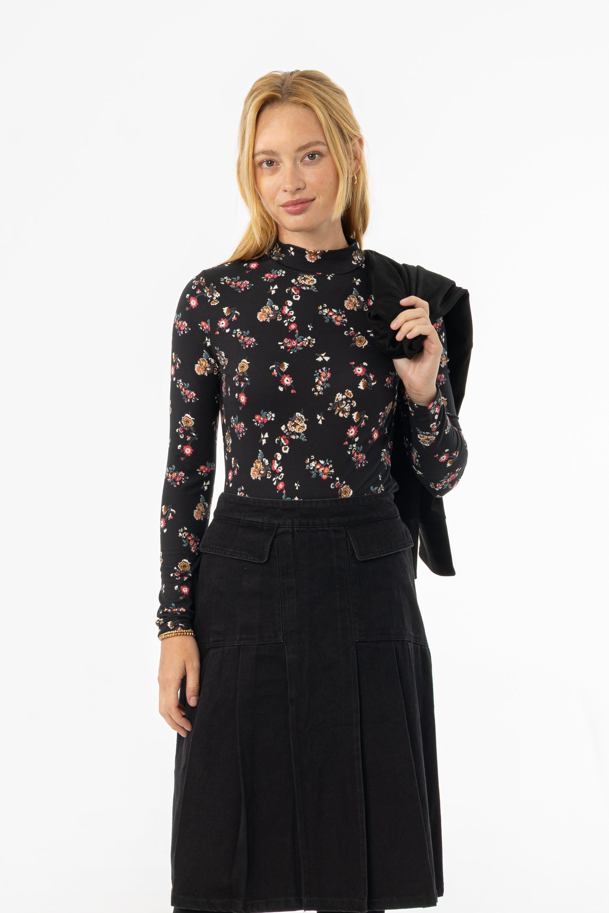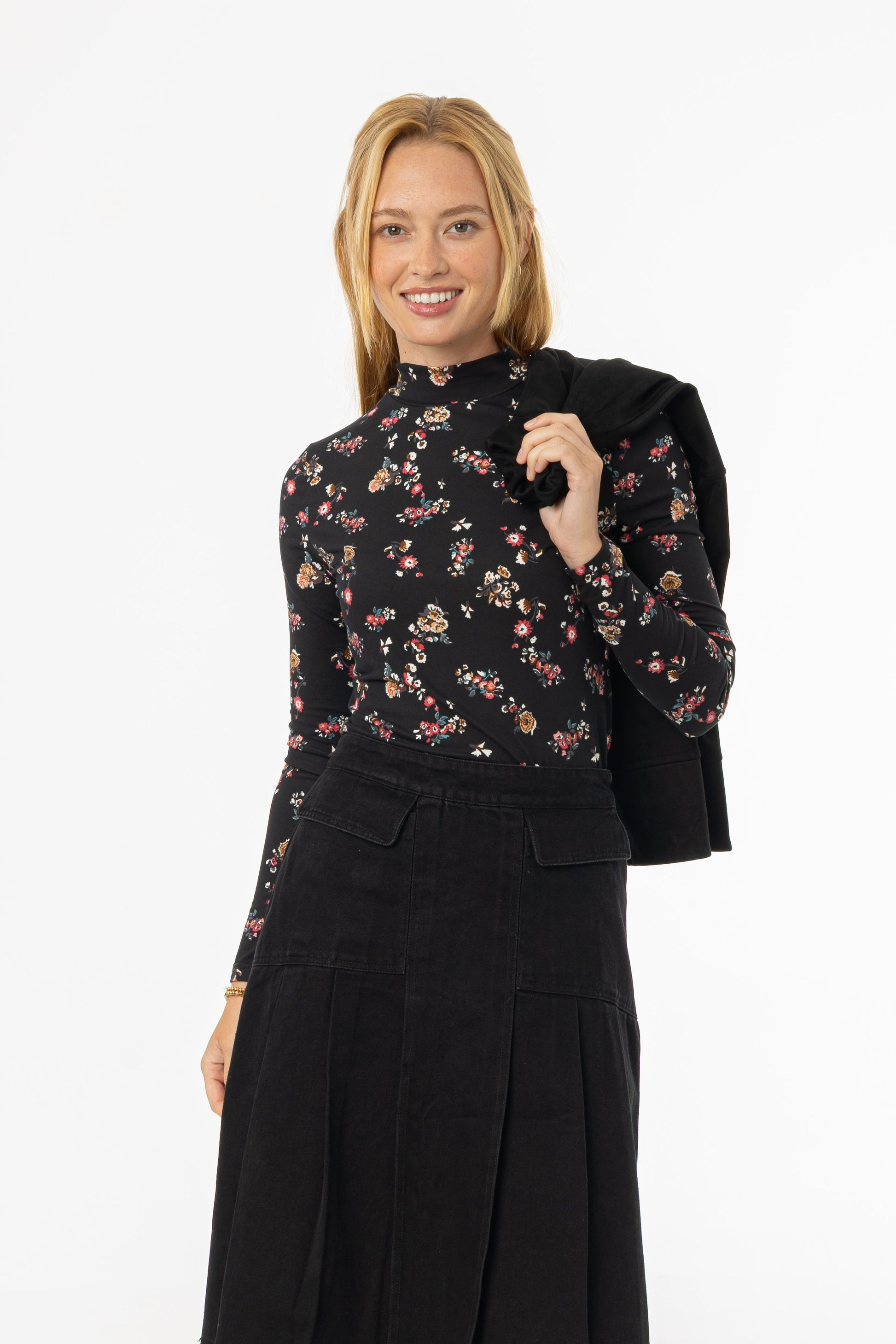 Black Floral Mock Neck Top