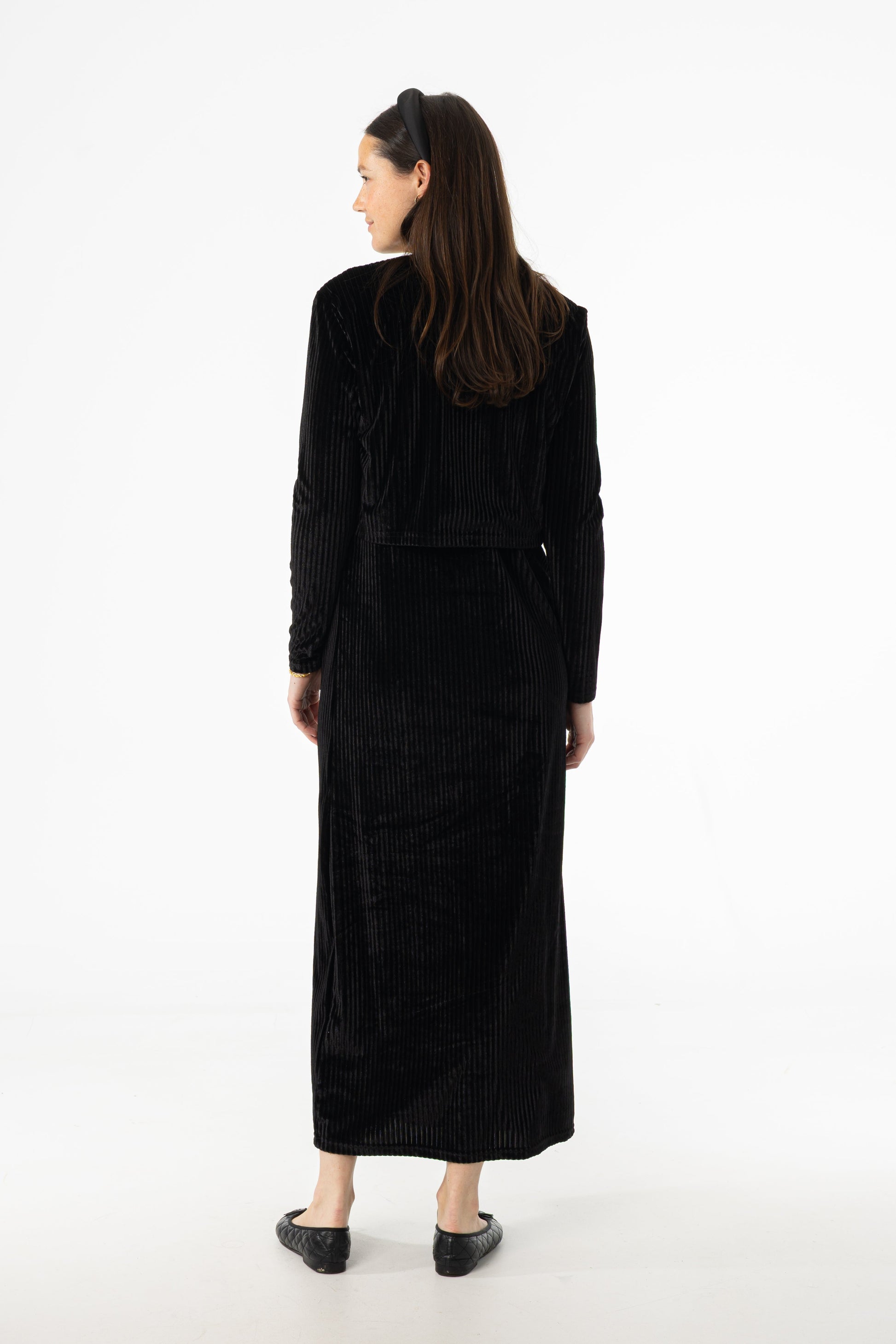 Velour, but not the ‘00s kind. This one’s cozy without going full couch-potato and ribbed for just enough texture. Toss it on with a long-sleeved tee underneath or a velour cardi. Fall layering just got easier.