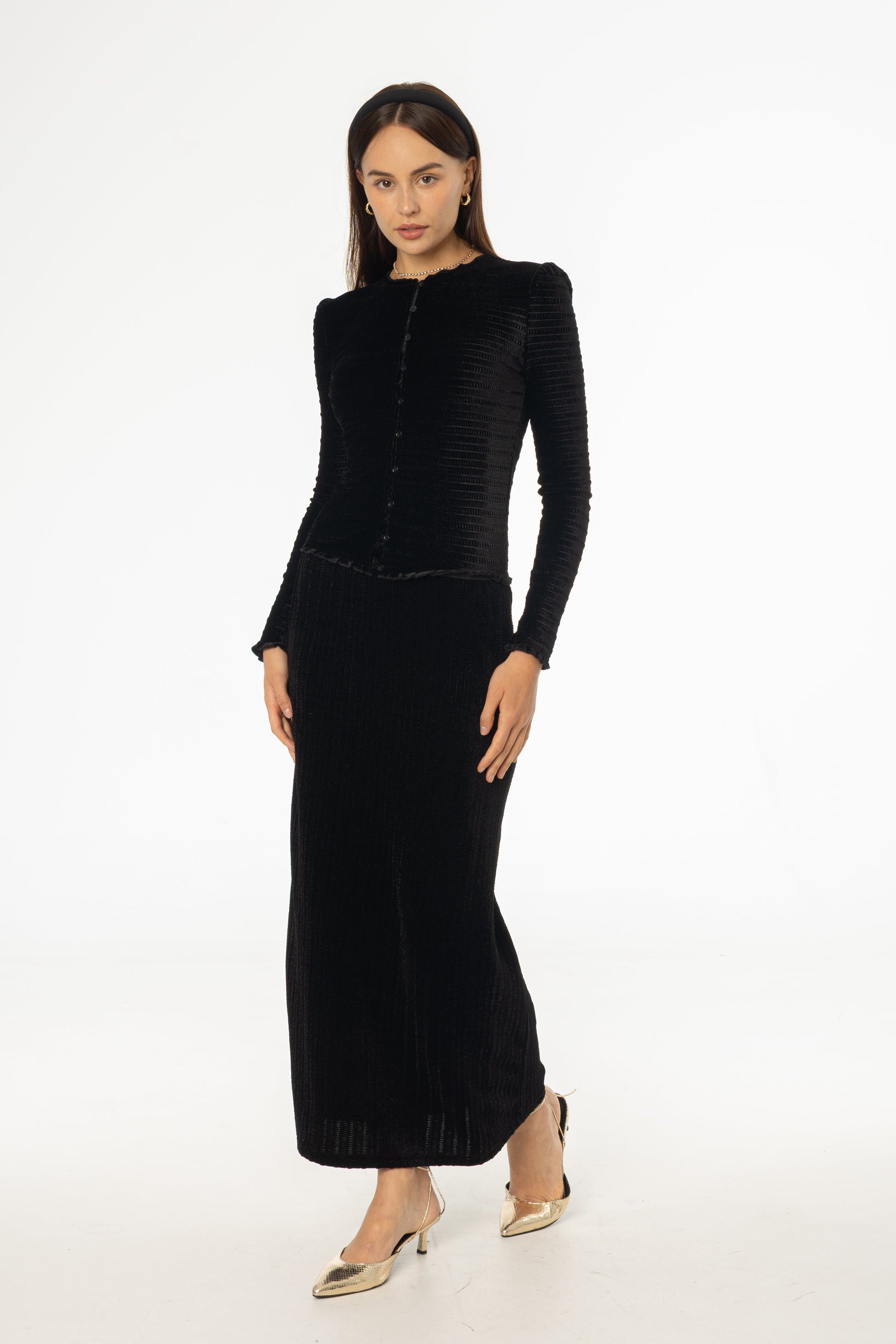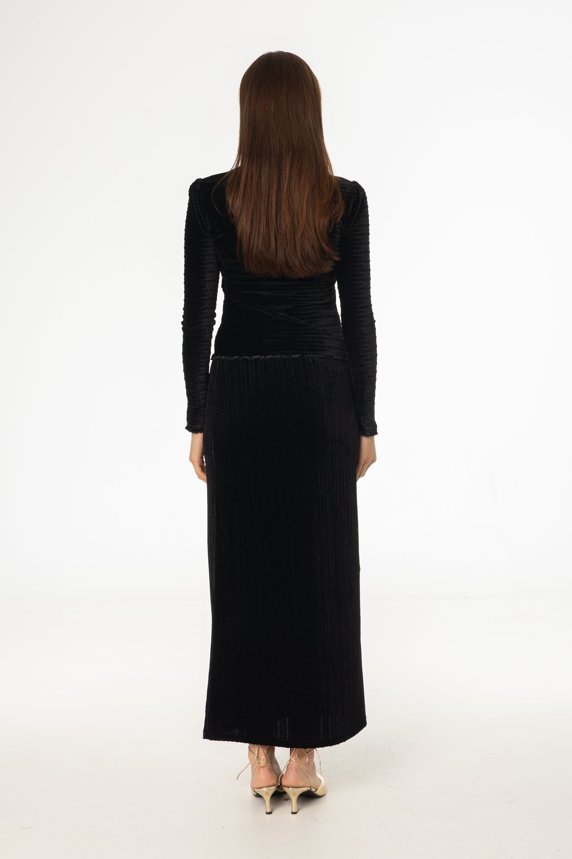 Black Ruched Velvet Skirt