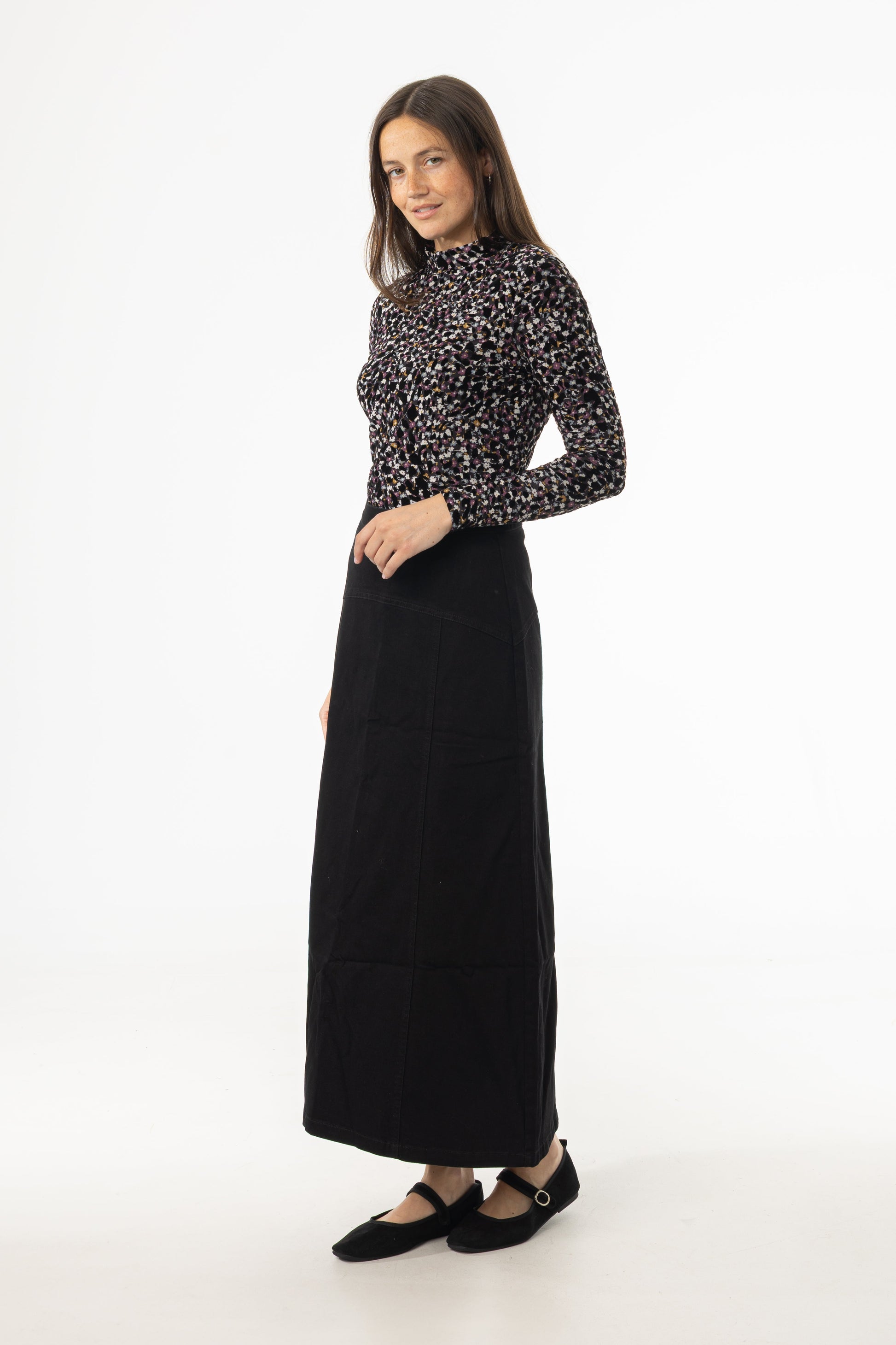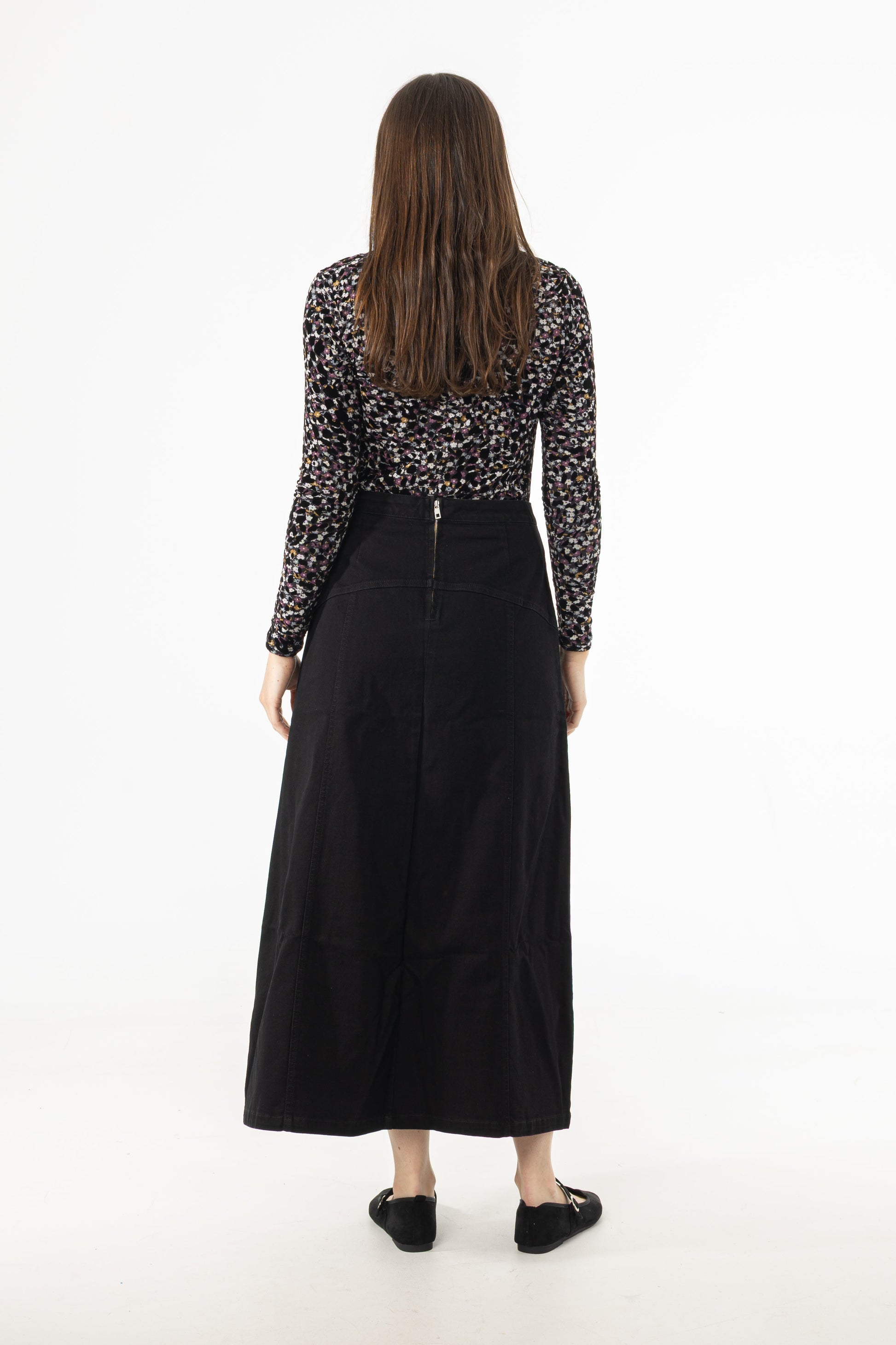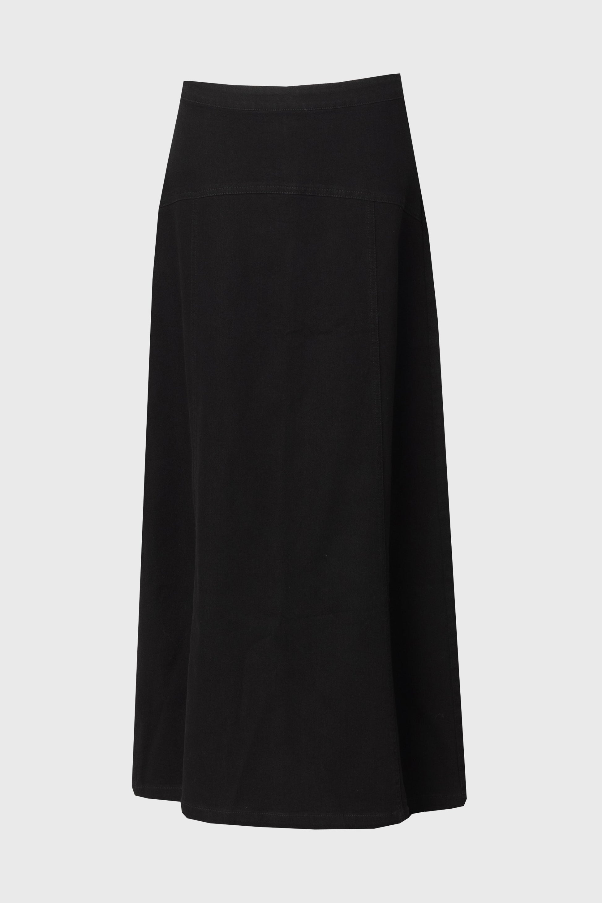 Black Yoke Seam Denim Skirt