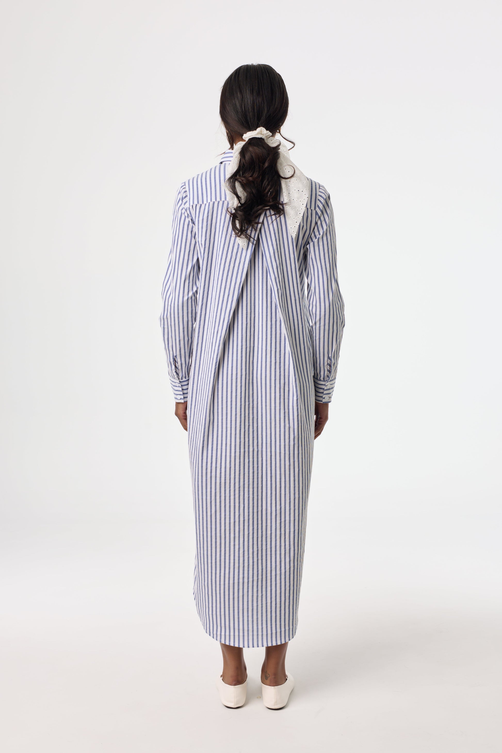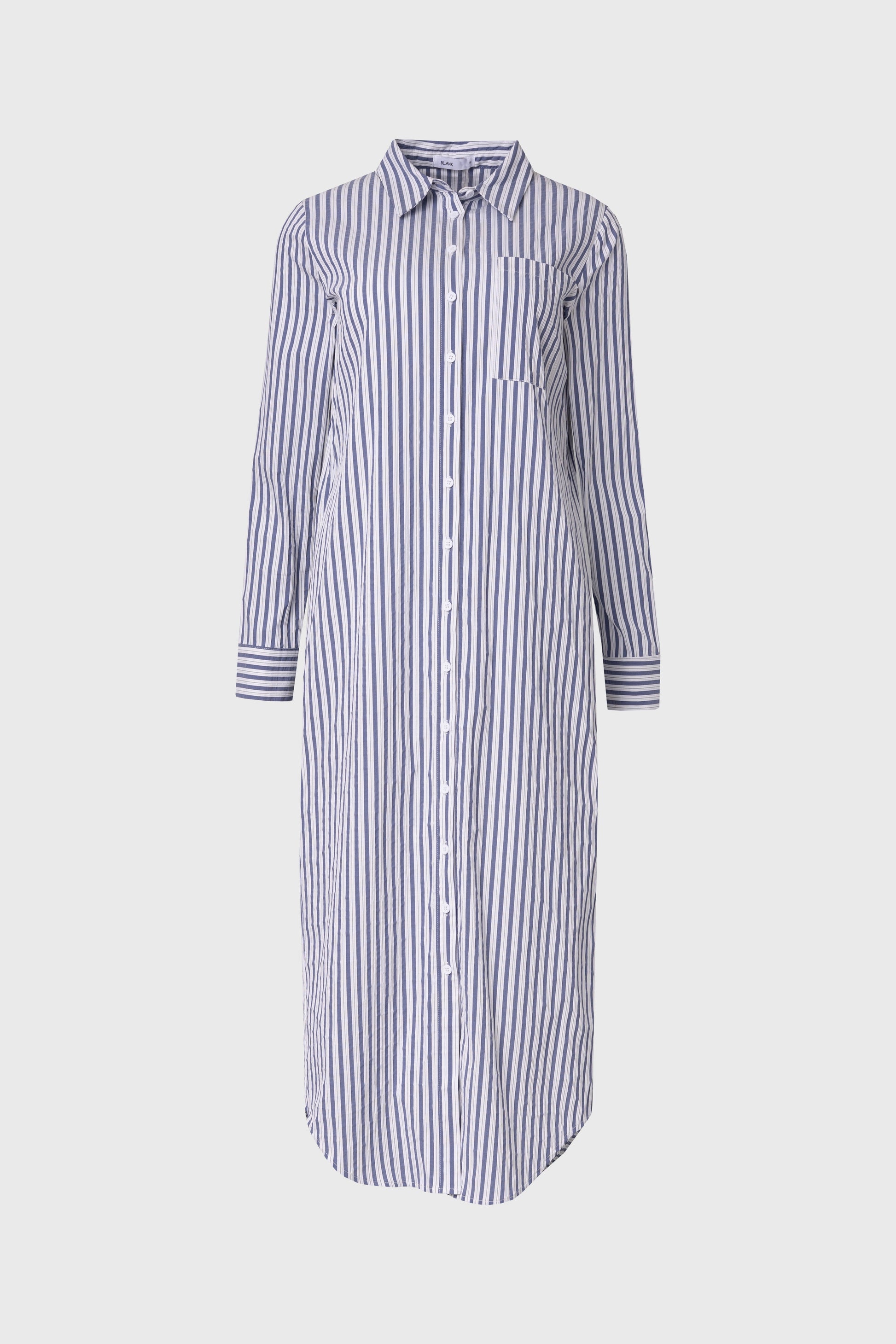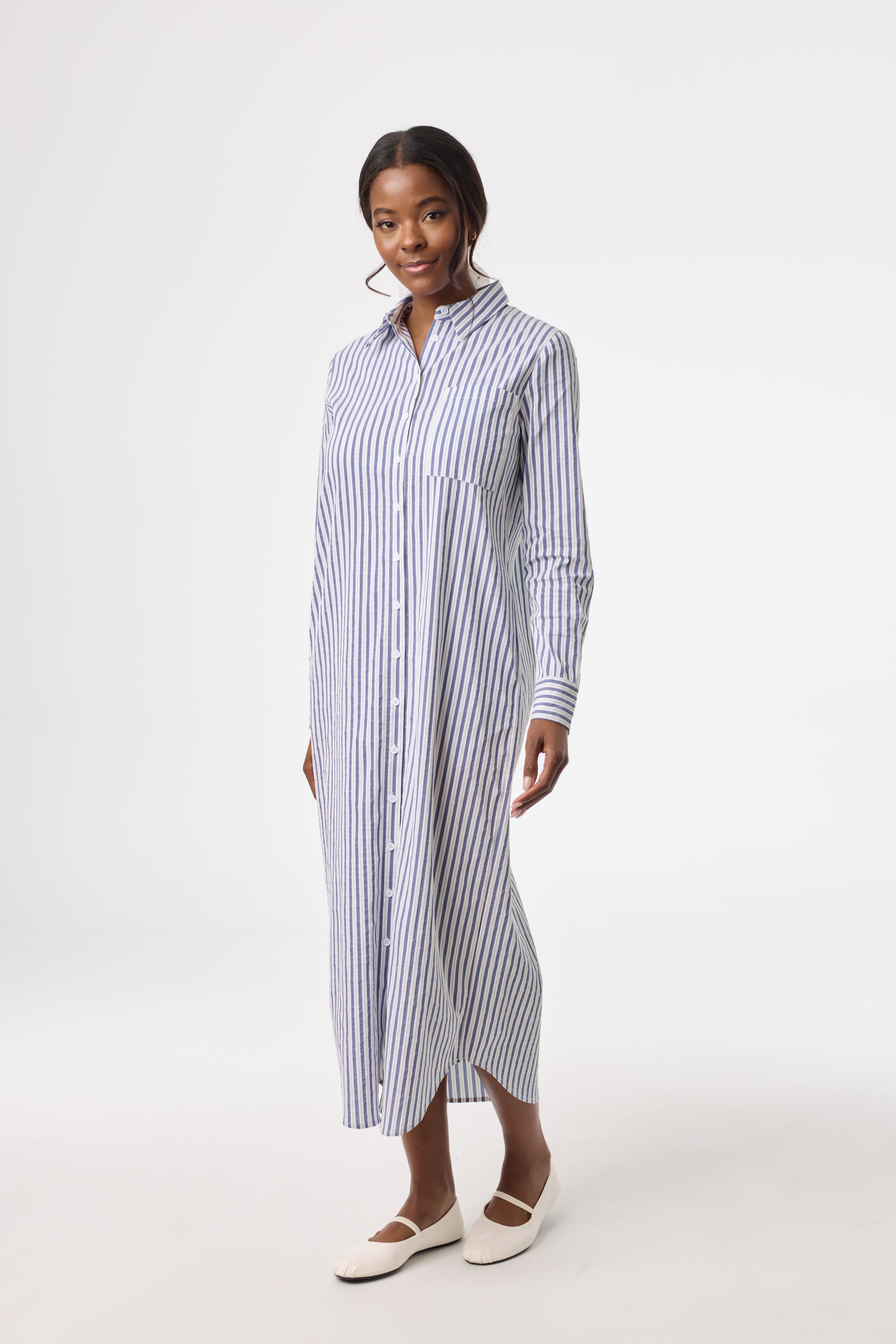 Blue Striped Stretch Maxi Shirt Dress