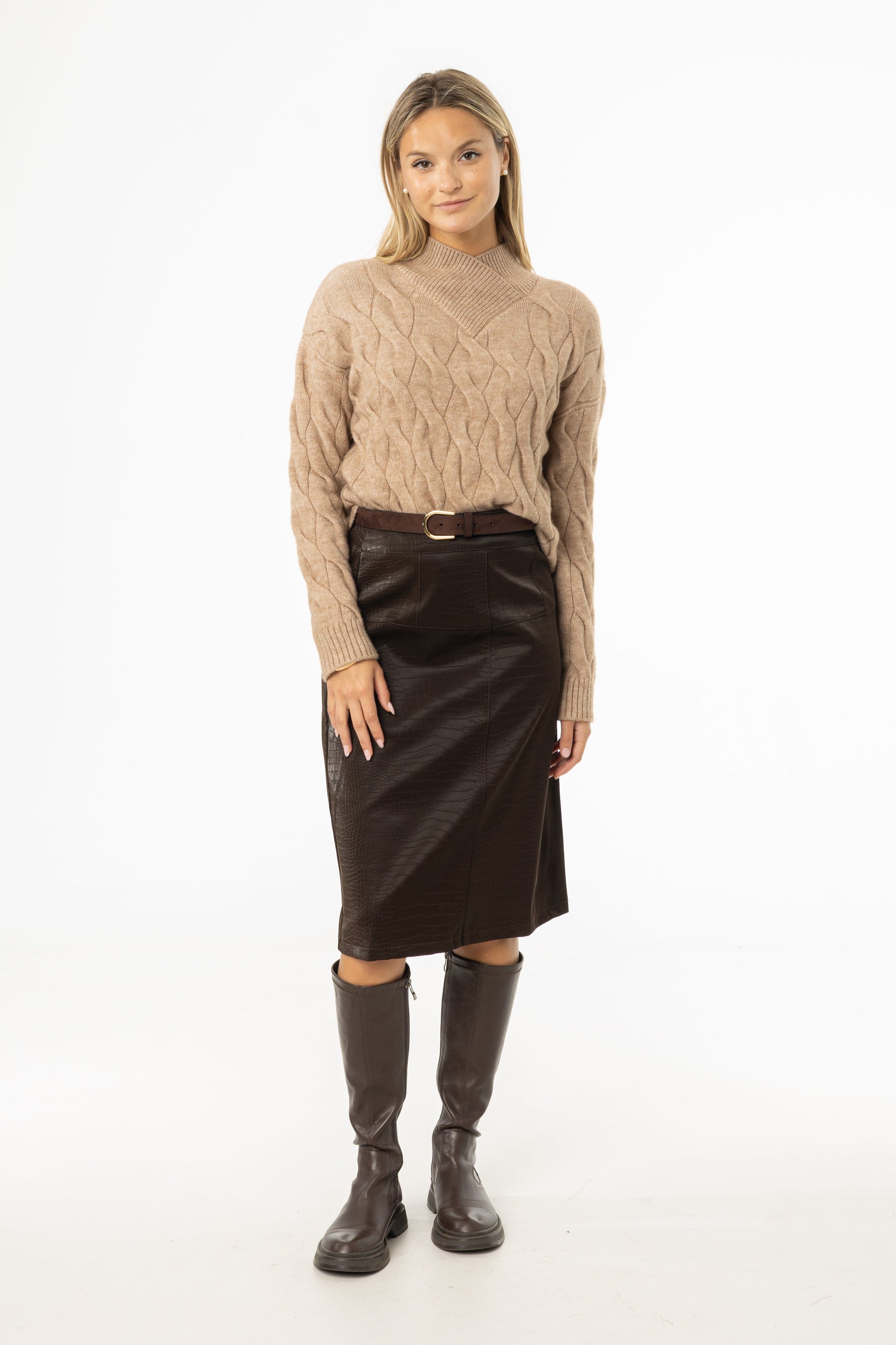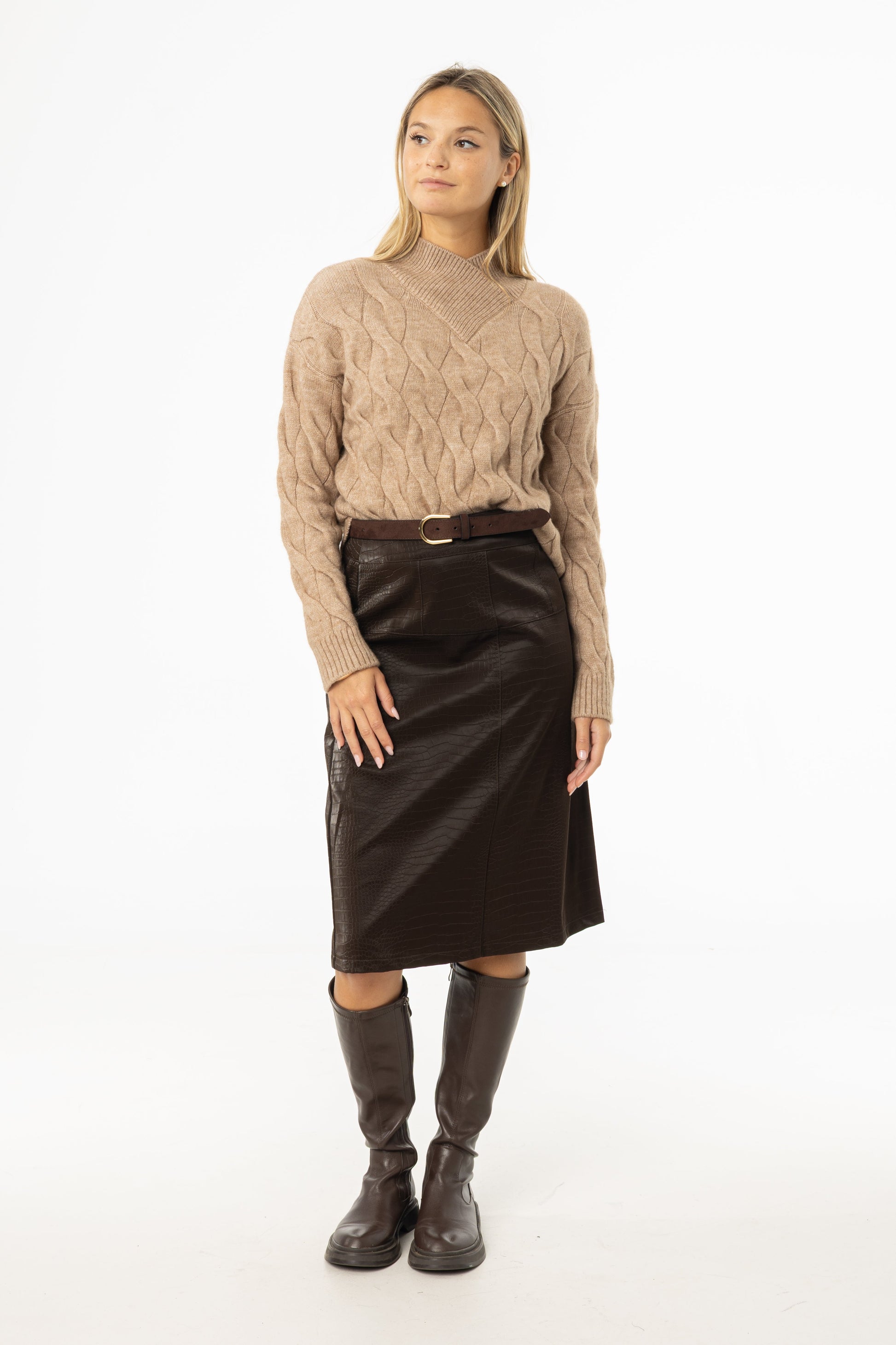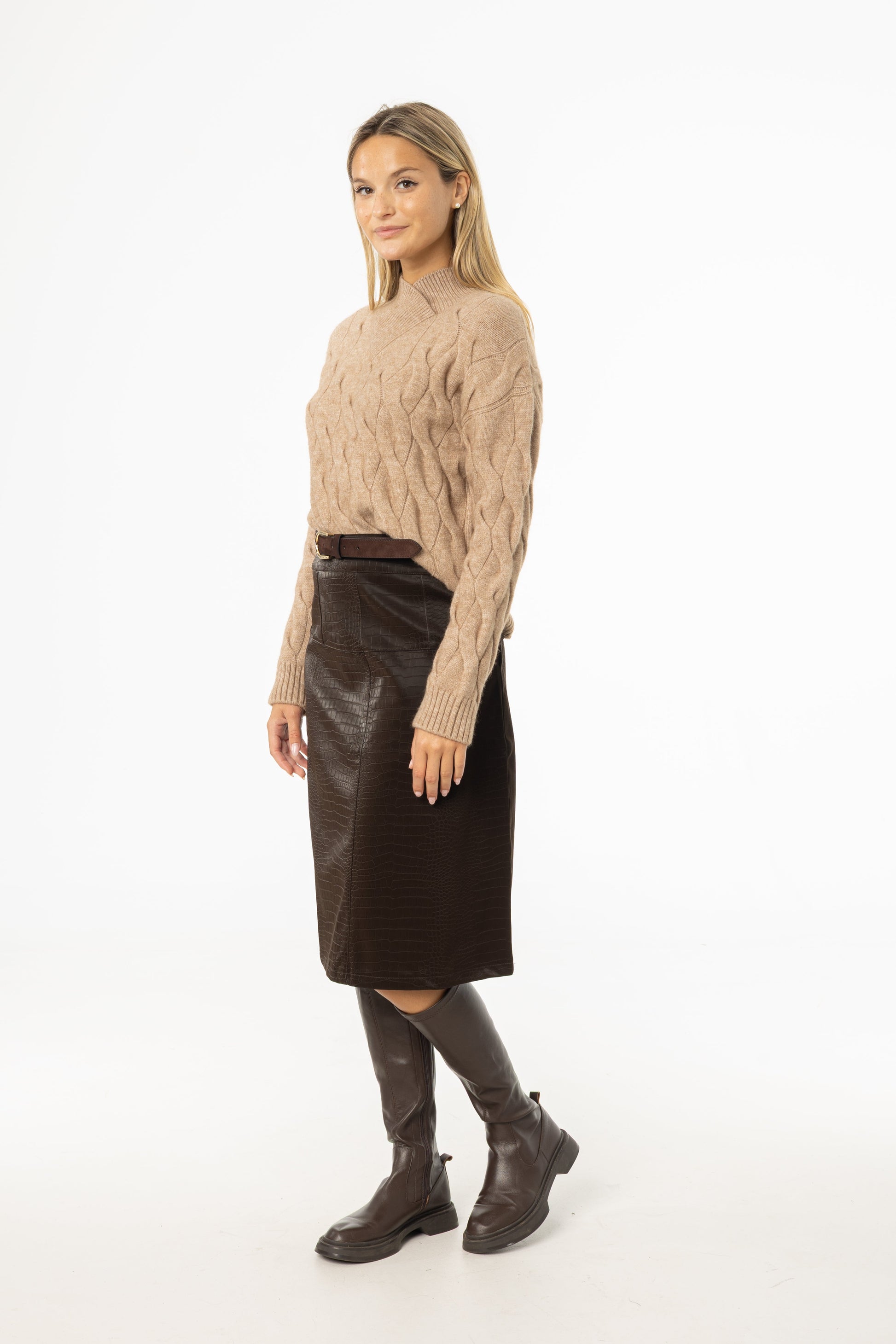 Brown Snake Skin Leather Skirt