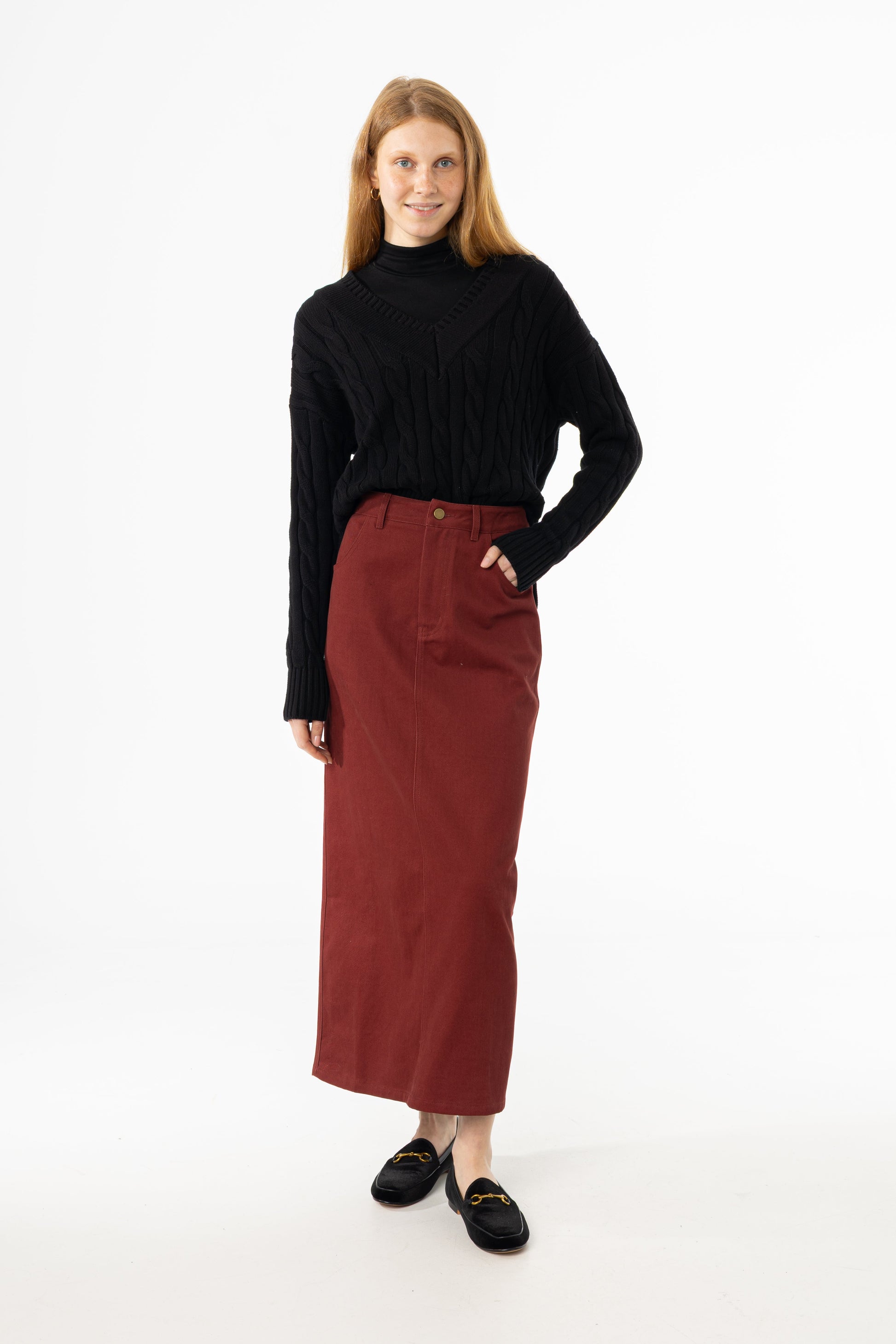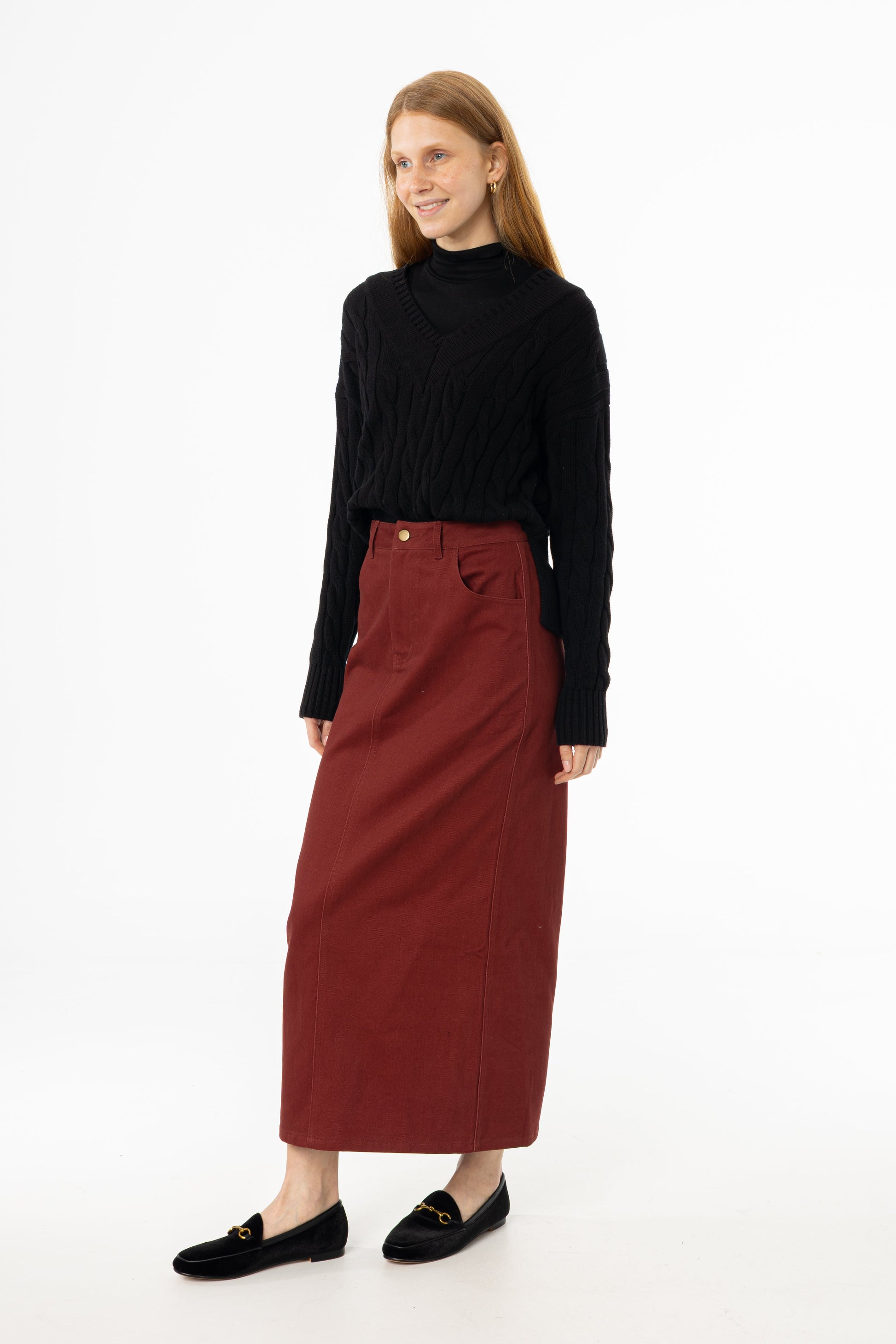 Burgundy Everyday Denim Skirt