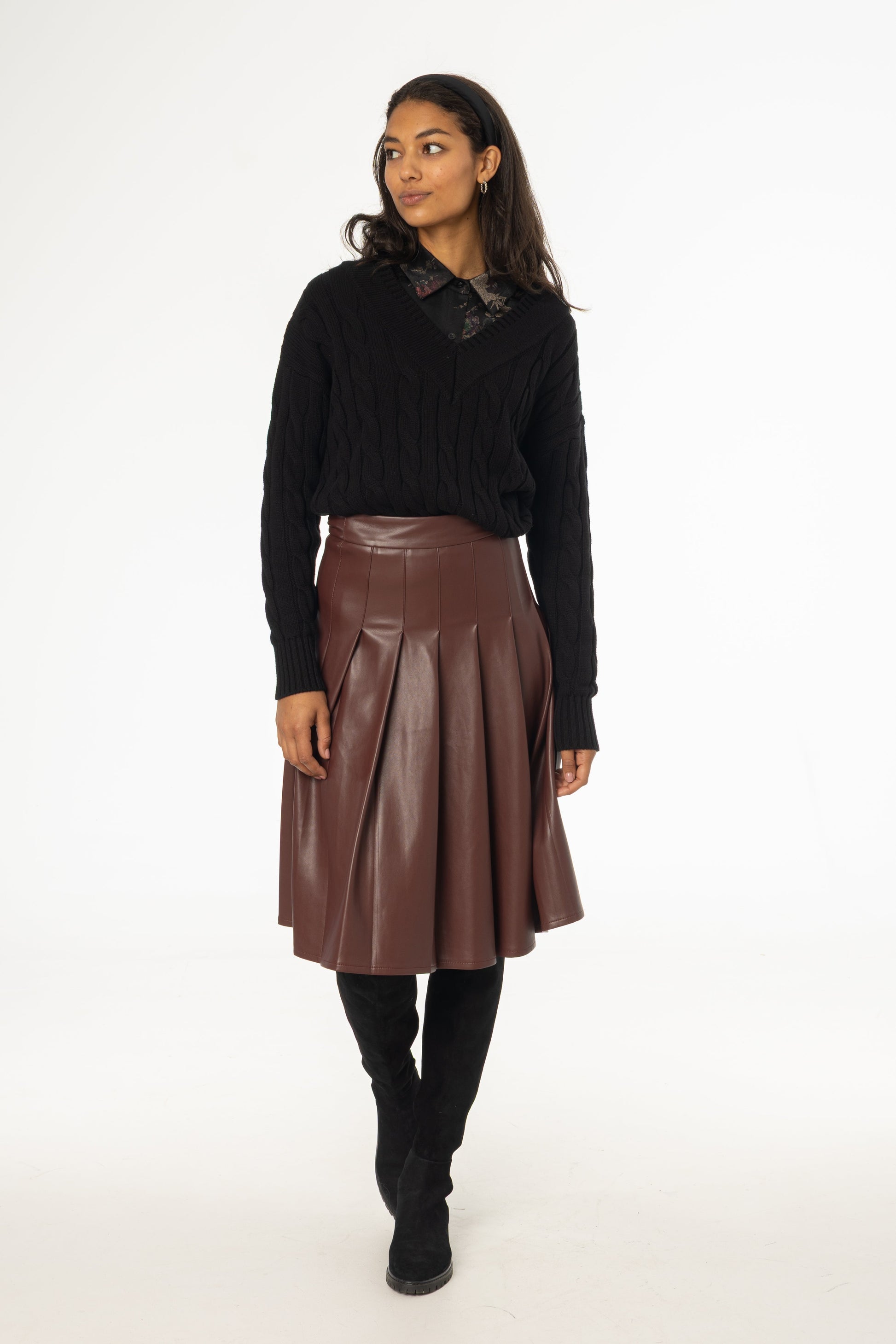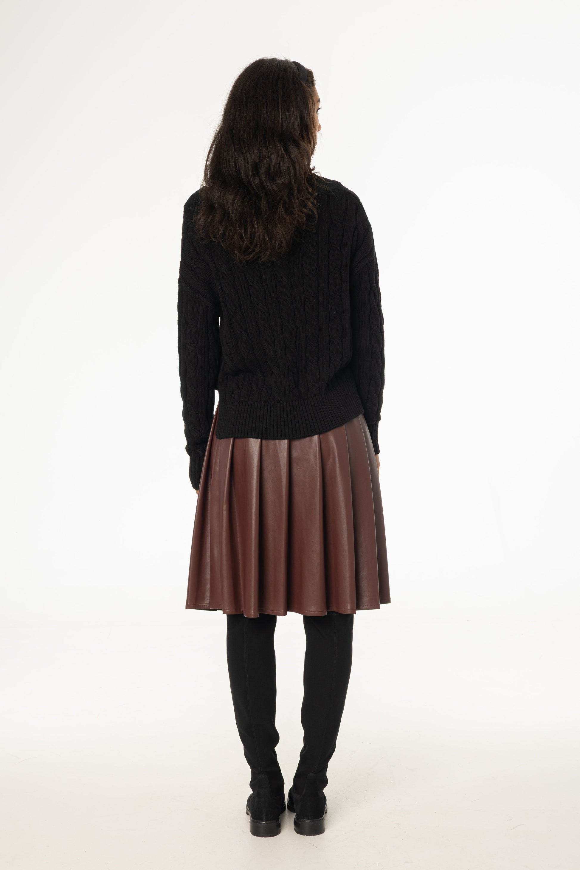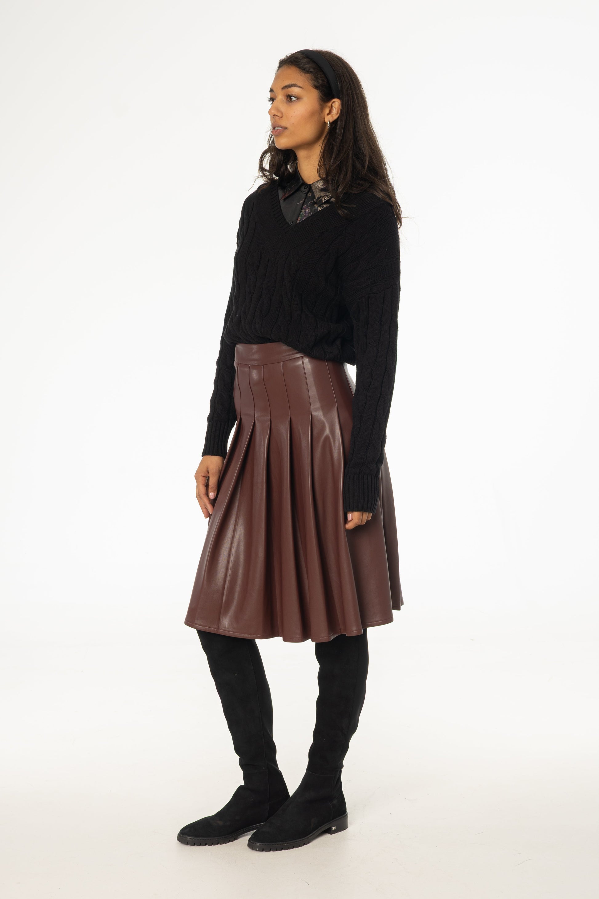 Sharp, modern, and made to hold shape. The pleats give it movement while the leather adds edge. It pairs best with softer tops to balance the look. A skirt that turns a simple outfit into something memorable.