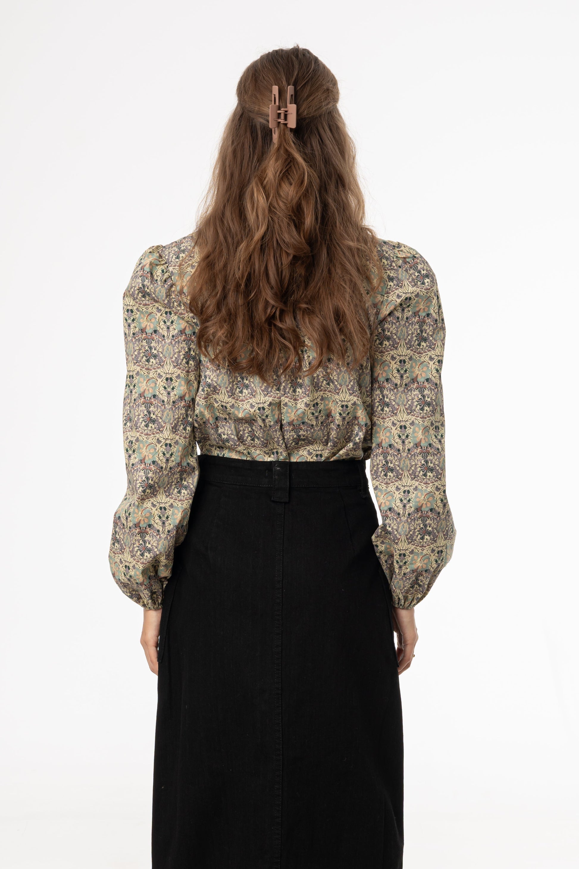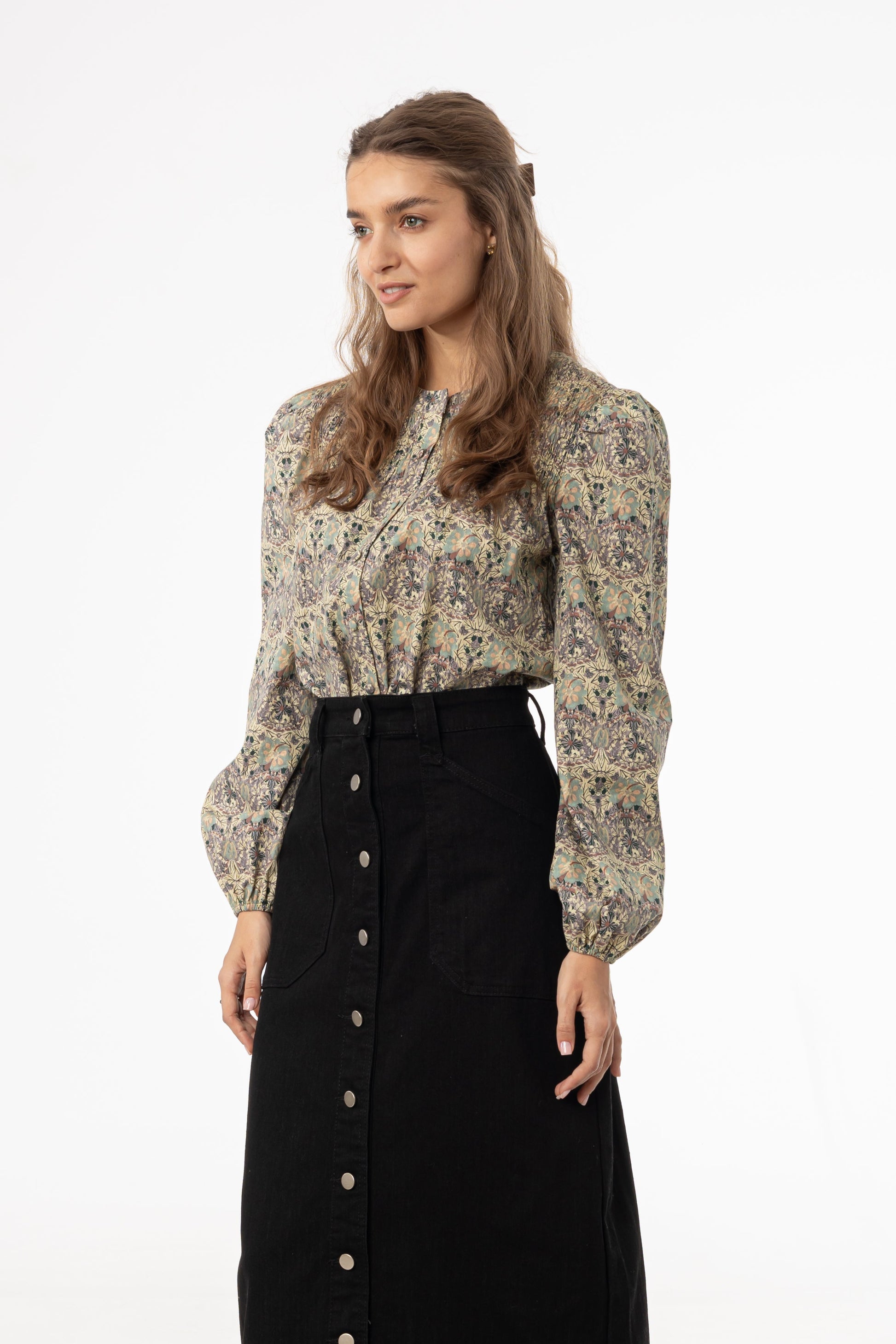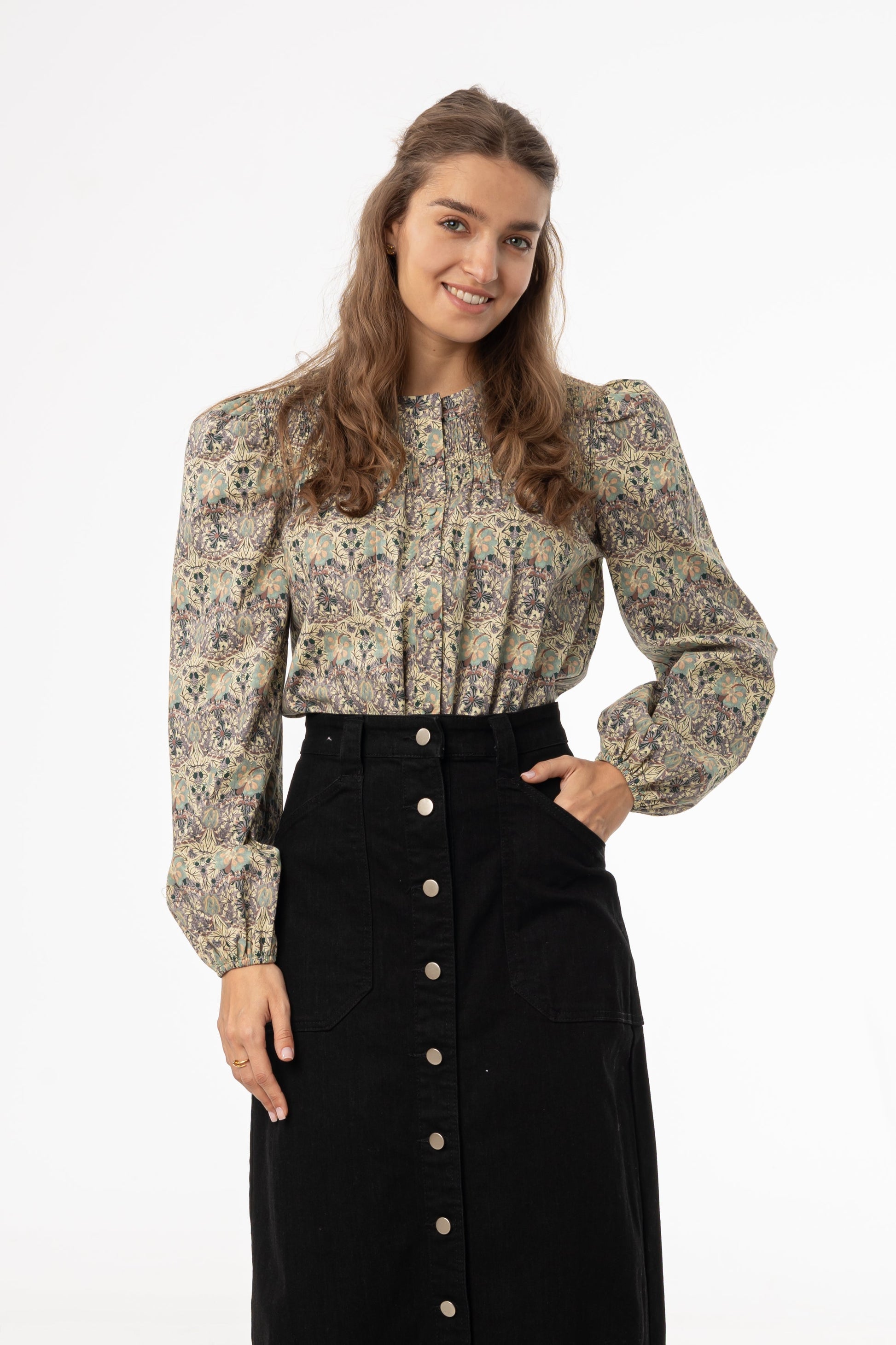Green and Purple Floral Smocked Blouse