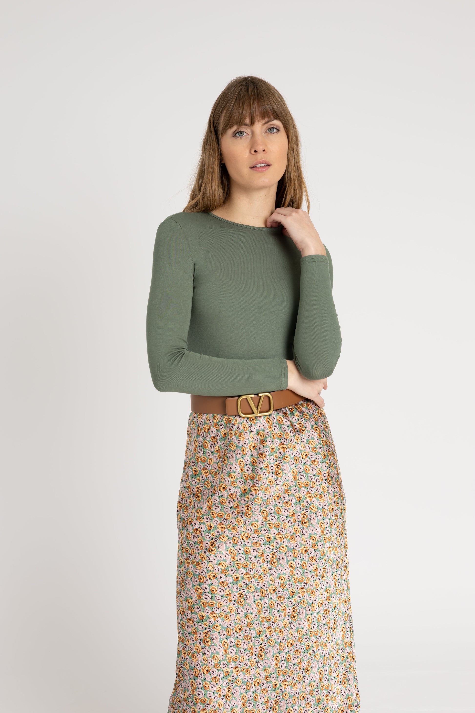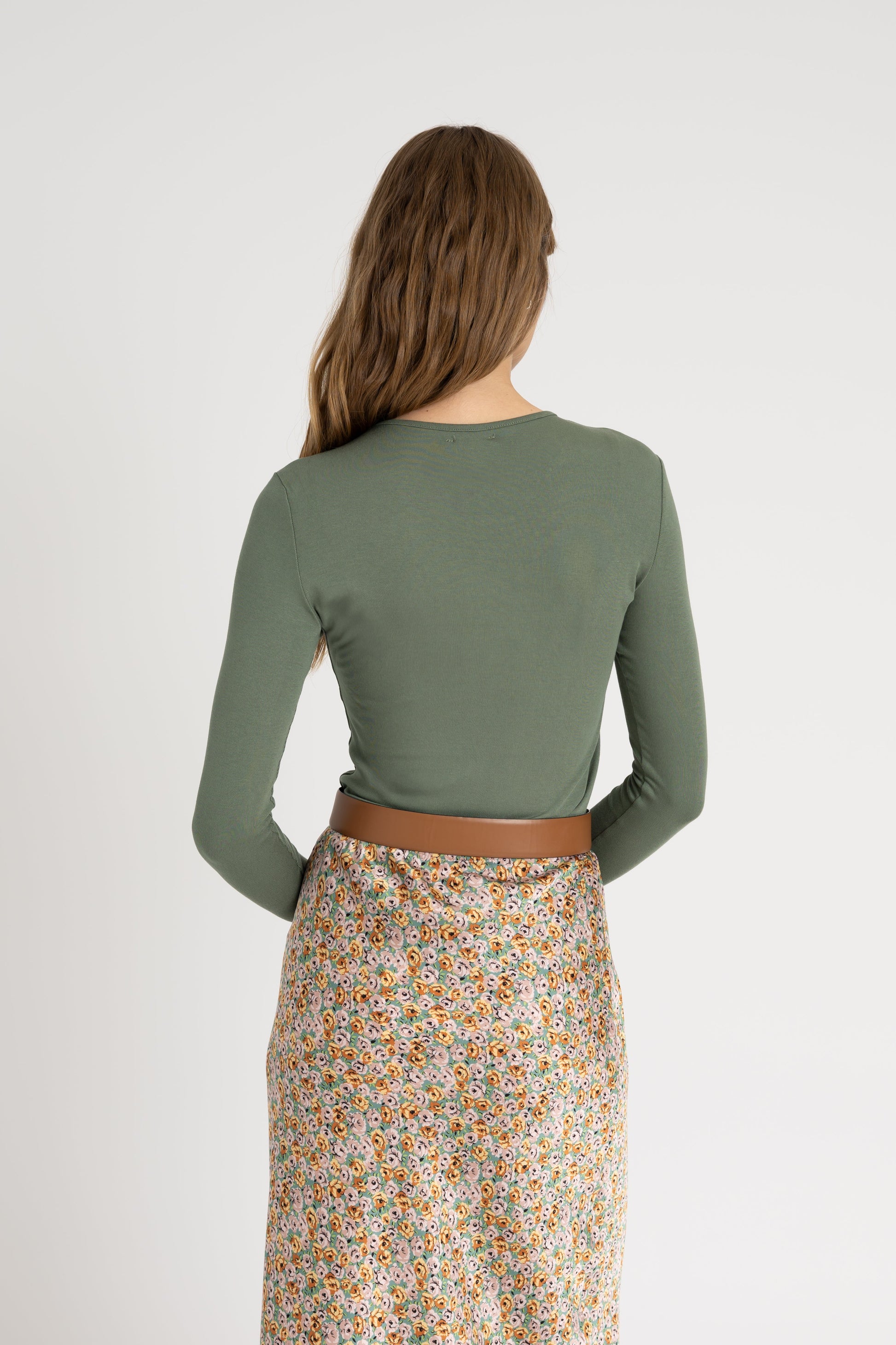 Green Solid Round Neck Long Sleeve T-Shirt