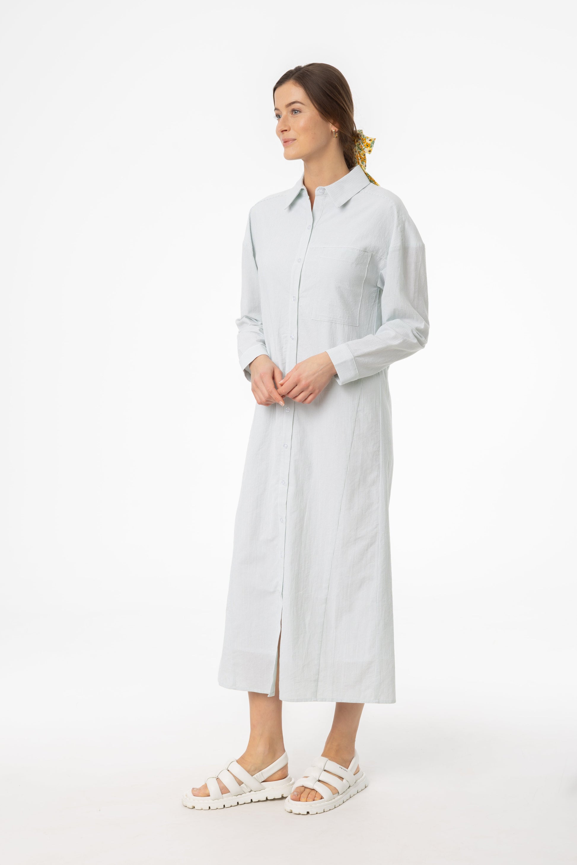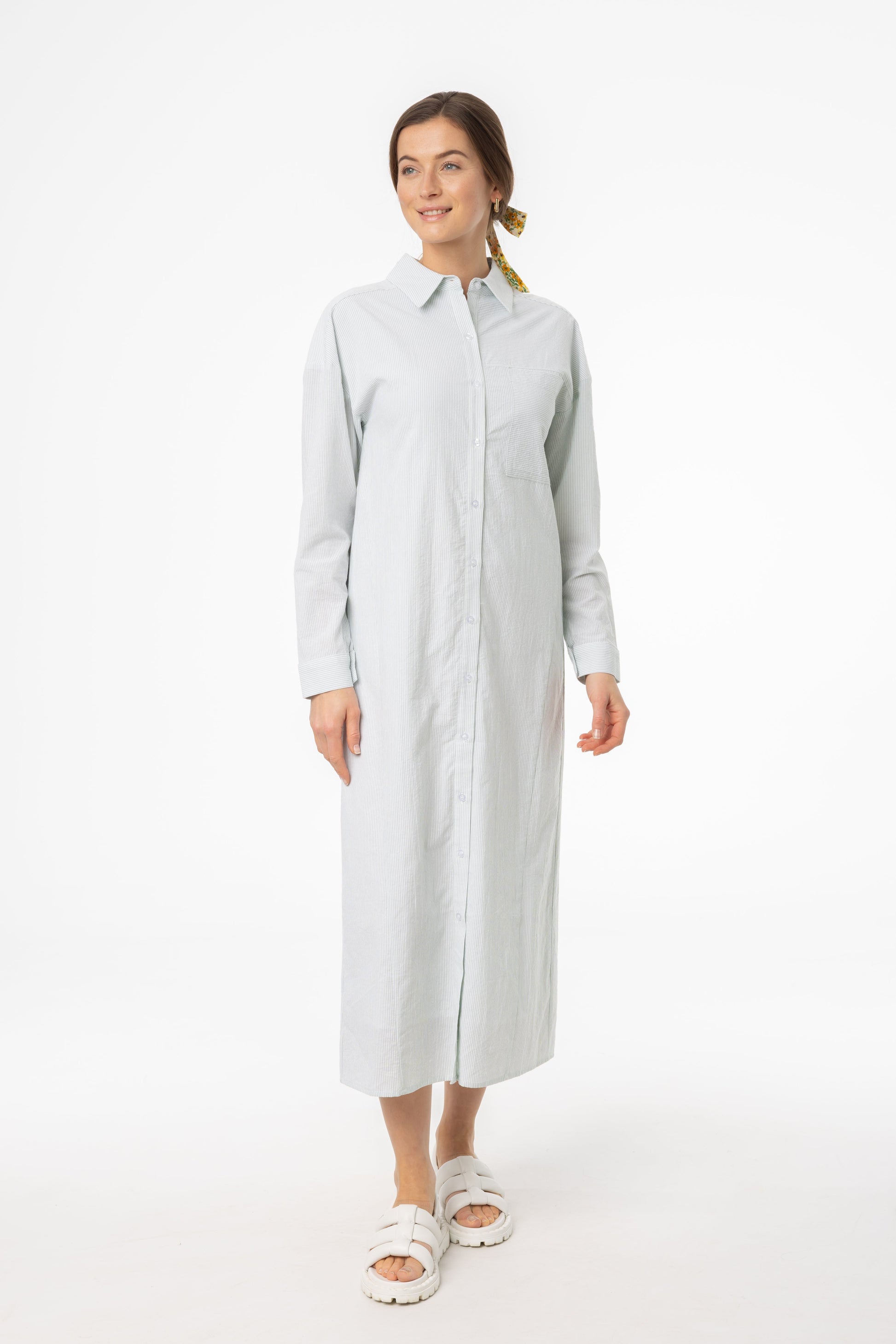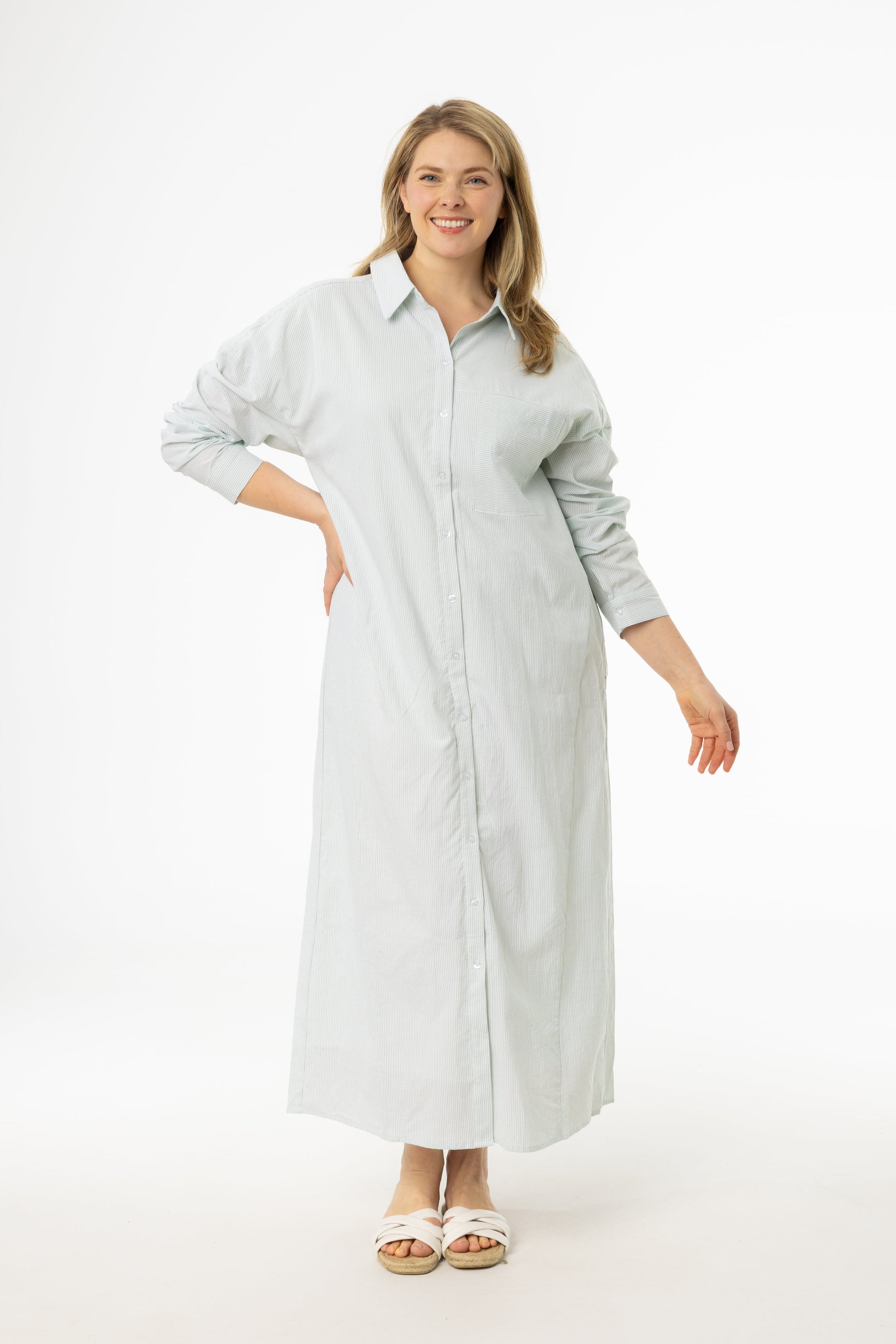 Green Striped Maxi Shirt Dress