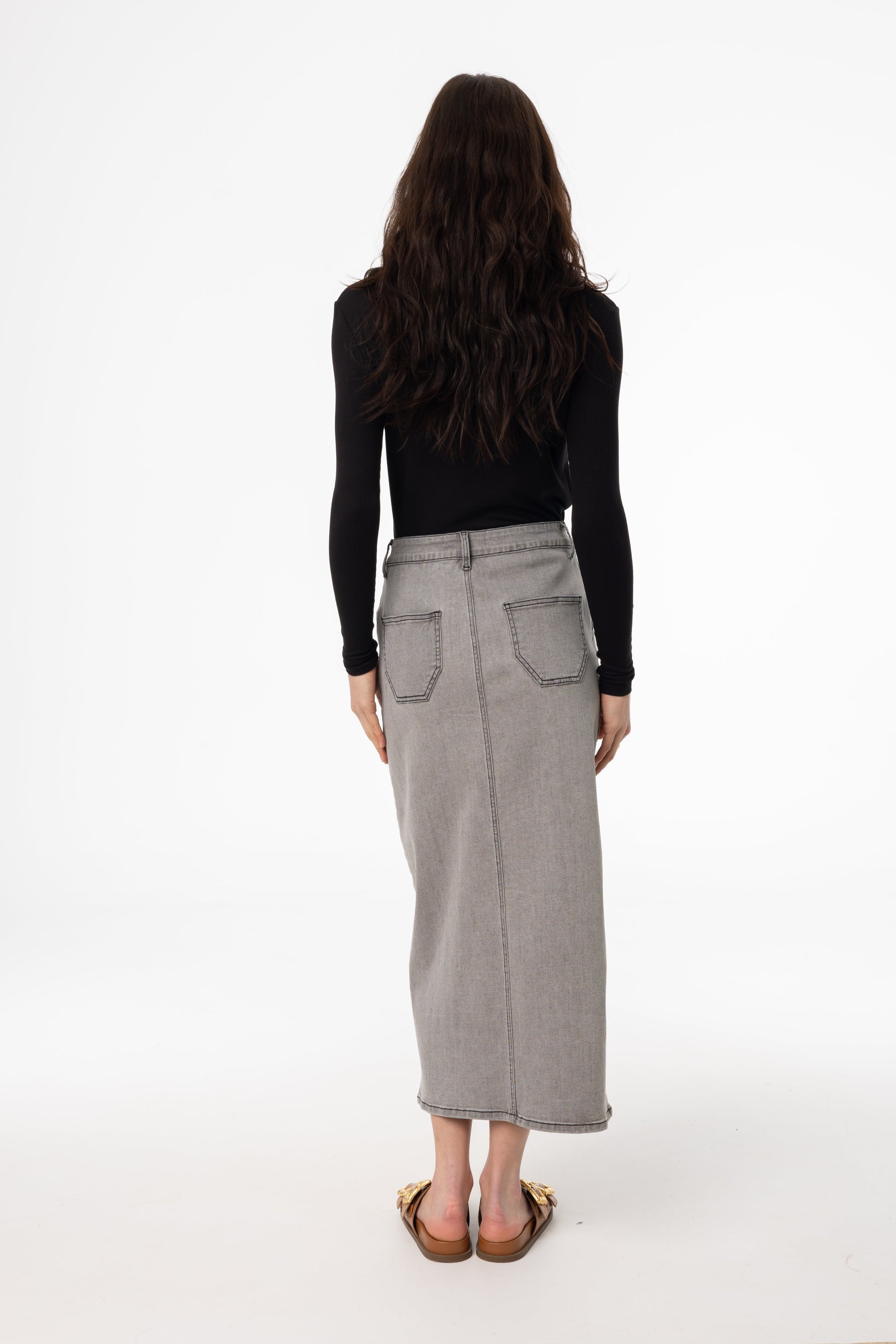 What makes a perfect everyday skirt? One that’s easy to style, comfortable to wear, and fits every plan on your calendar. This denim staple works just as well for a day spent picking fresh fruit at a local farm as it does for an outdoor evening gathering with friends. Keep it casual with a simple tee, or add a fitted knit top and statement earrings to dress it up.