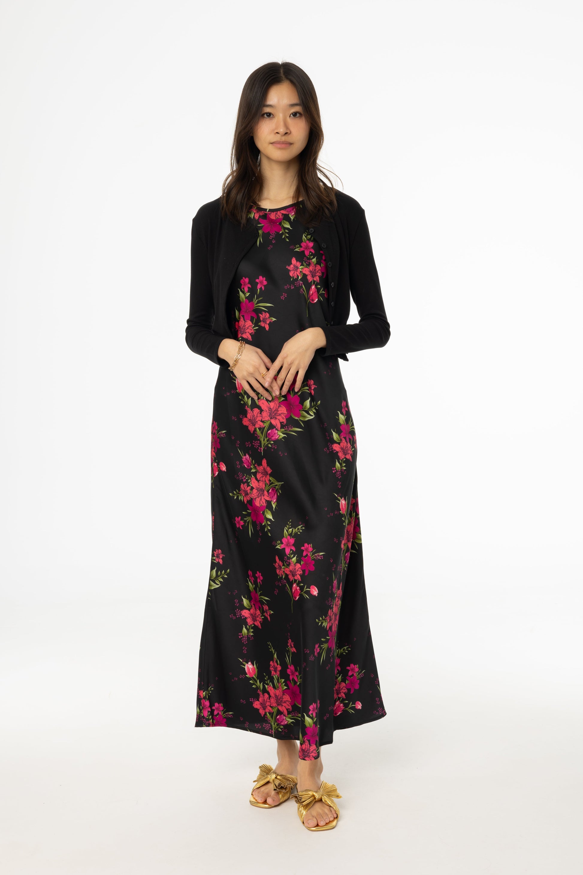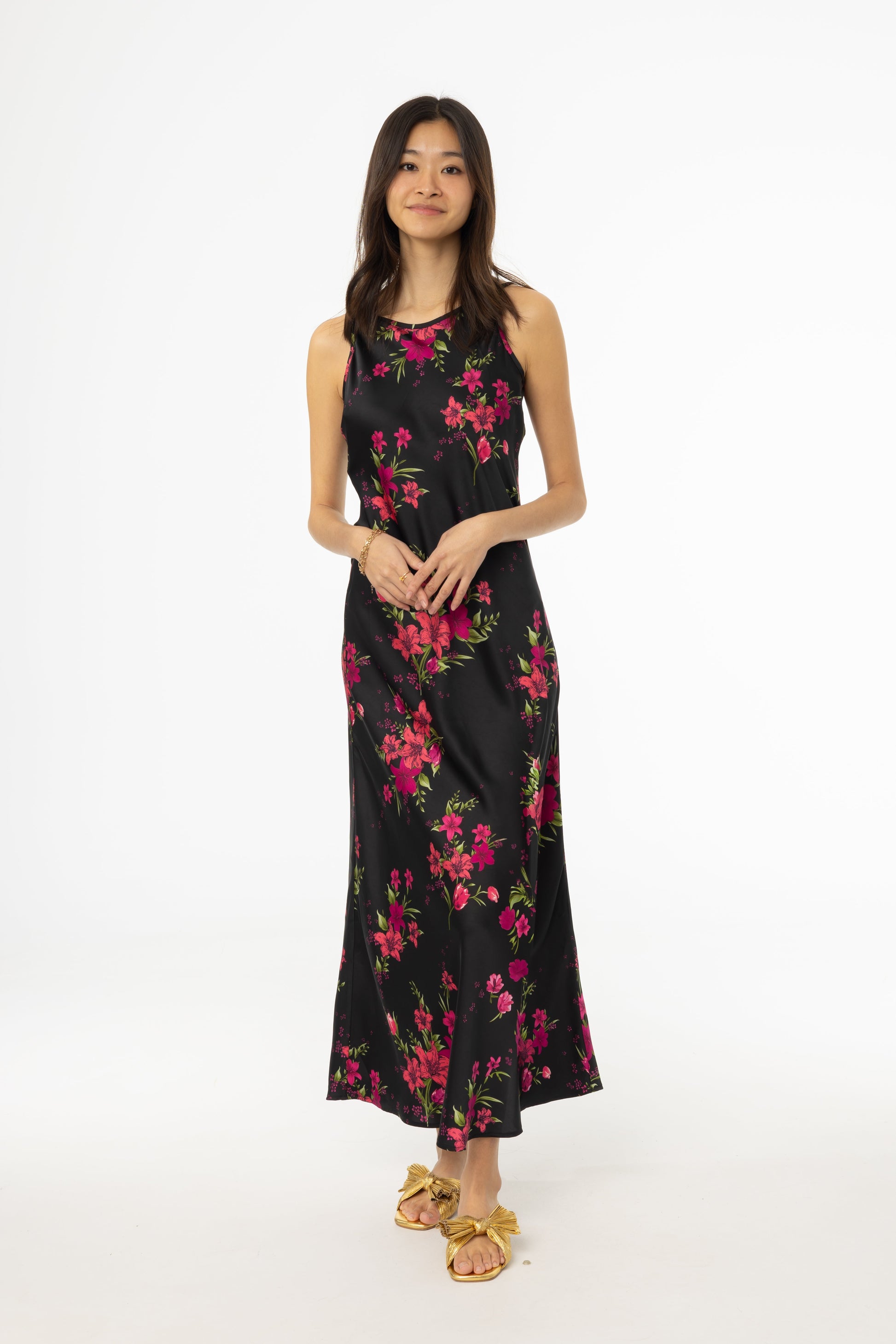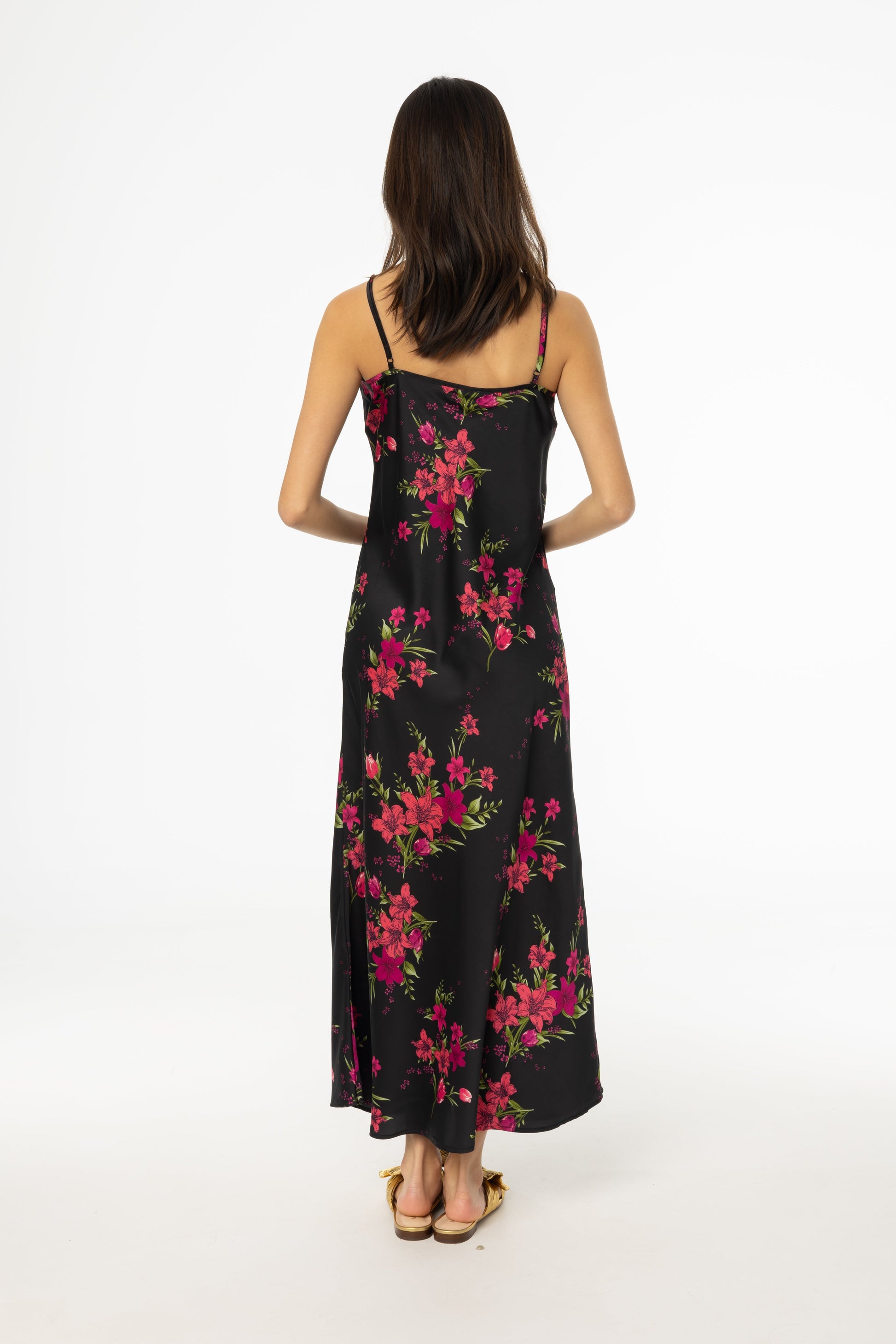 Magenta Floral Printed Slip Dress