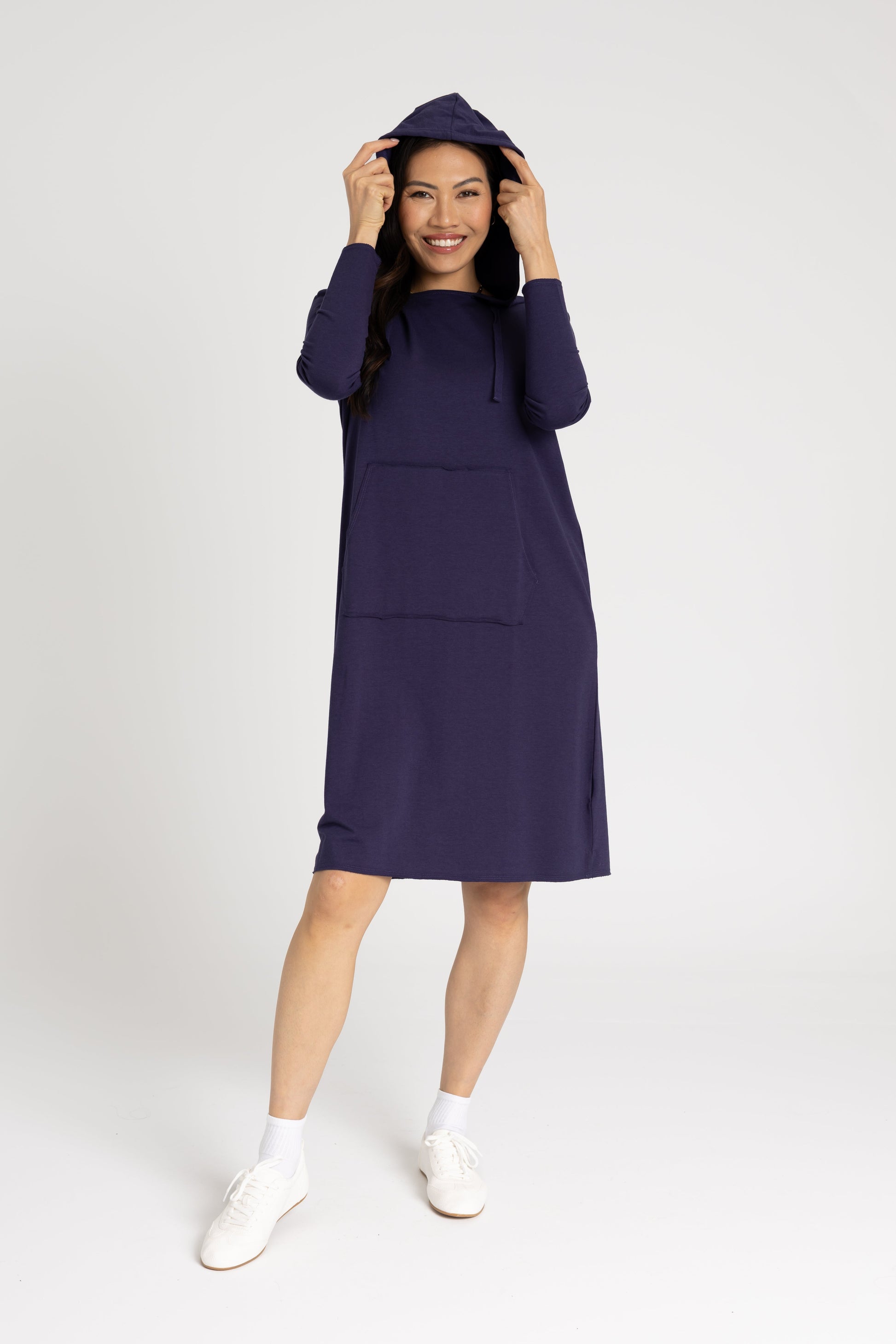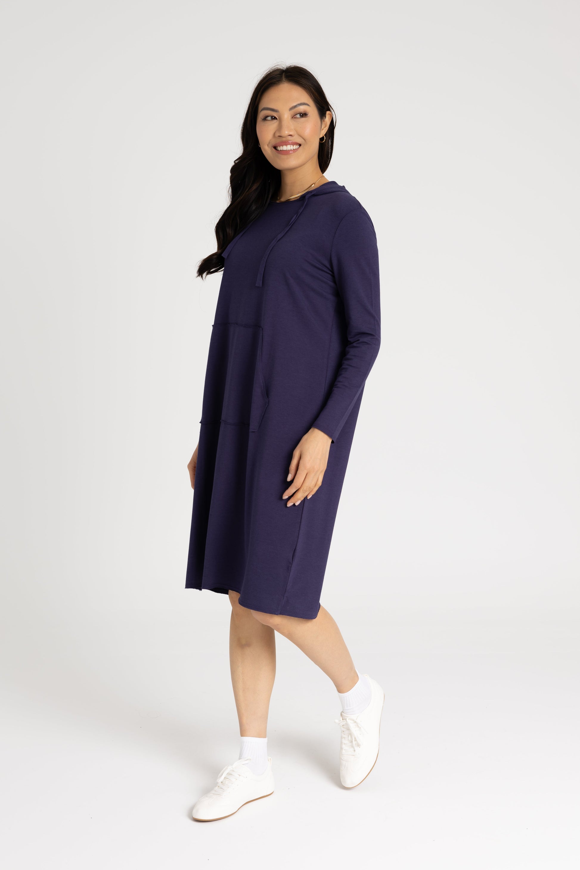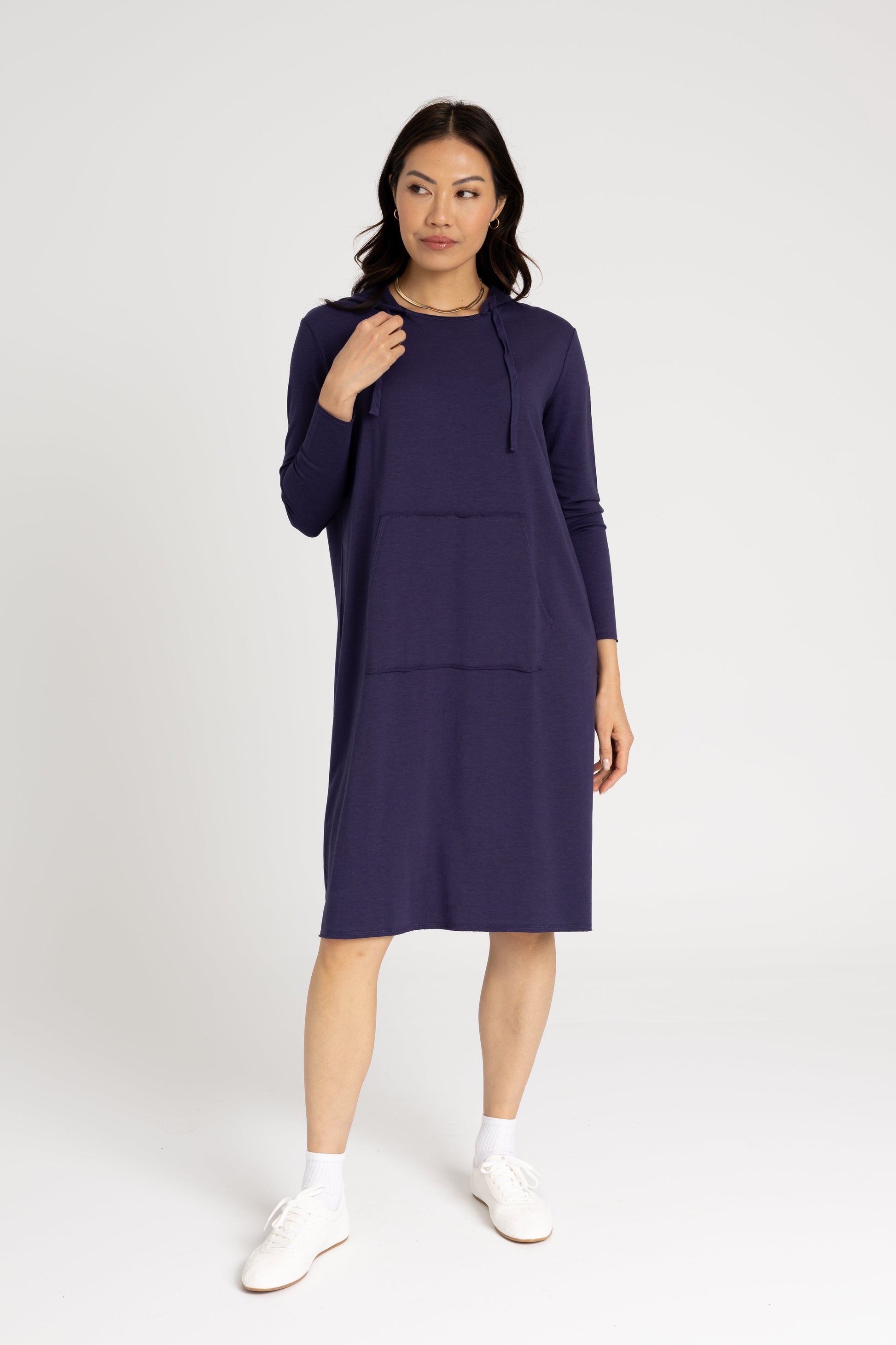 Navy Drawstring Hoodie Dress