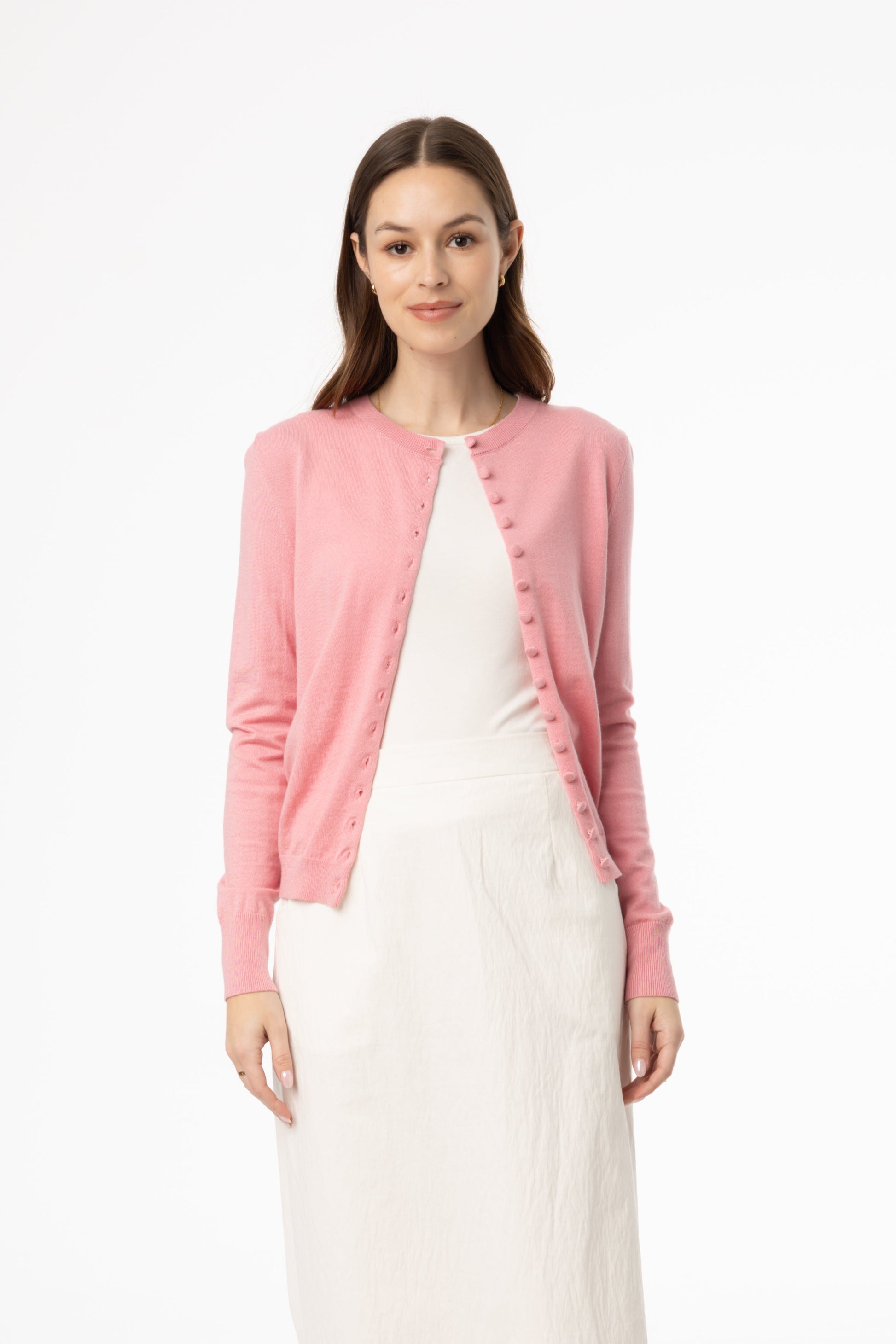 Pink Button Knit Cardigan