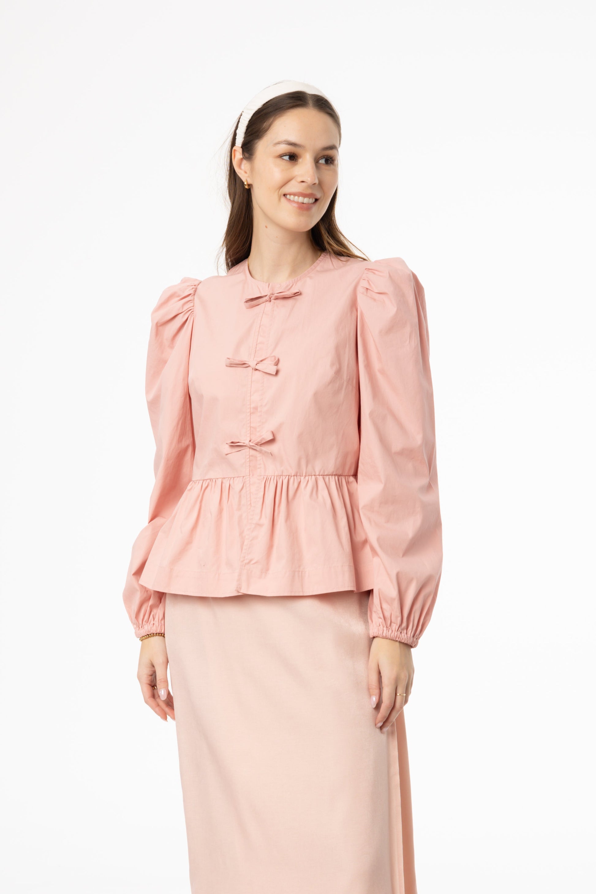 Keep it light and breezy for your next summer coffee date with the cotton bow blouse. The cotton fabric is both comfortable and breathable, making it perfect for warm weather.