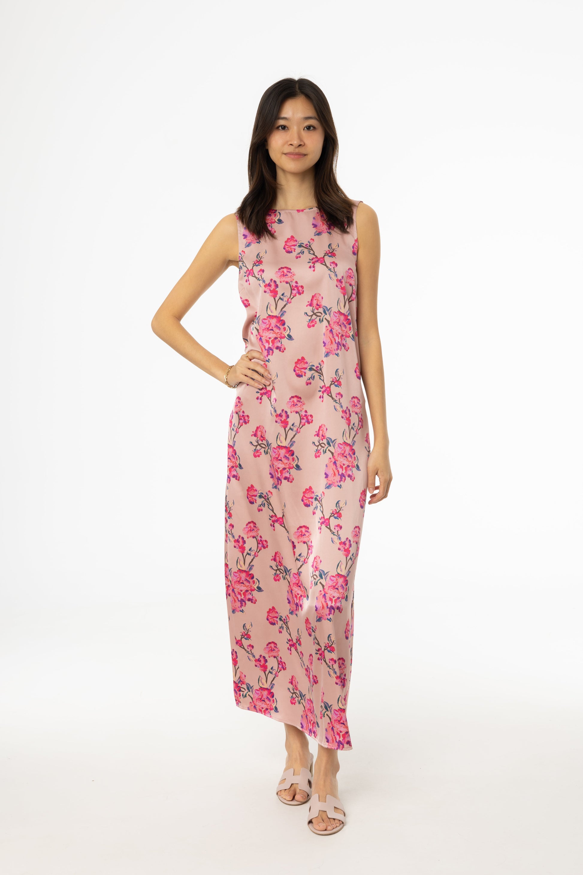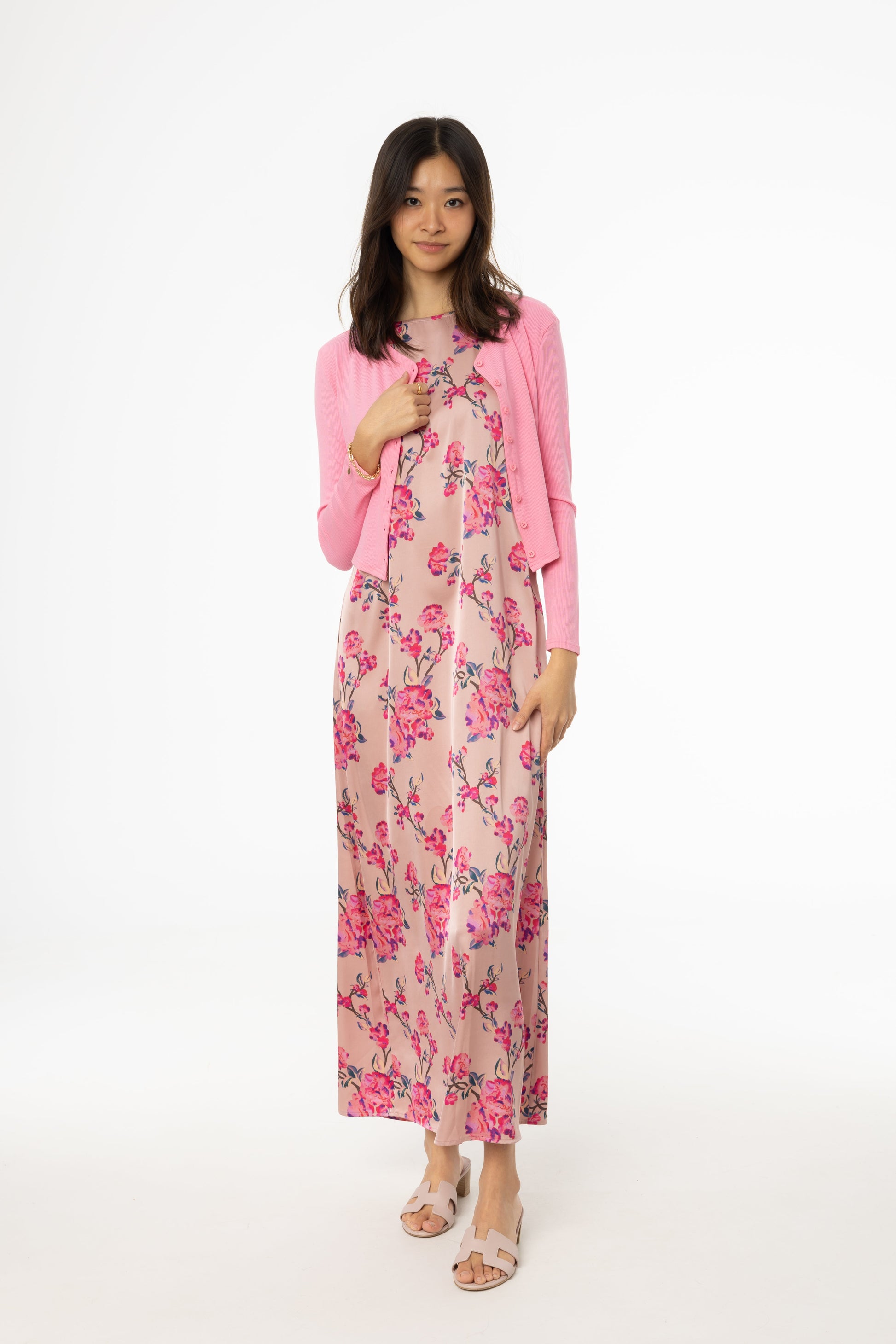 Pink Floral Printed A-Line Slip Jumper
