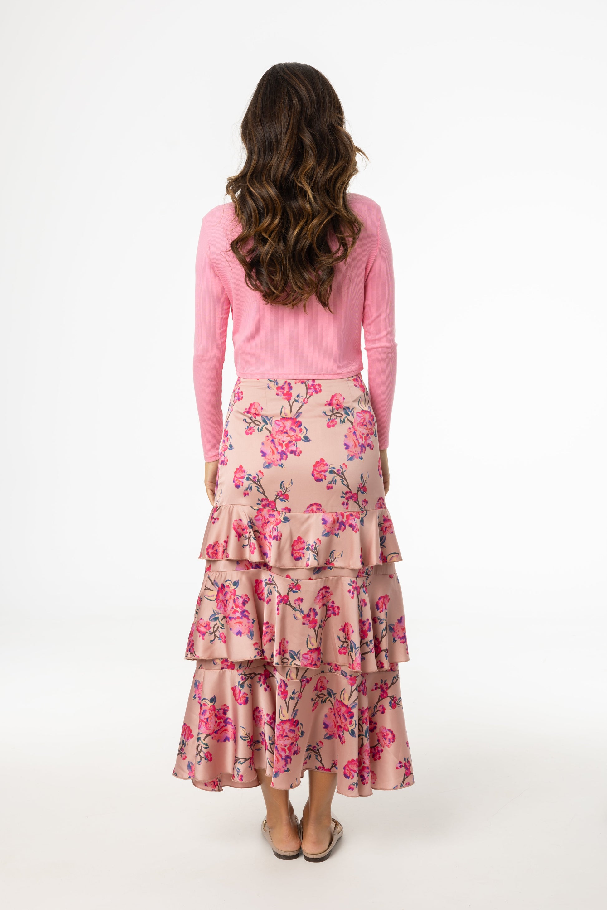 Pink Floral Ruffle Skirt