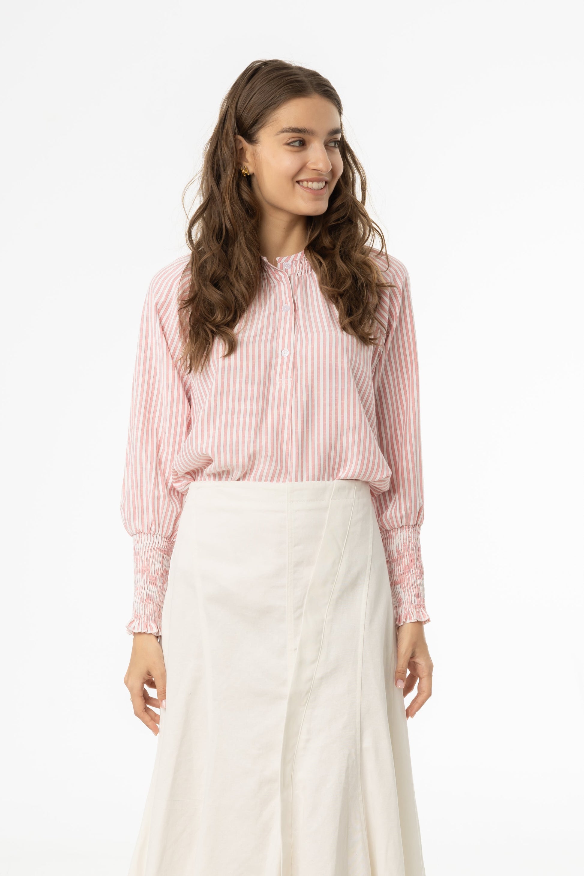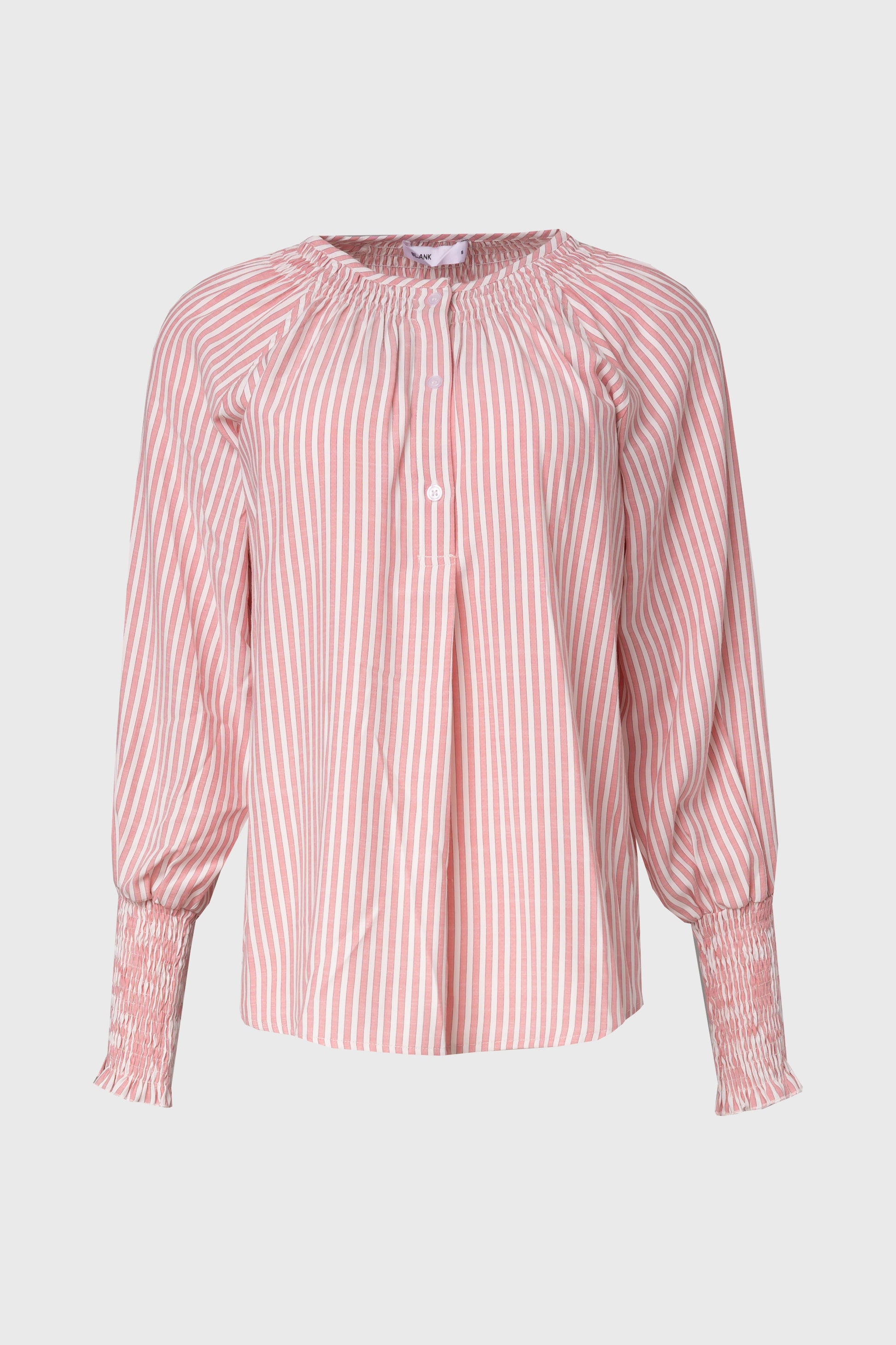Pink Striped Smocked Raglan Sleeve Shirt