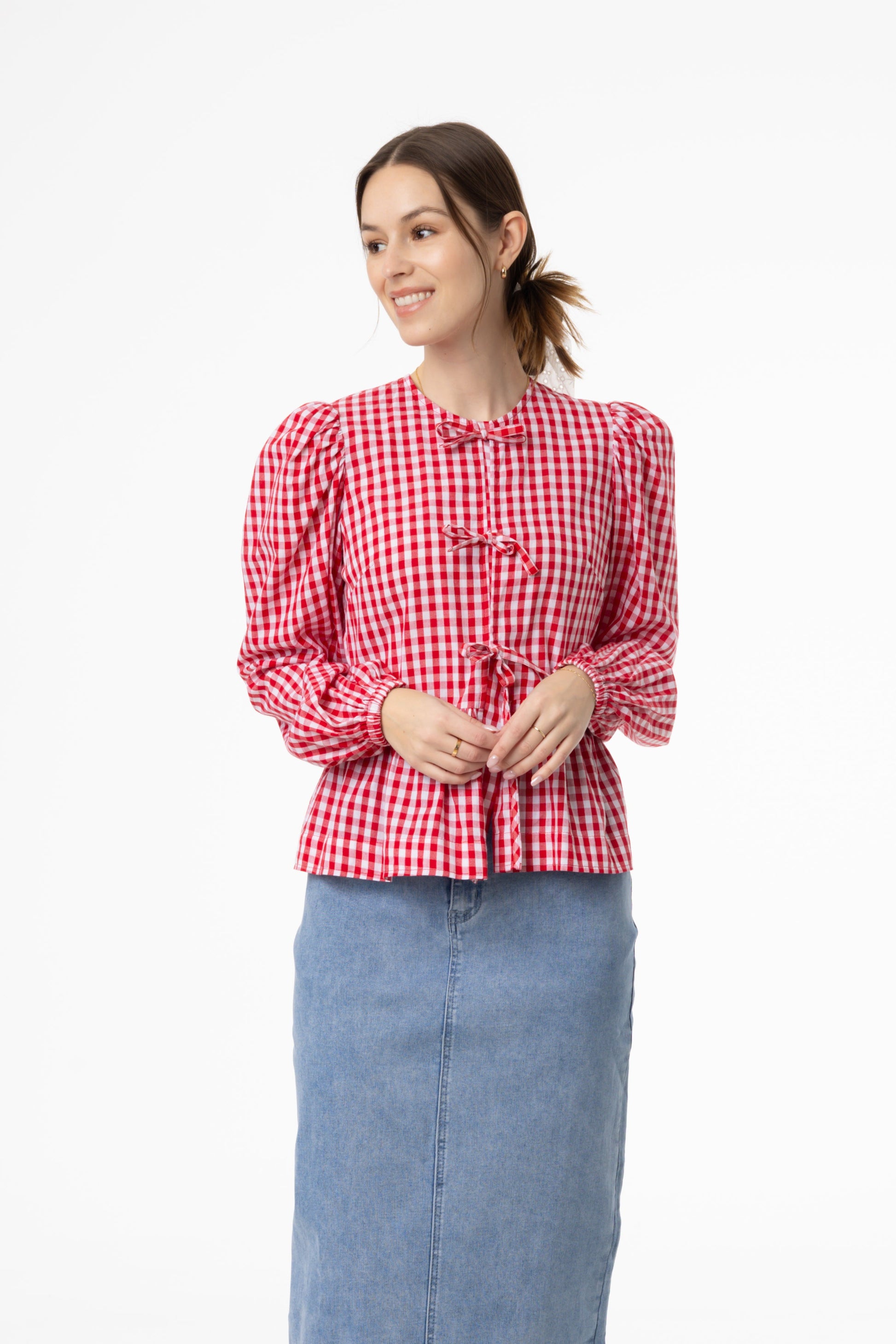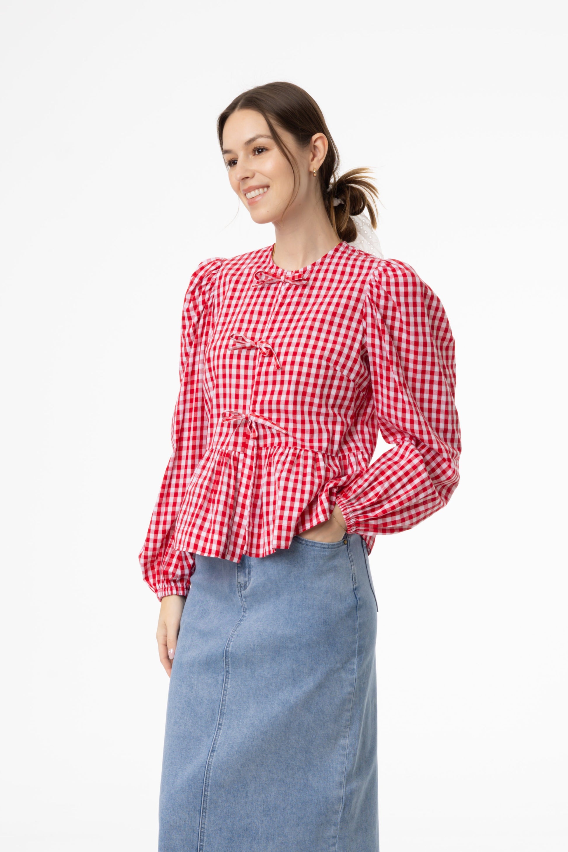 Red Gingham Bow Blouse