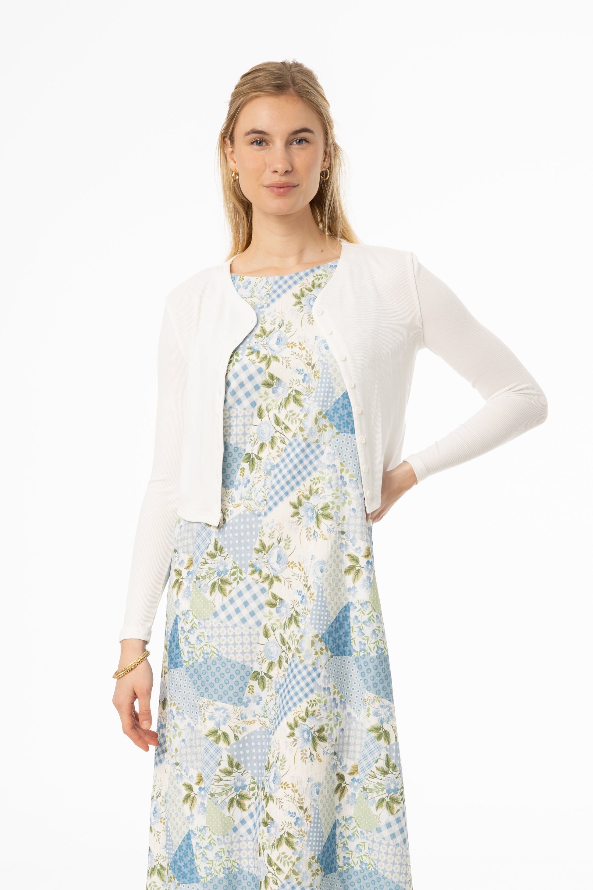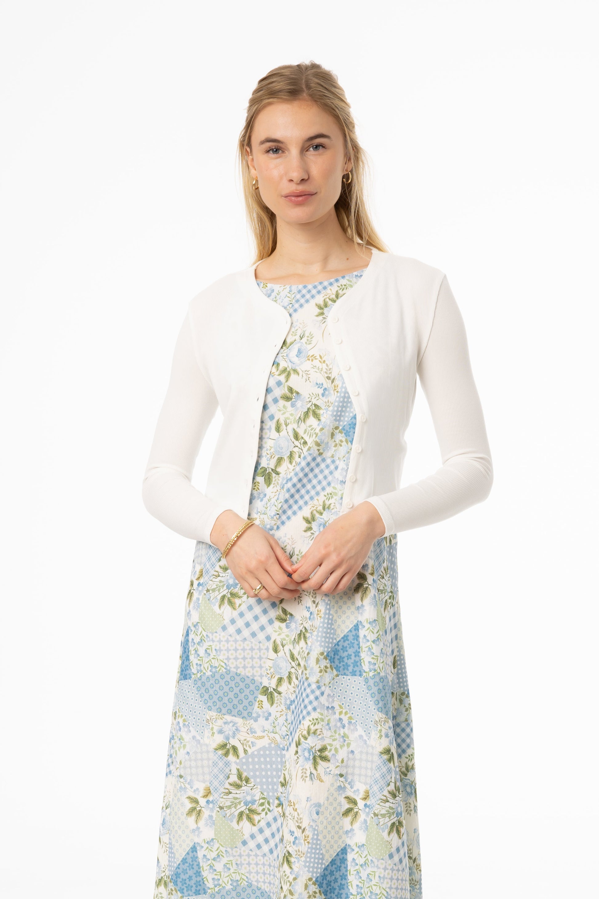 Searching for the perfect layer? Our slim-fitting cropped ribbed long sleeve cardigan is an essential for any wardrobe. Button up in style with matching-color buttons! No wardrobe is complete without a cardi!